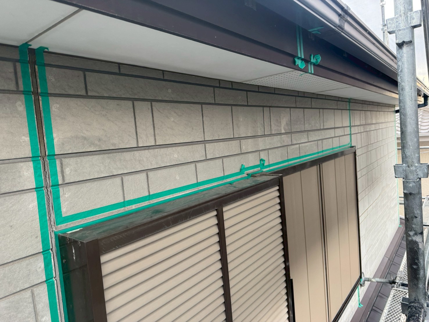 明日は雨天予報の為、本来の工程を前後し、本日はS様邸の【シーリング養生】を実施させていただきました!