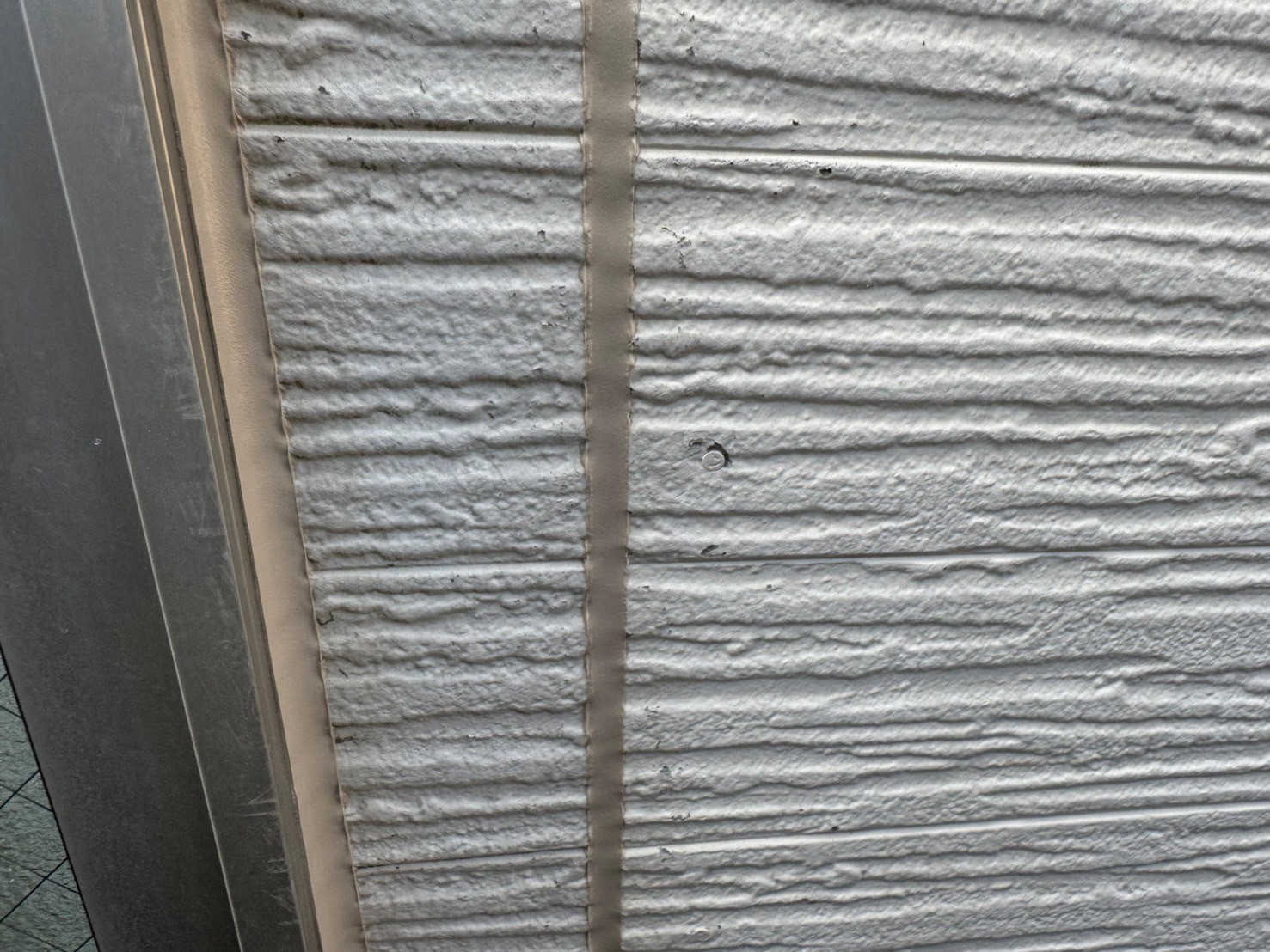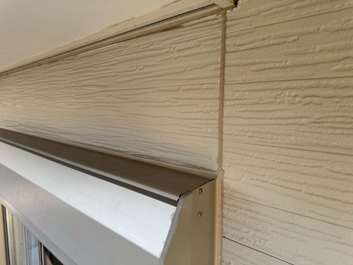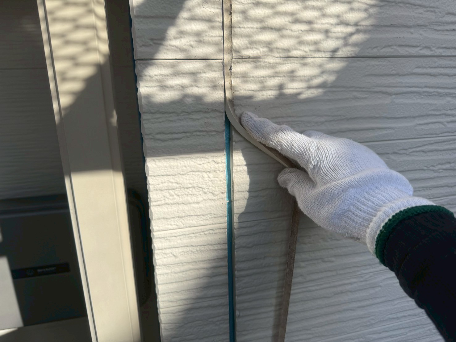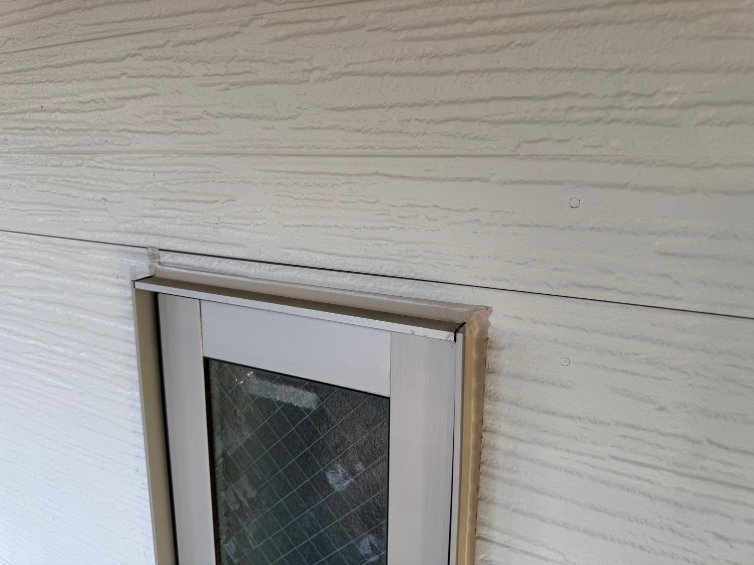 通常、シーリング打設をおこない、しっかりと乾いてから外壁塗装工事をおこない、シーリング上から新規塗装をおこなう事が多いですが、塗装をおこなう前にもしっかりとシーリング施工がないか点検をおこなって、シーリング打ち替え工程の終了です。