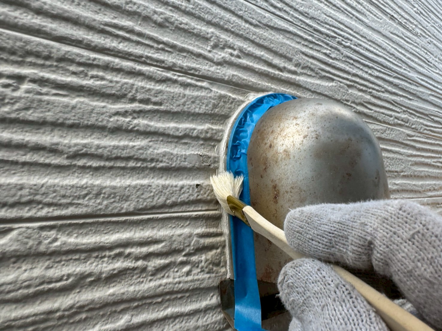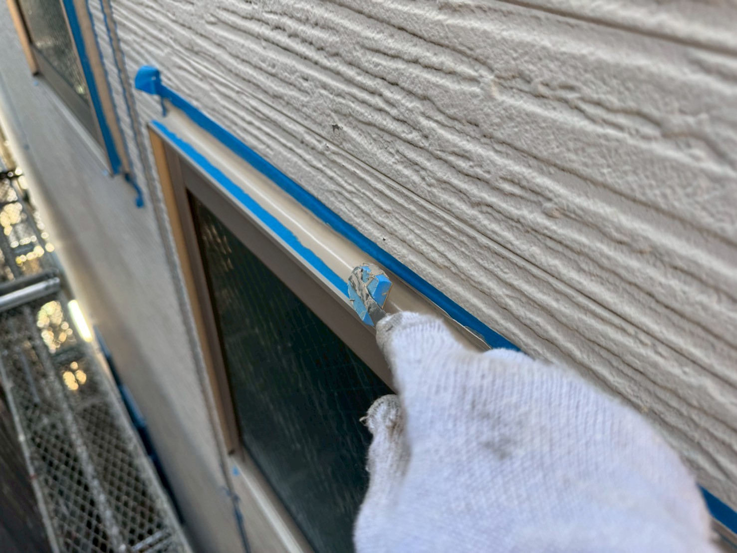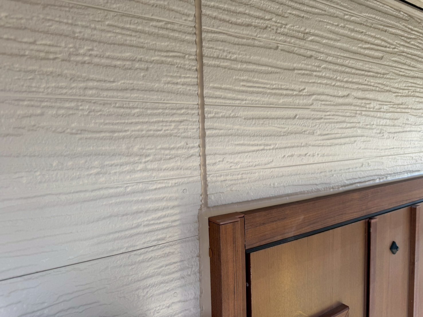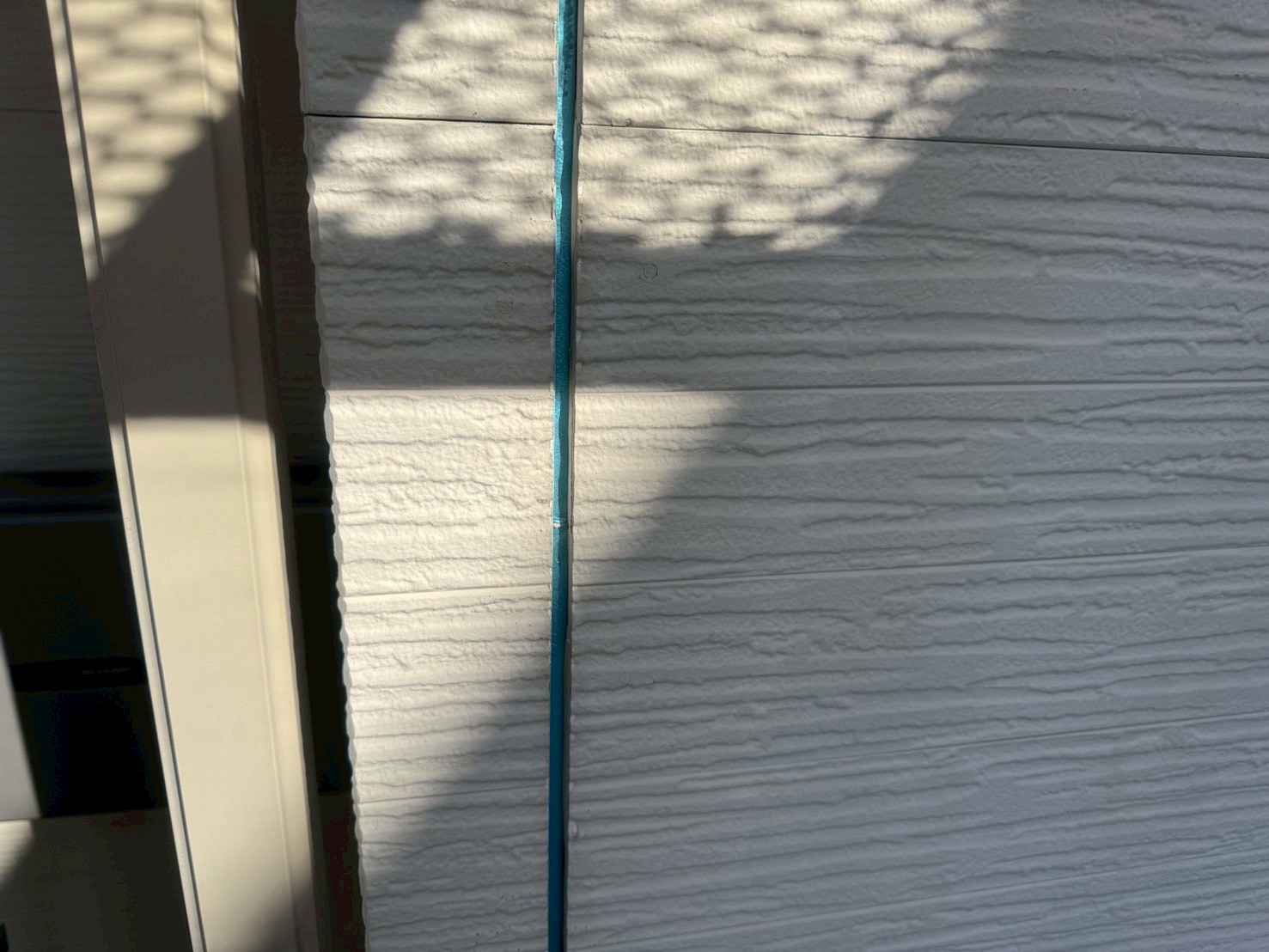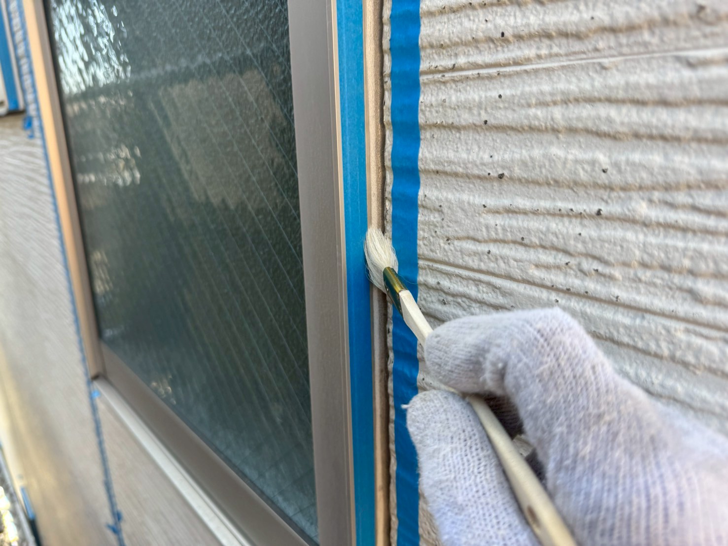 通常、シーリング打設をおこない、しっかりと乾いてから外壁塗装工事をおこない、シーリング上から新規塗装をおこなう事が多いですが、塗装をおこなう前にもしっかりとシーリング施工がないか点検をおこなって、シーリング打ち替え工程の終了です。