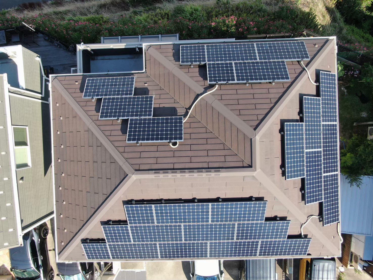太陽光パネルがついておりましたが、スレート屋根に劣化が所見されており【屋根塗装】のメンテナンス時期の状態でした。