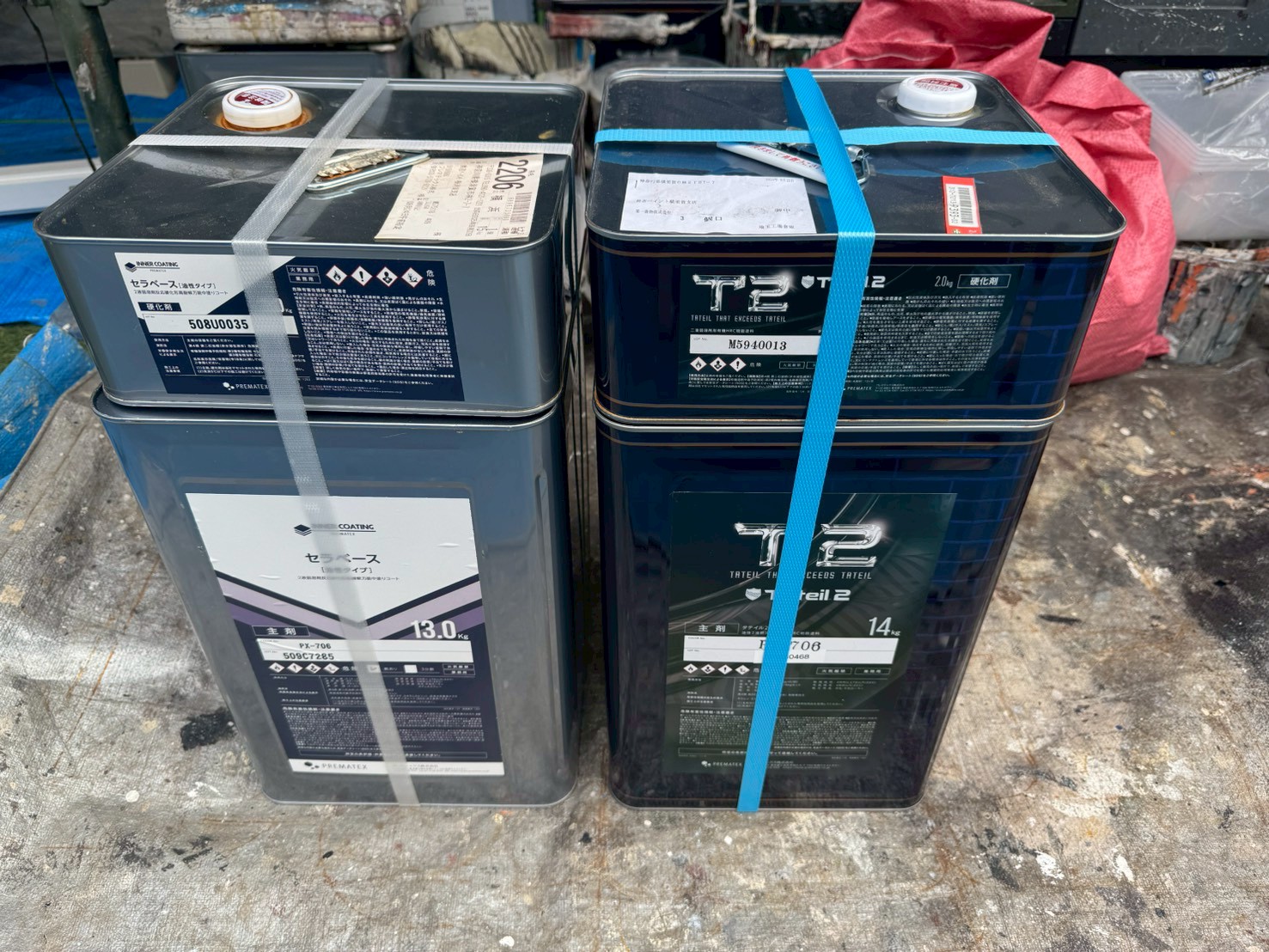 しっかりと下塗り塗料の乾燥が確認出来たら、次は中塗り工程です!