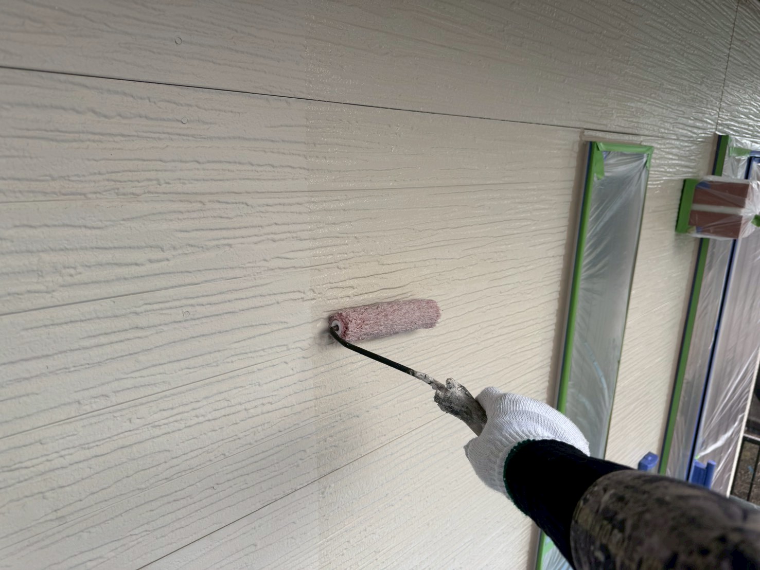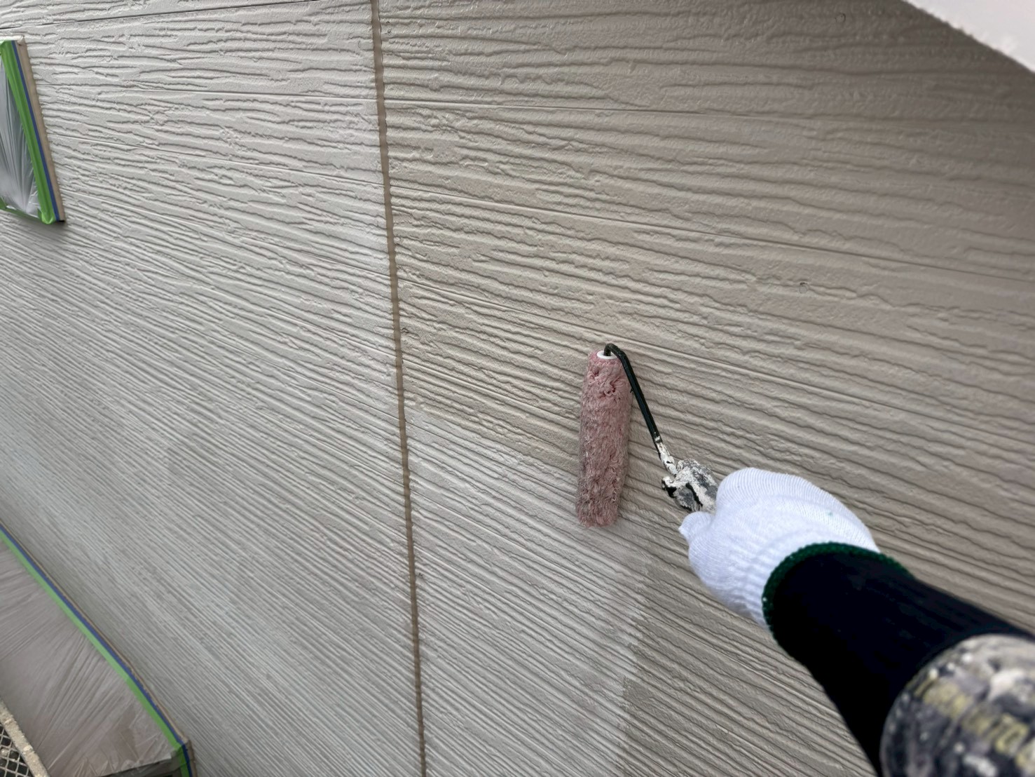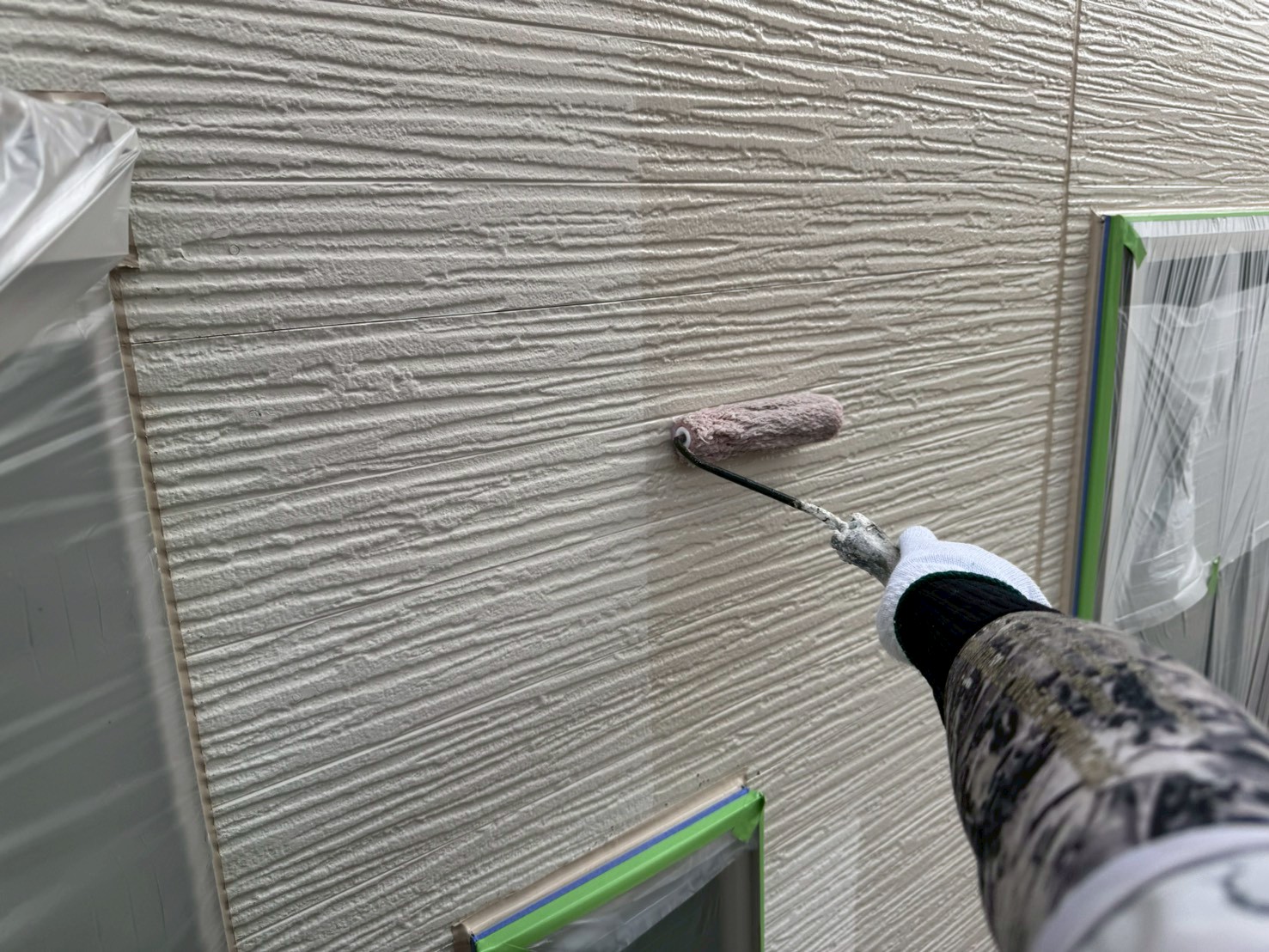 下塗り後に、中塗りをおこなう事により塗膜に厚みが出て、外壁の保護機能が高まります。