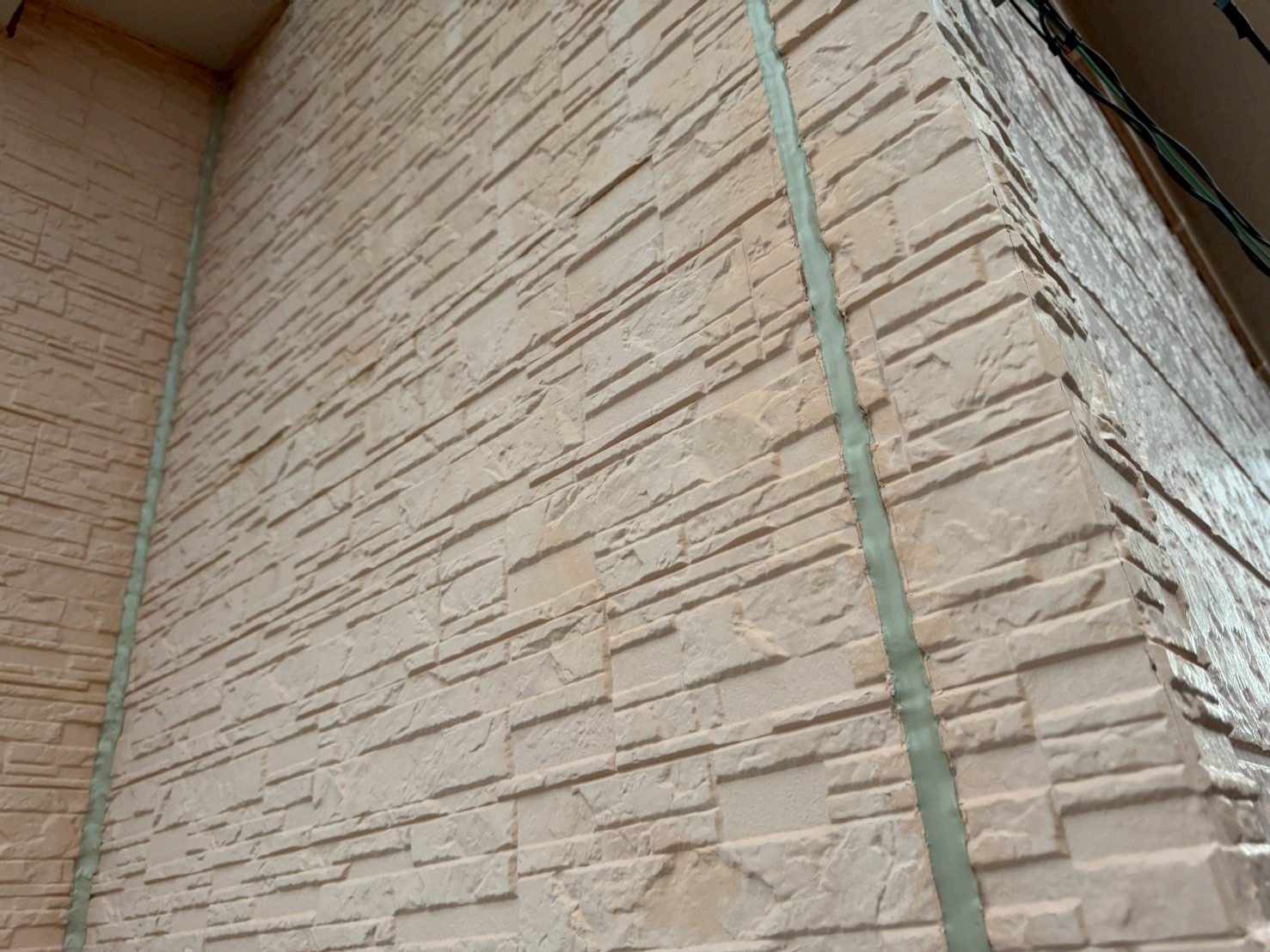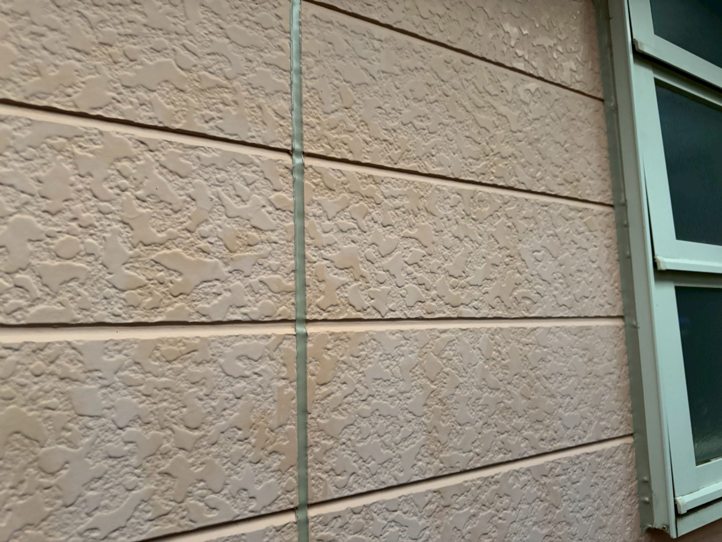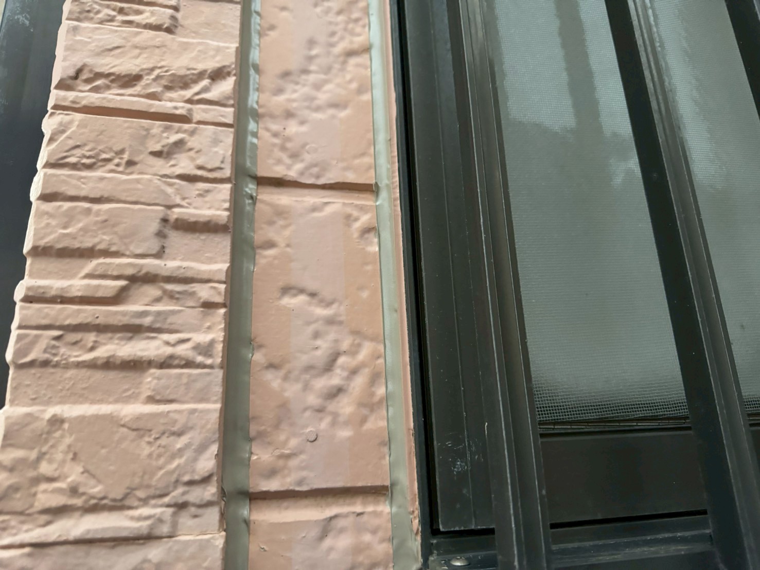 通常、シーリング打設をおこない、しっかりと乾いてから外壁塗装工事をおこない、シーリング上から新規塗装をおこなう事が多いですが、塗装をおこなう前にもしっかりとシーリング施工がないか点検をおこなって、シーリング打ち替え工程の終了です。
