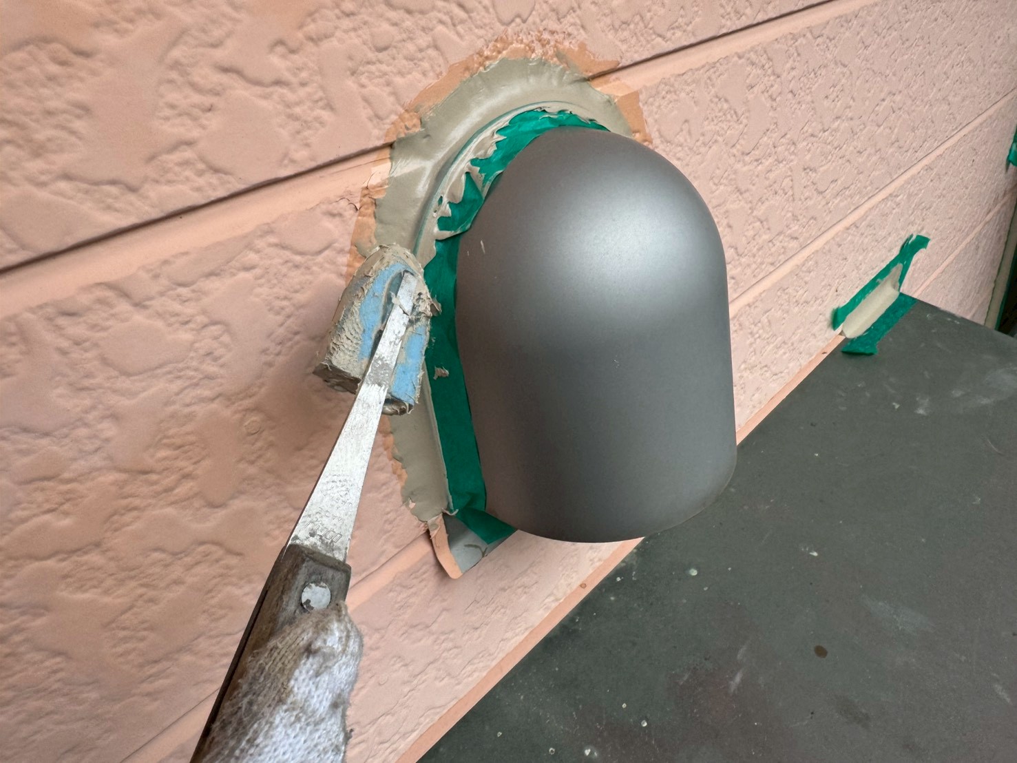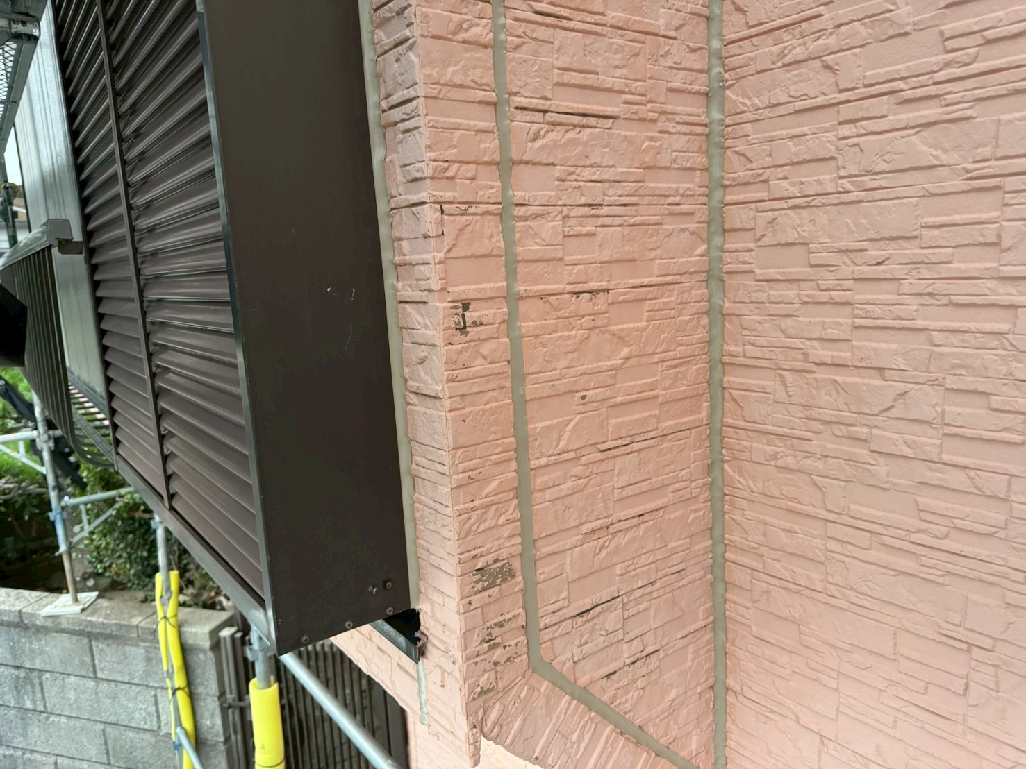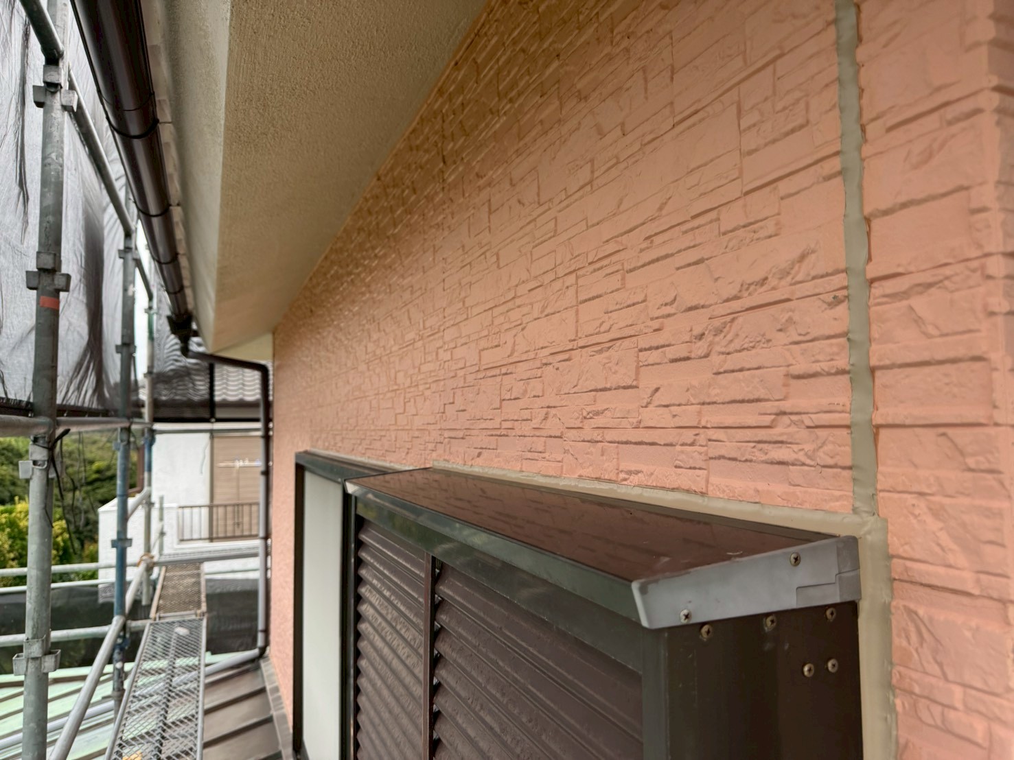 通常、シーリング打設をおこない、しっかりと乾いてから外壁塗装工事をおこない、シーリング上から新規塗装をおこなう事が多いですが、塗装をおこなう前にもしっかりとシーリング施工がないか点検をおこなって、シーリング打ち替え工程の終了です。