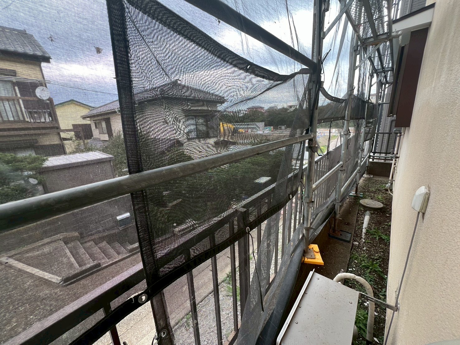 また、足場にメッシュシートを張ることにより、塗料の飛散防止にもなります。