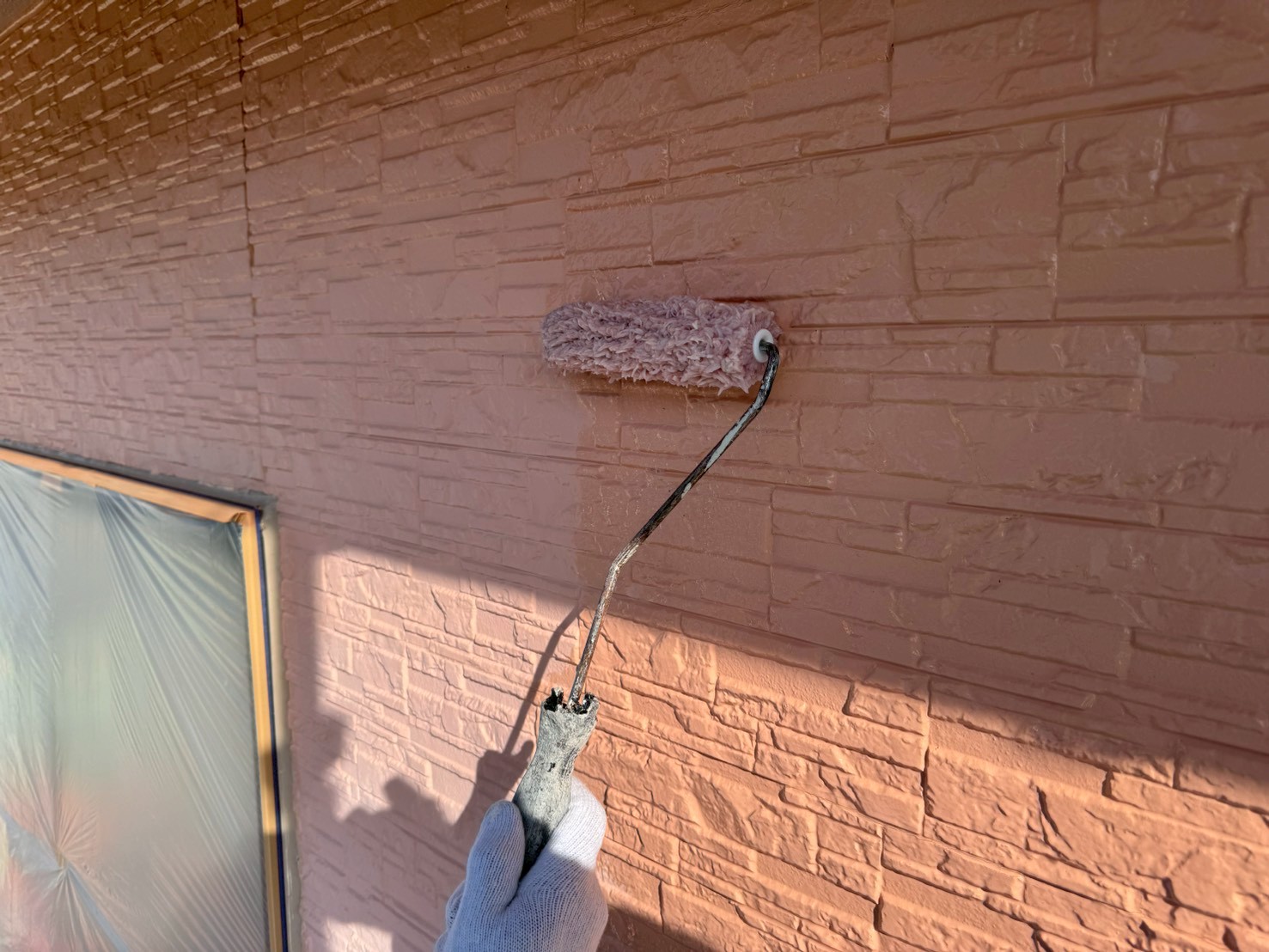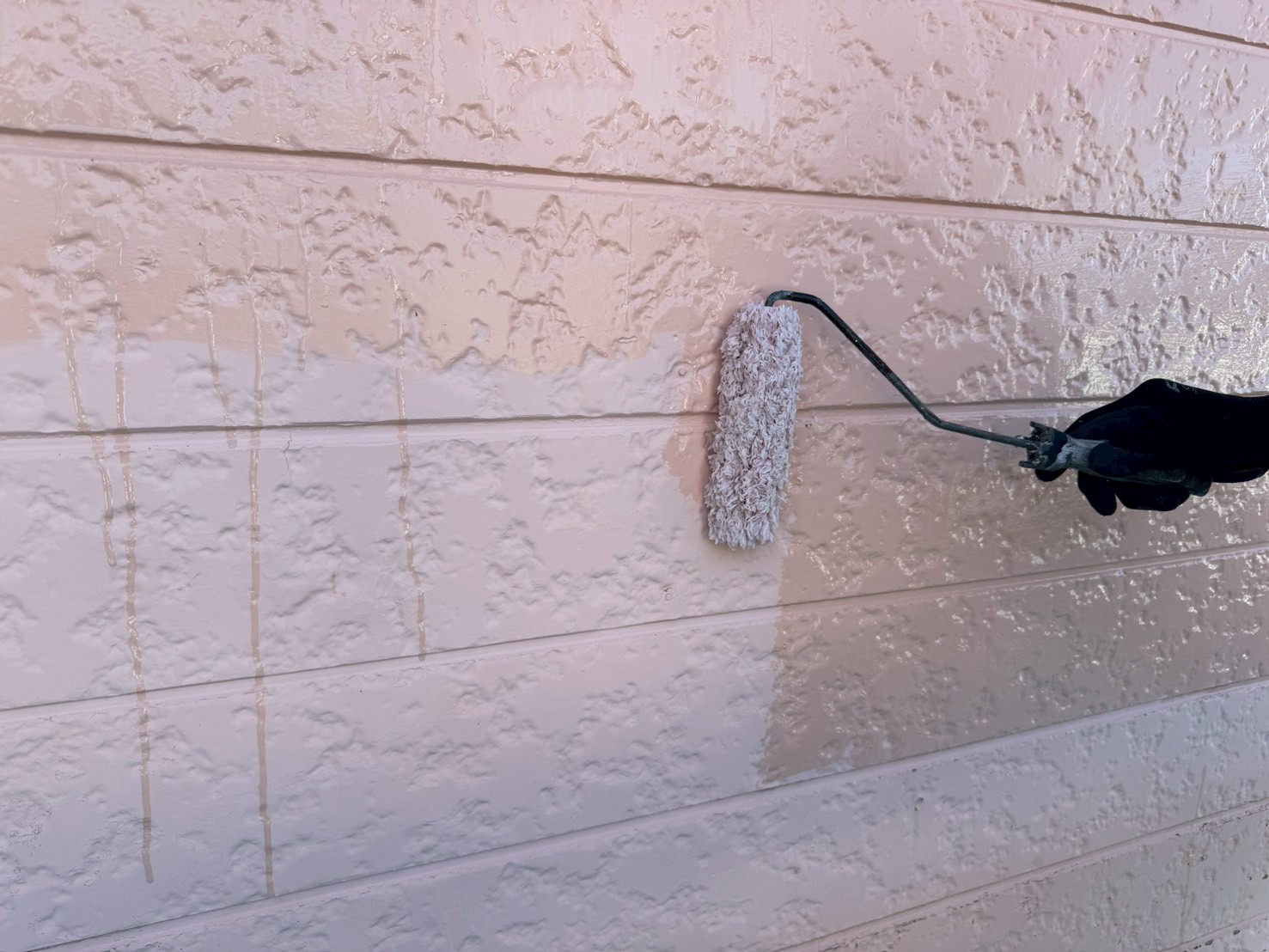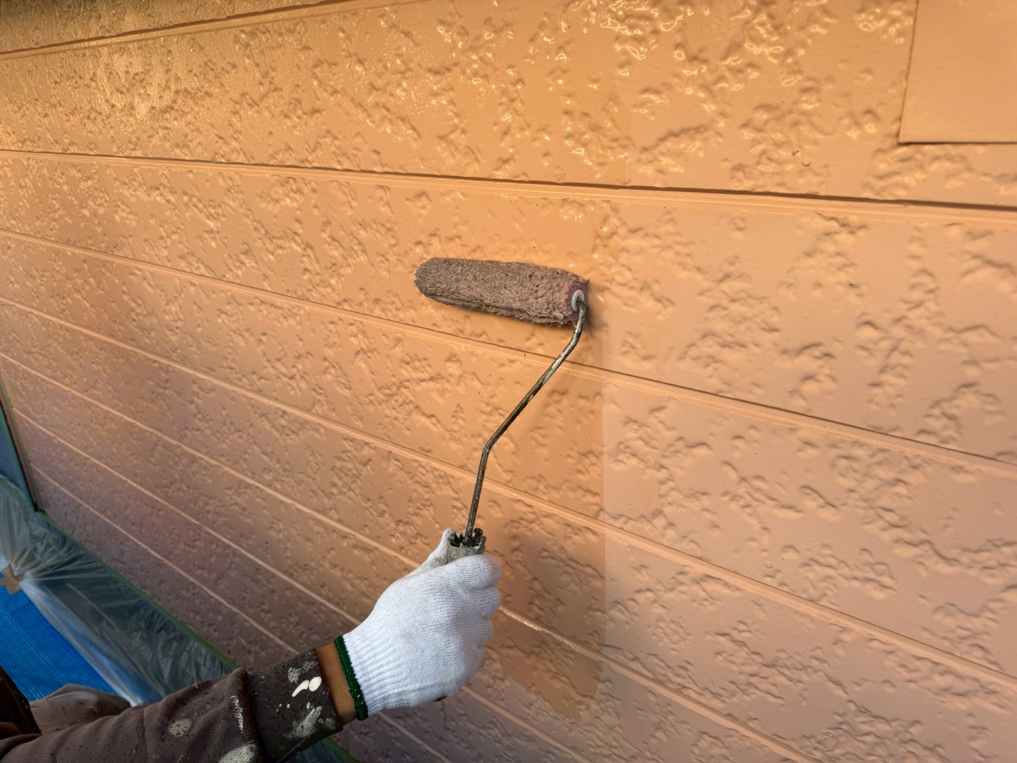しっかりと下塗り塗料の乾燥が確認出来たら、次は中塗り工程です!