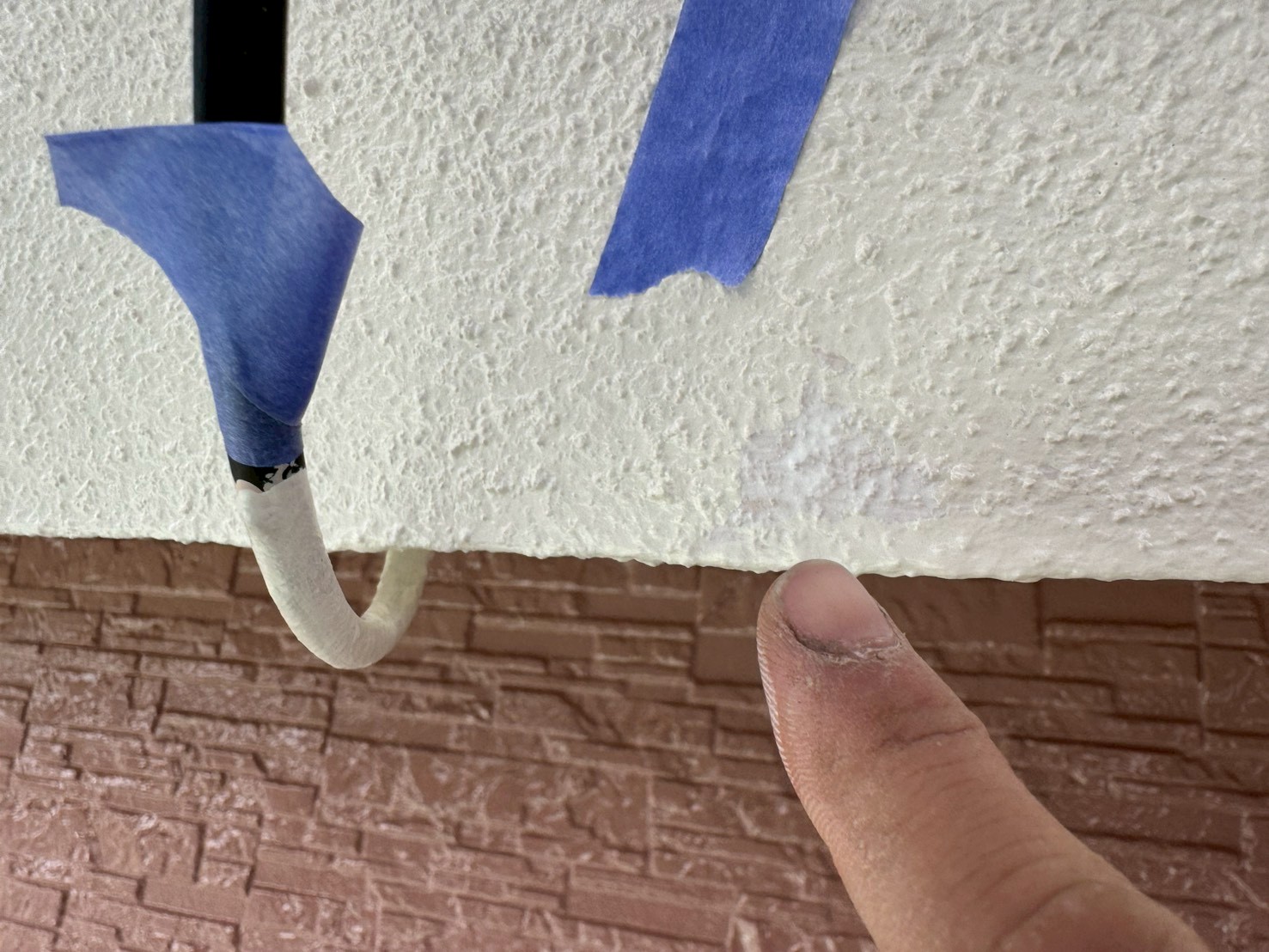 窓枠や給湯器、付帯部などの裏側などを塗り忘れてないかなどを、重点的にチェックします。養生を剥がした箇所に汚れ(ノリ跡)などがないかも確認します。