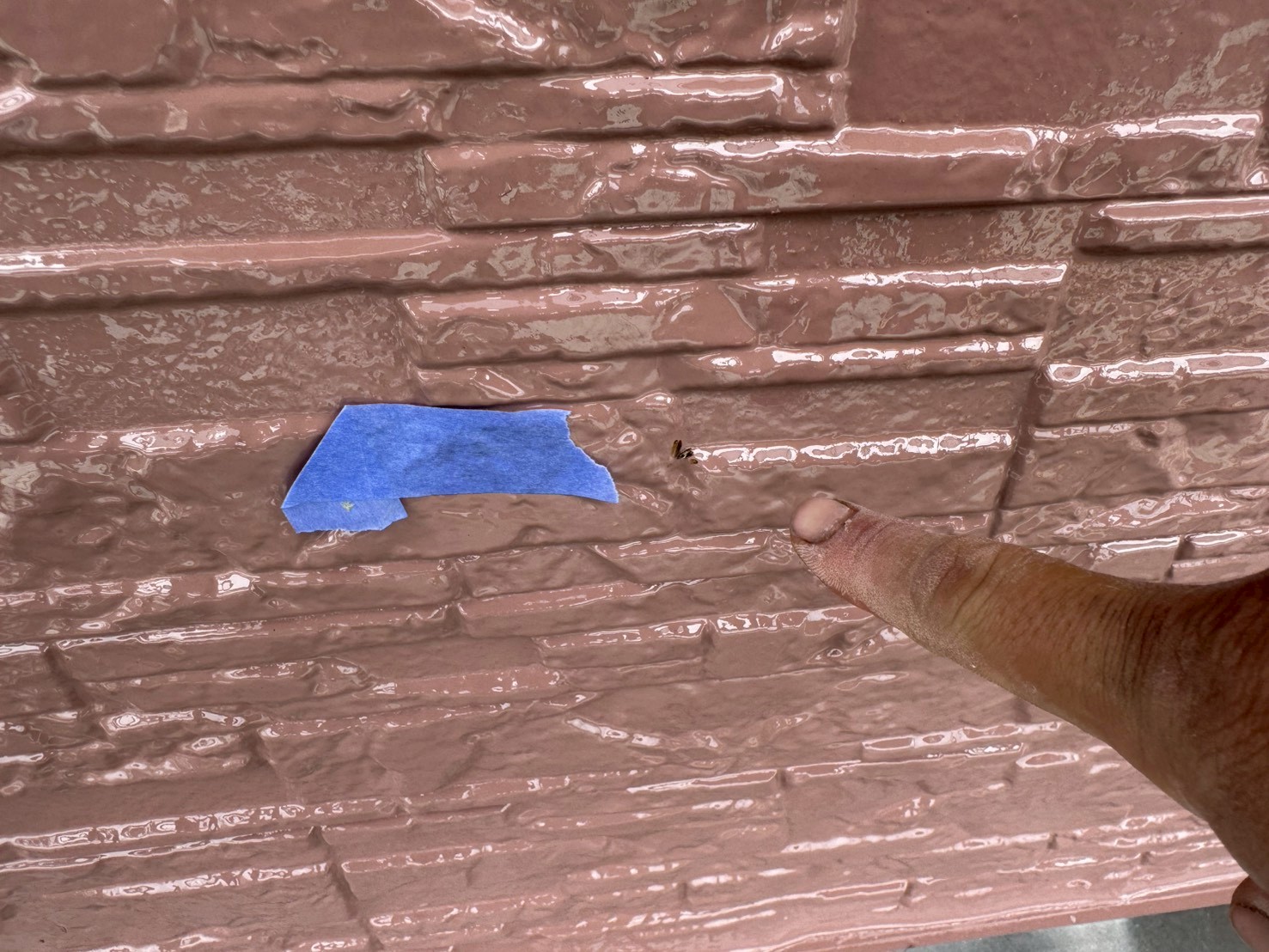 外壁全体を最初にチェックして、その後、細かい箇所のチェックをおこないます。特に上塗り塗料が均一に綺麗に塗れているかをメインに確認します。