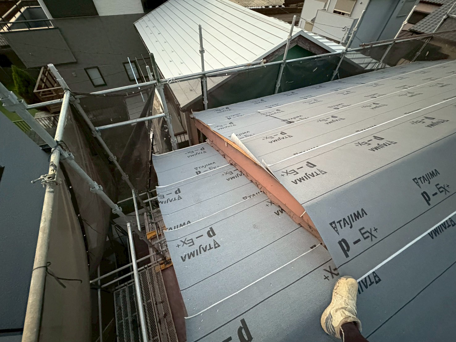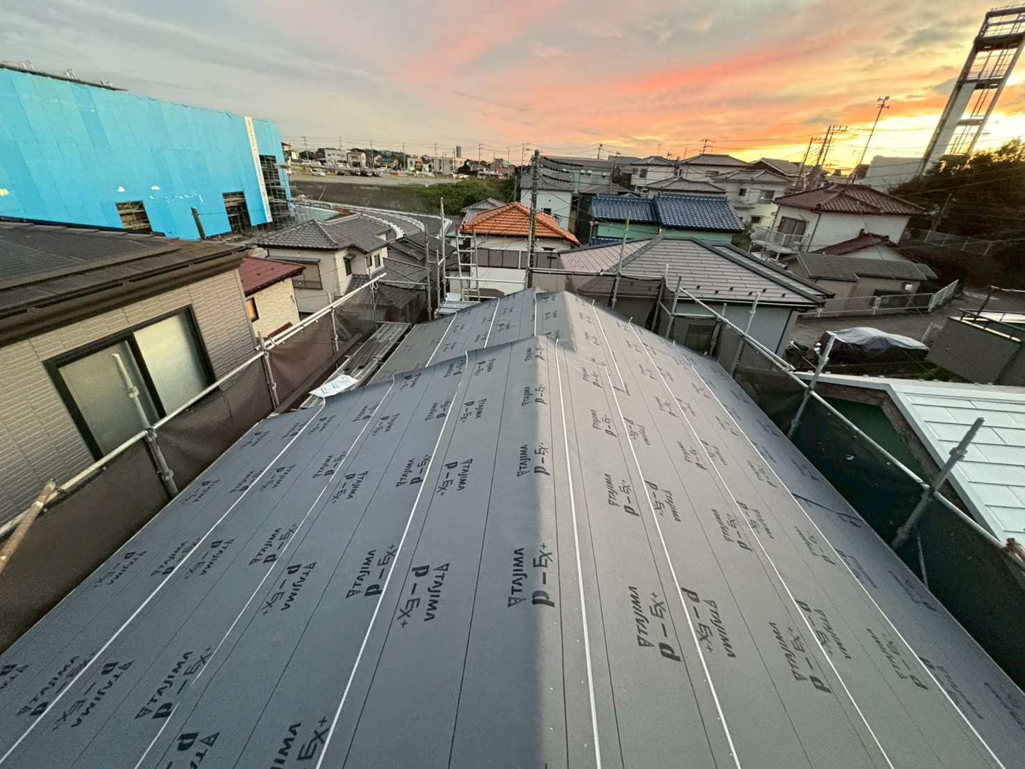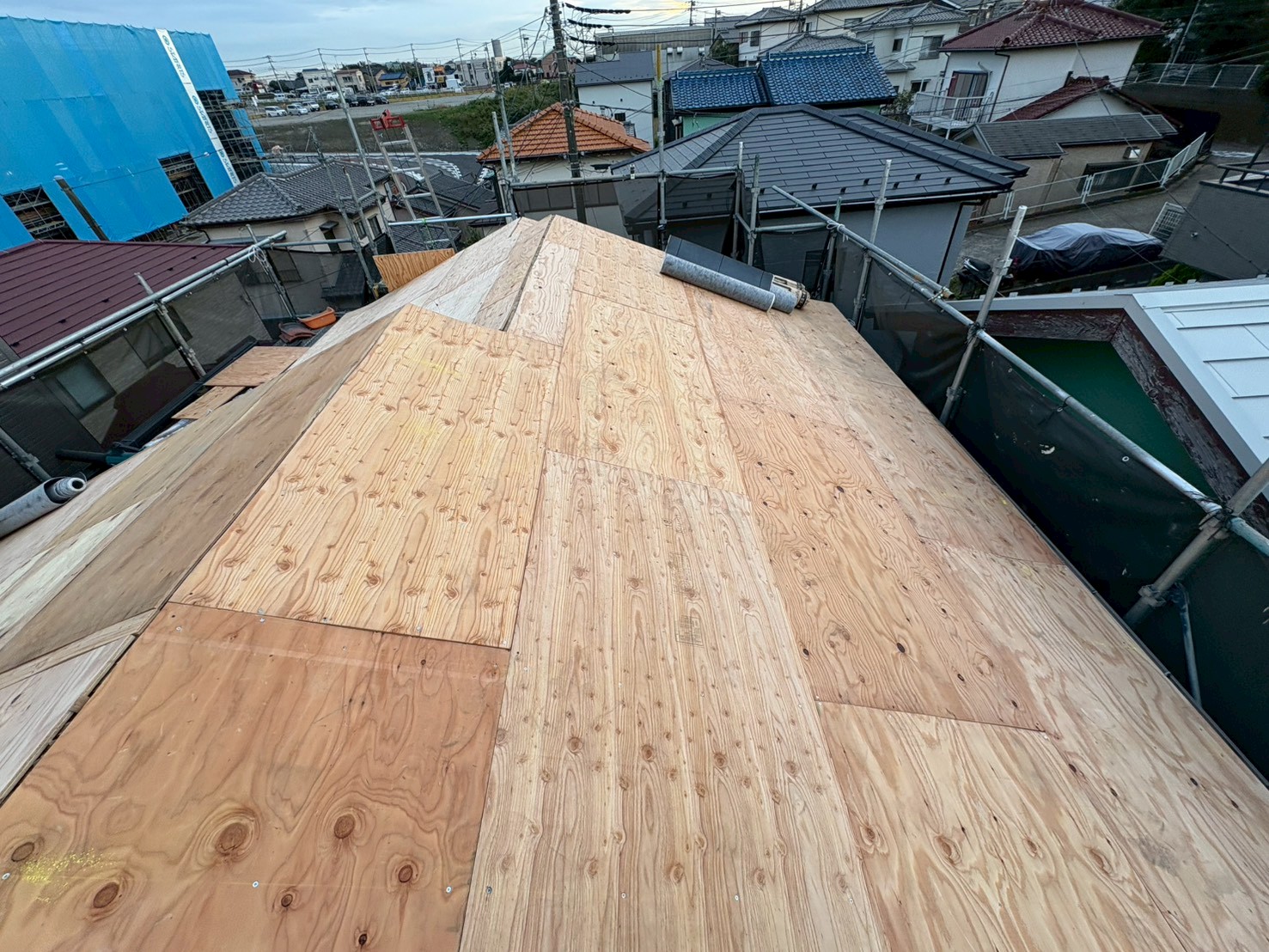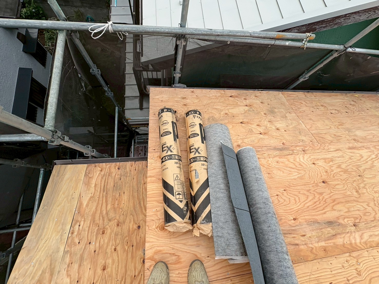 明日からは新規屋根材(ニチハ・アルマ)を貼り付けしていく施工をおこないます!!!