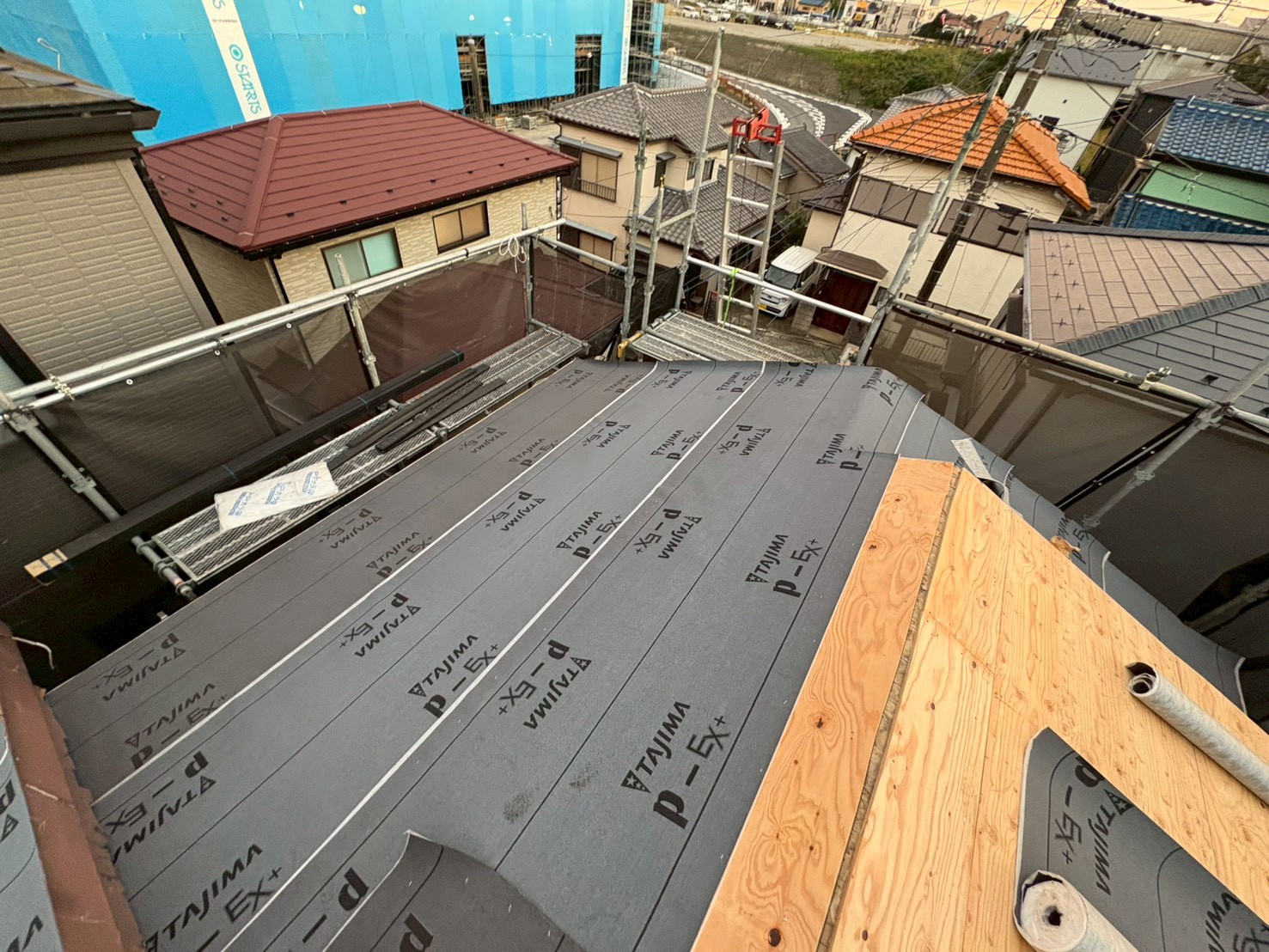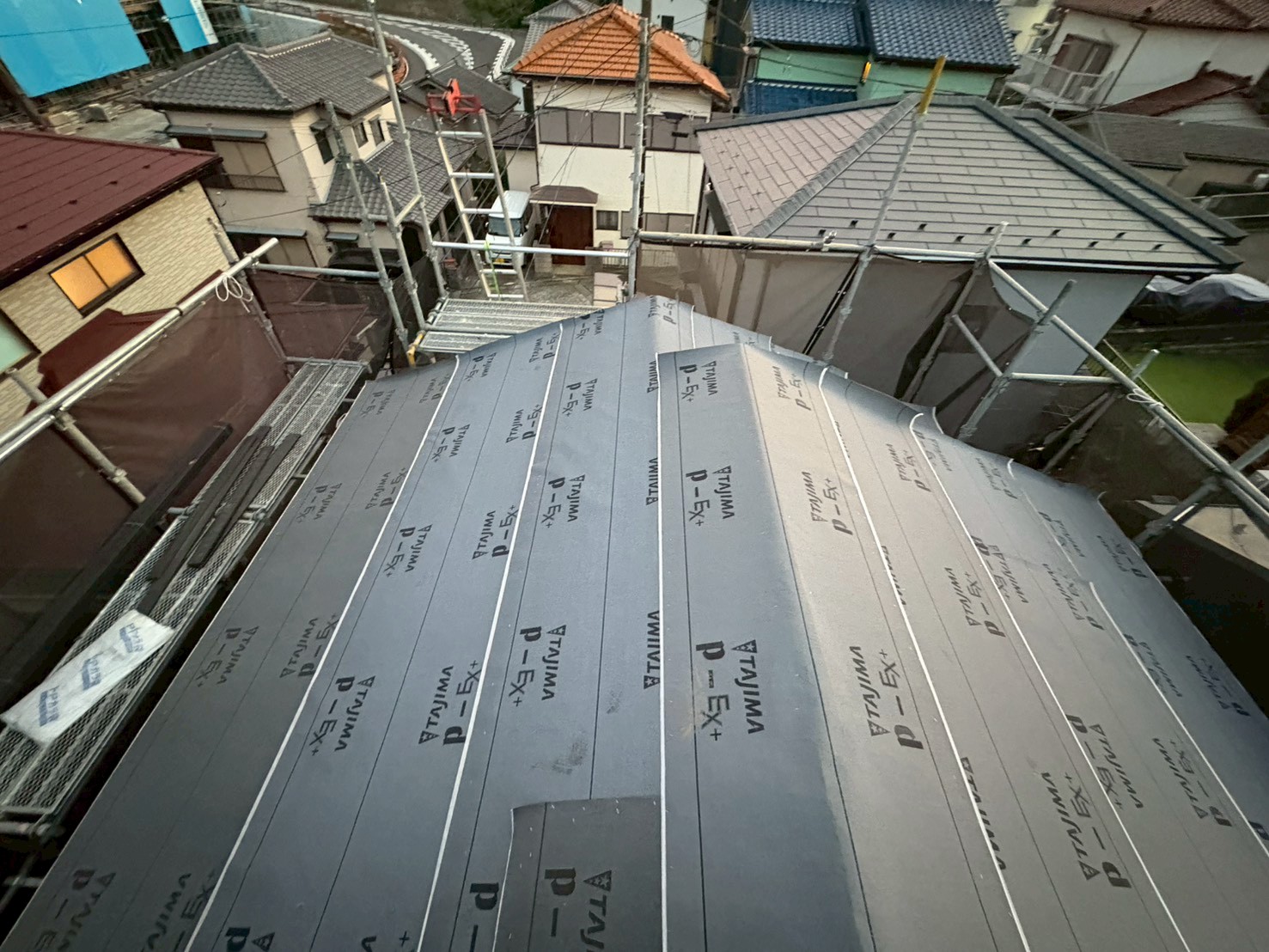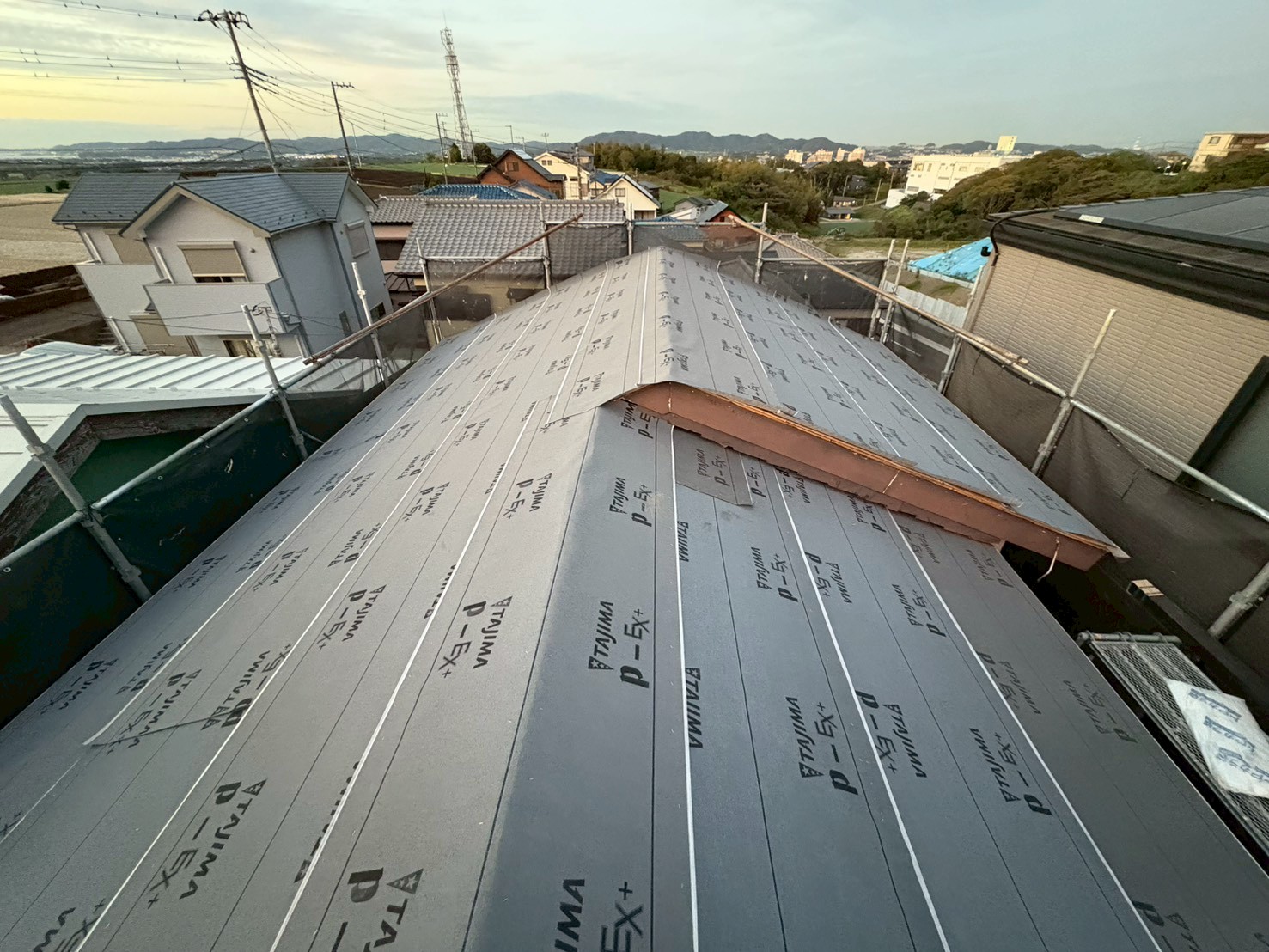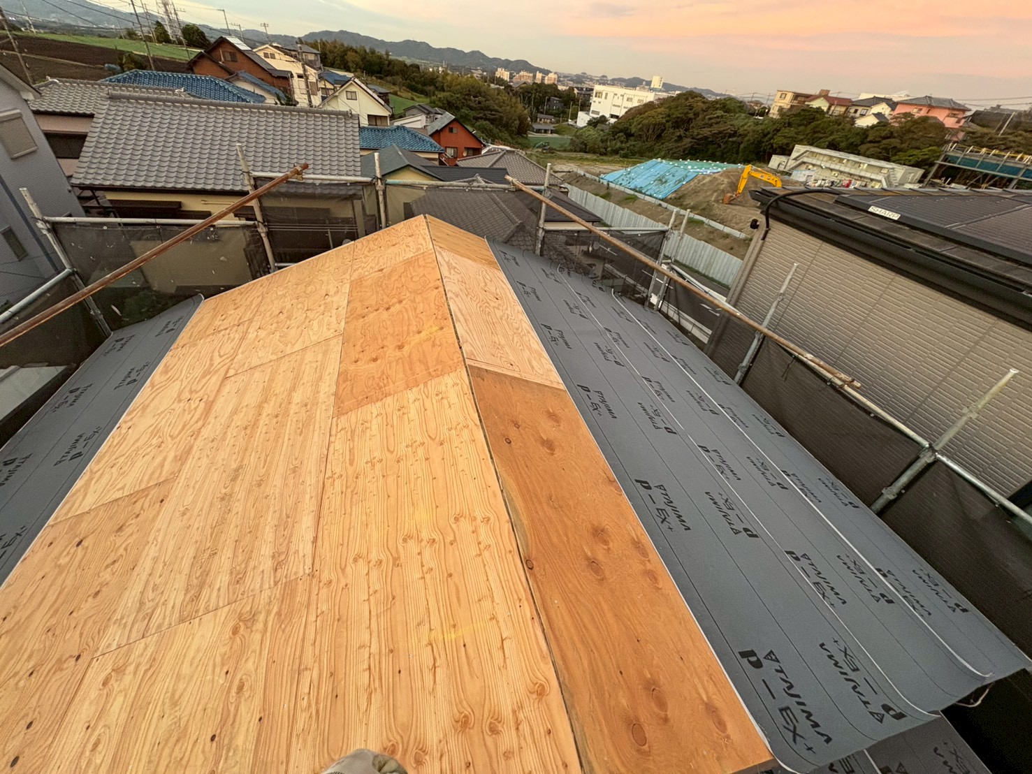 明日からは新規屋根材(ニチハ・アルマ)を貼り付けしていく施工をおこないます!!!