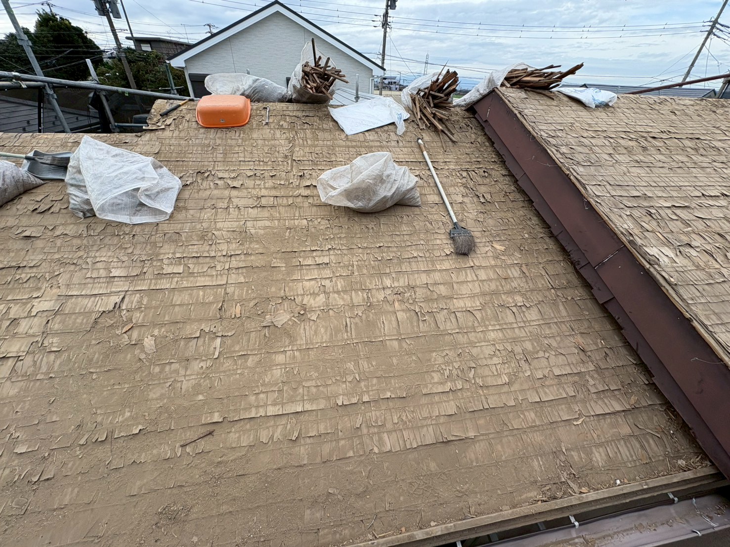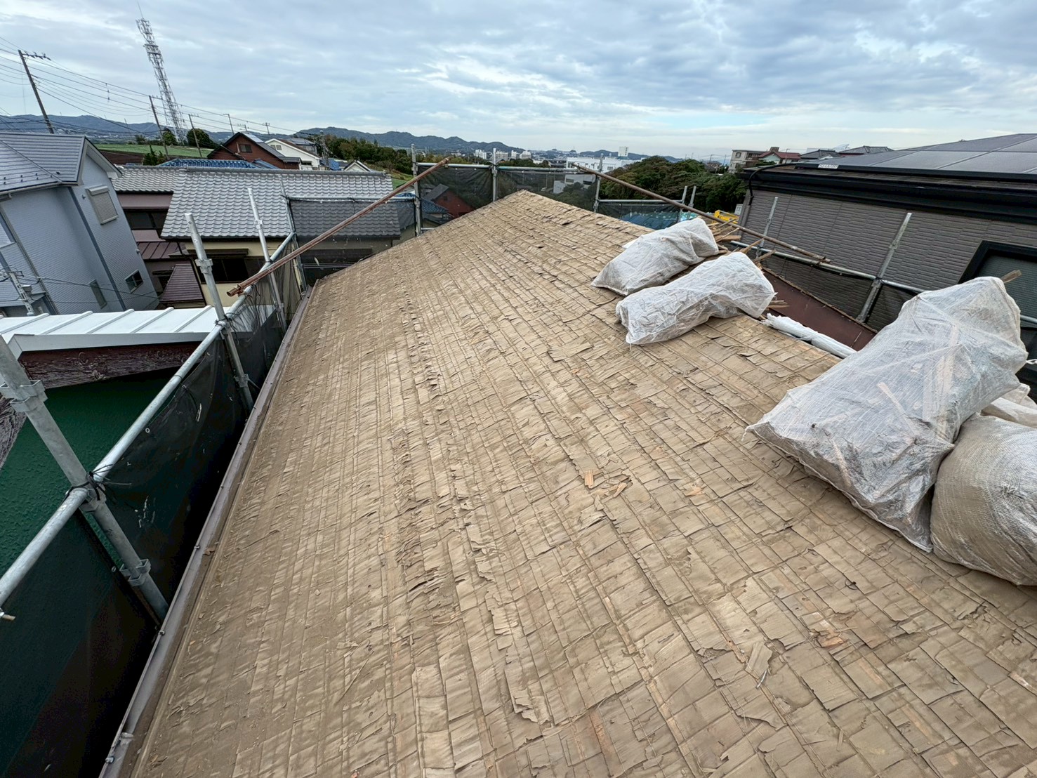 WEBでの検索から弊社公式LINEにてお問合せをいただきました、三浦市初声町のS様邸の屋根葺き替え工事の着工をさせていただきました!