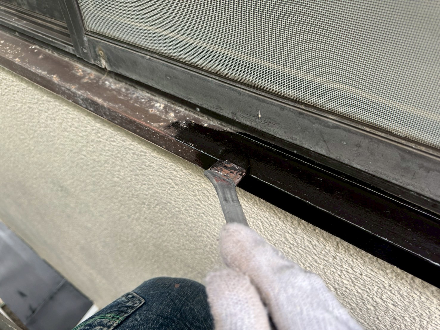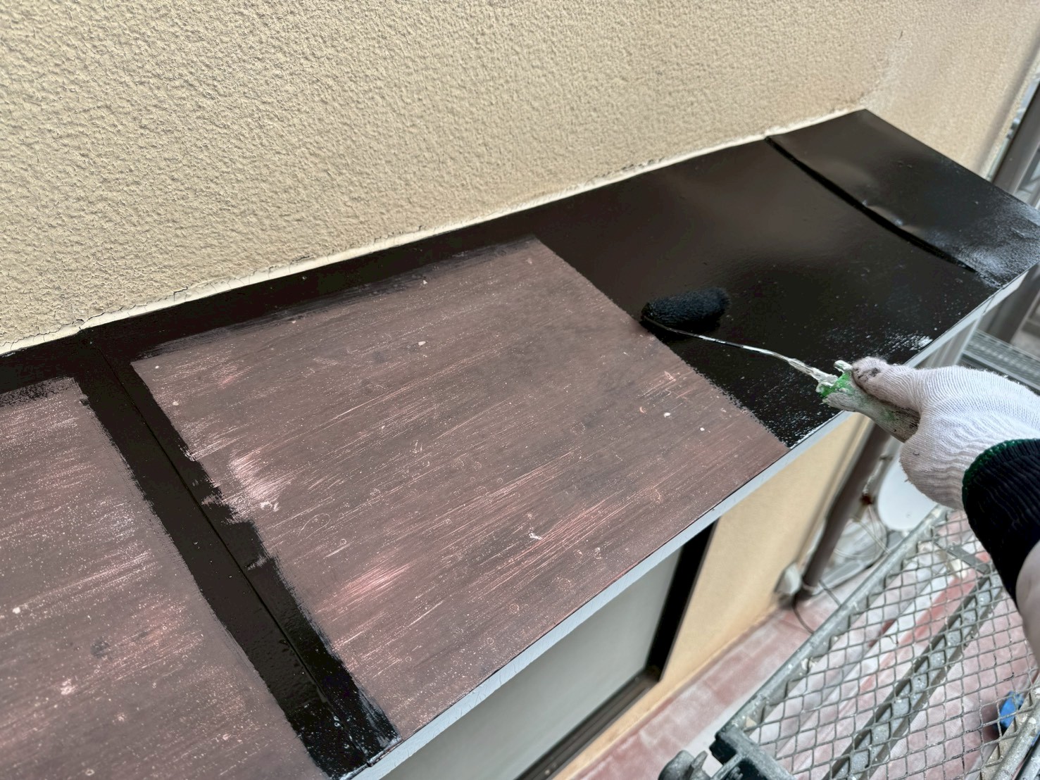 鉄部への下塗りは、主に錆止め塗料(エポキシ樹脂系)が使われます。