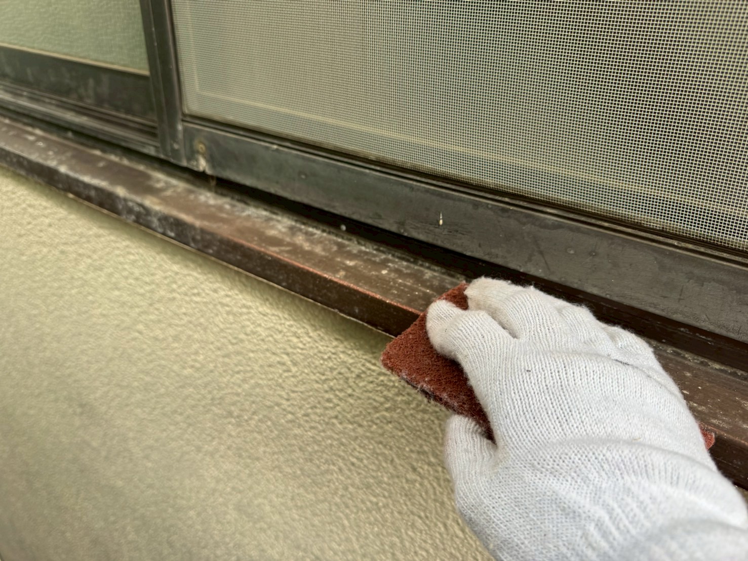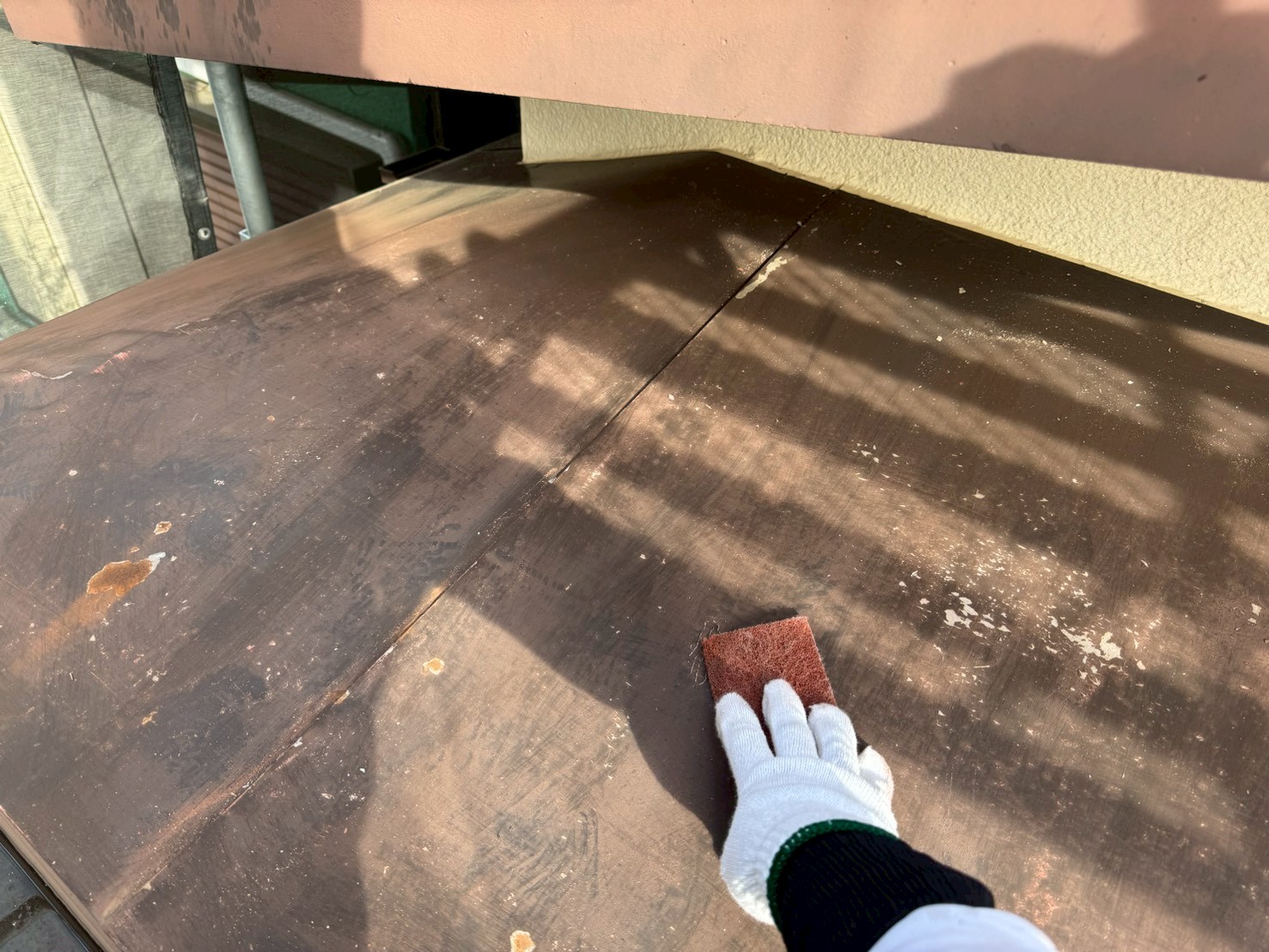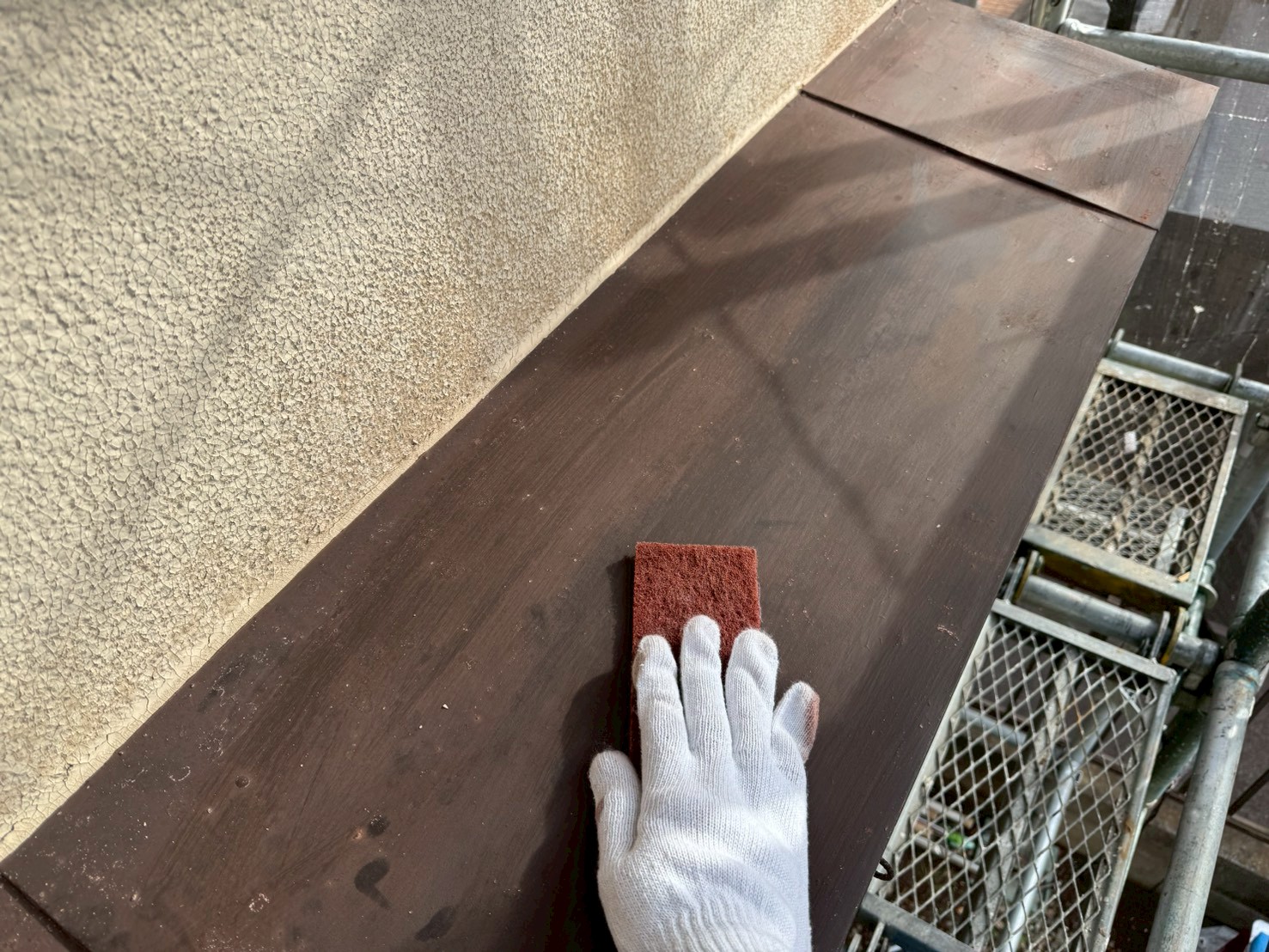 鉄部に細かい傷をつけることにより、塗料の接触面積を広げます。