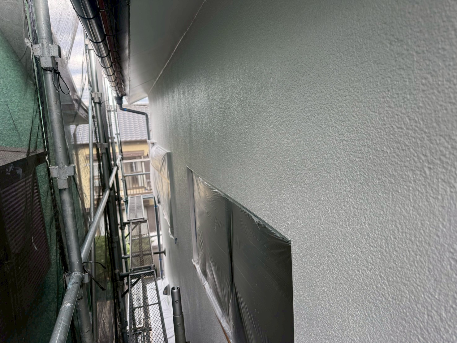 この中塗り工程から色の付いた塗料を外壁に塗装する為、施主様は外壁塗装をおこなっている実感が湧く方が多く仕上がりが楽しみと言っていただける事が多くなる段階となります!!!