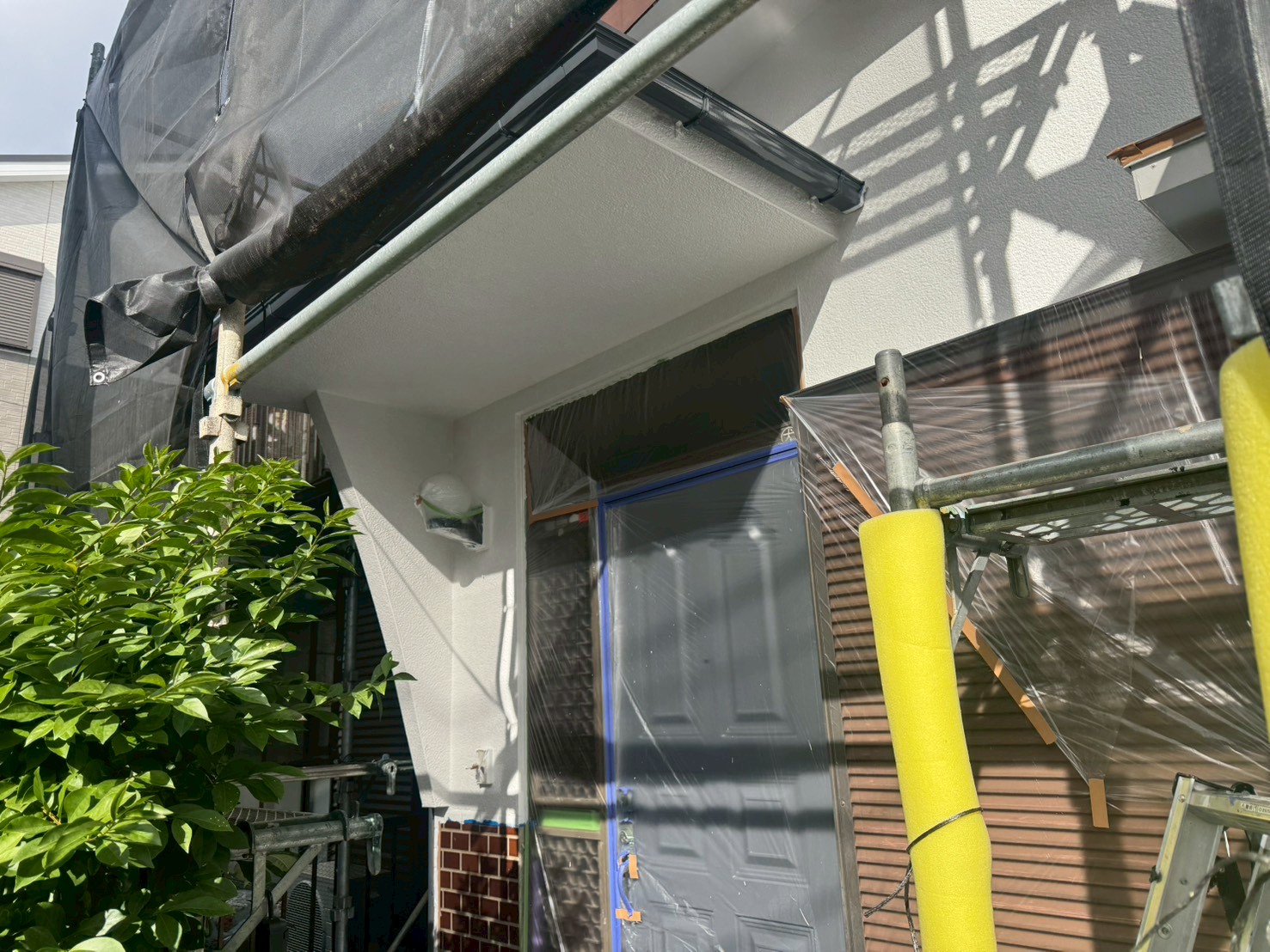 本日はS様邸の【外壁】と【軒天井】の【中塗り工程】を実施いたしました!!!