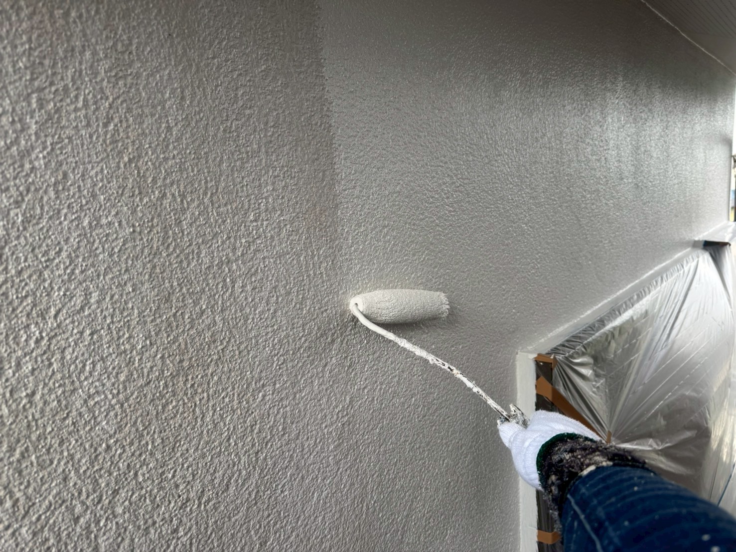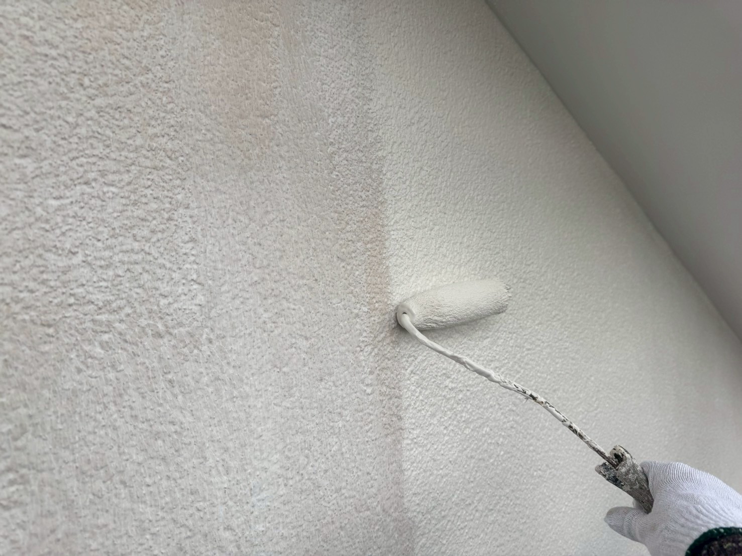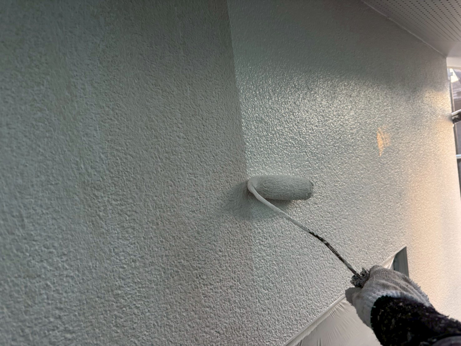 下塗り後に、中塗りをおこなう事により塗膜に厚みが出て、外壁の保護機能が高まります。