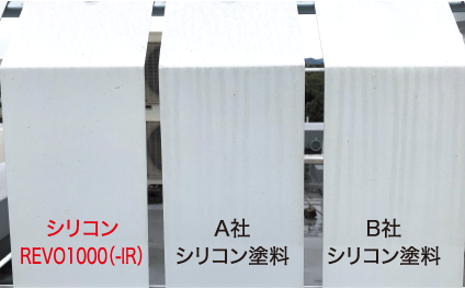 一般的な低汚染のシリコン塗料と比較して、雨染み汚染が付きにくく、塗り替え後の美しさを保つことが確認されました。