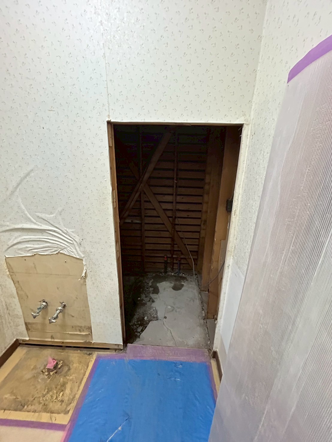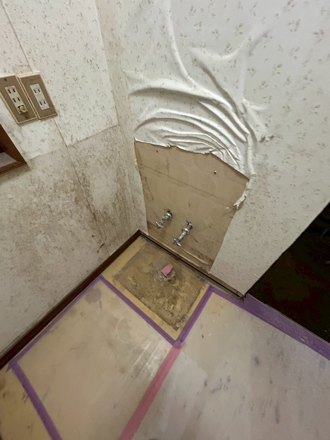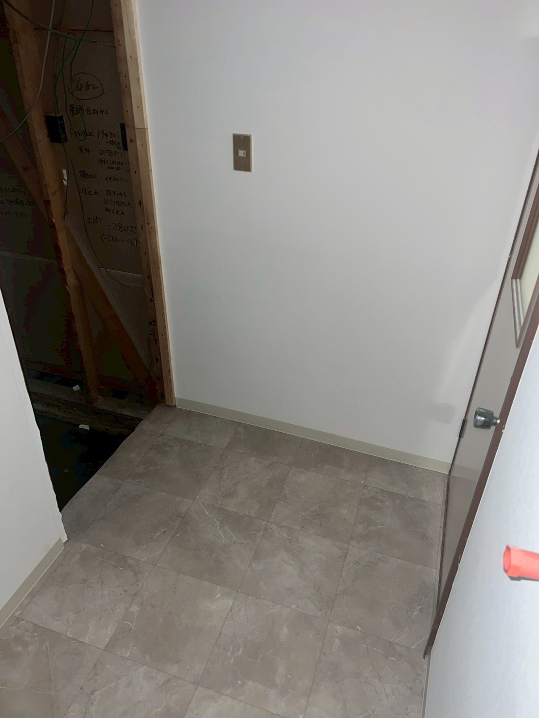 今回は【クロス交換】と【床/クッションフロア張替】を洗面台取付前に実施いたしました。