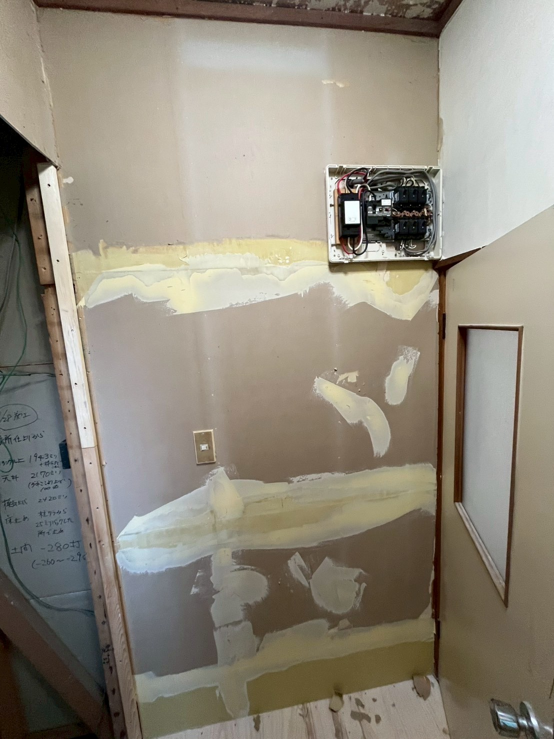 この工程が大切で下地が凸凹だとクロスは薄い為、表面の仕上がりが悪くなってしまいます・・・