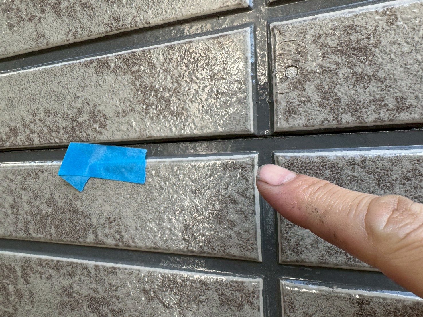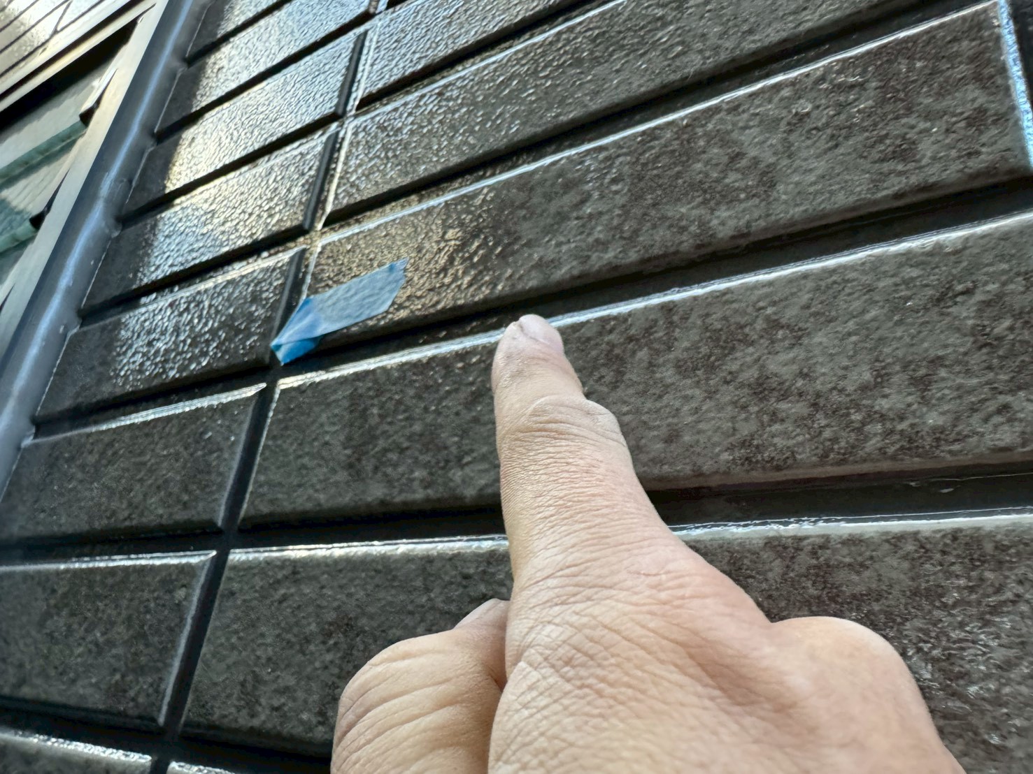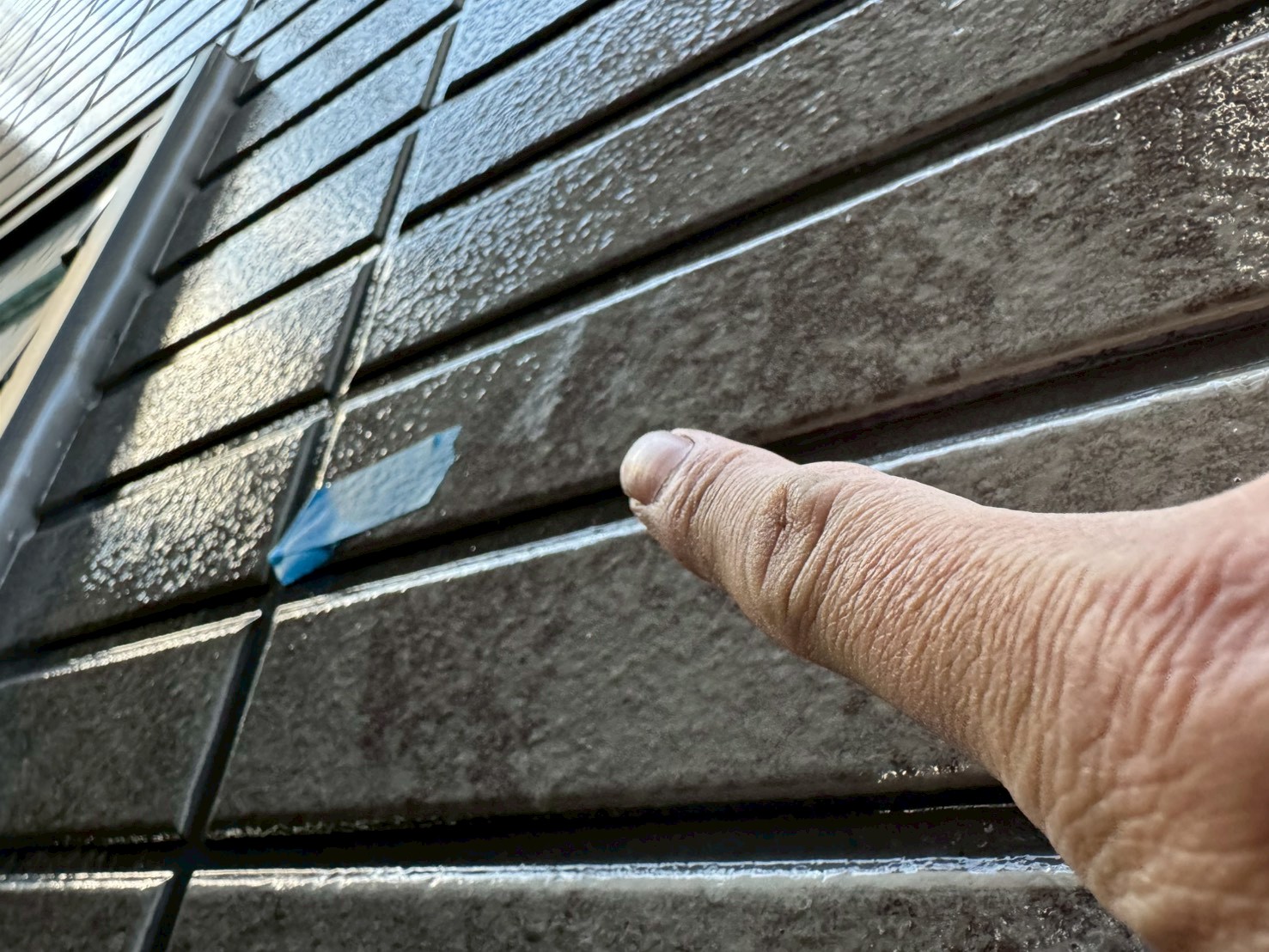 外壁全体を最初にチェックして、その後、細かい箇所のチェックをおこないます。特に上塗り塗料が均一に綺麗に塗れているかをメインに確認します。
