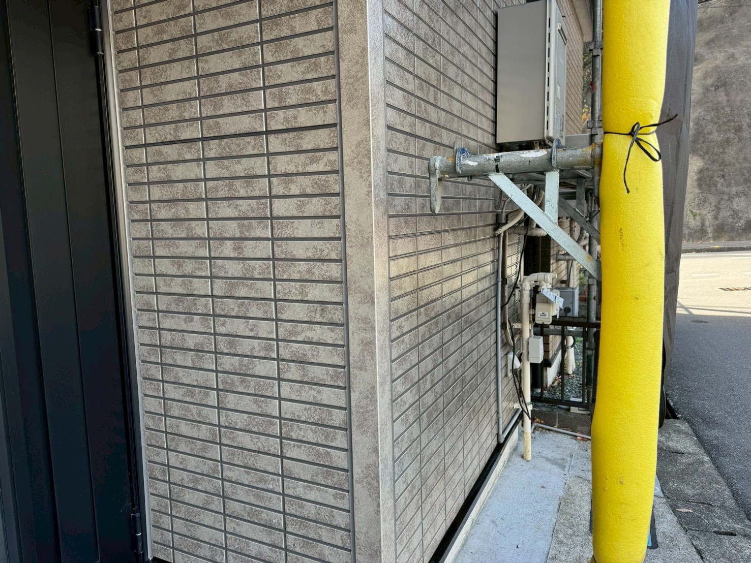 窓枠や給湯器、付帯部などの裏側などを塗り忘れてないかなどを、重点的にチェックします。養生を剥がした箇所に汚れ(ノリ跡)などがないかも確認します。