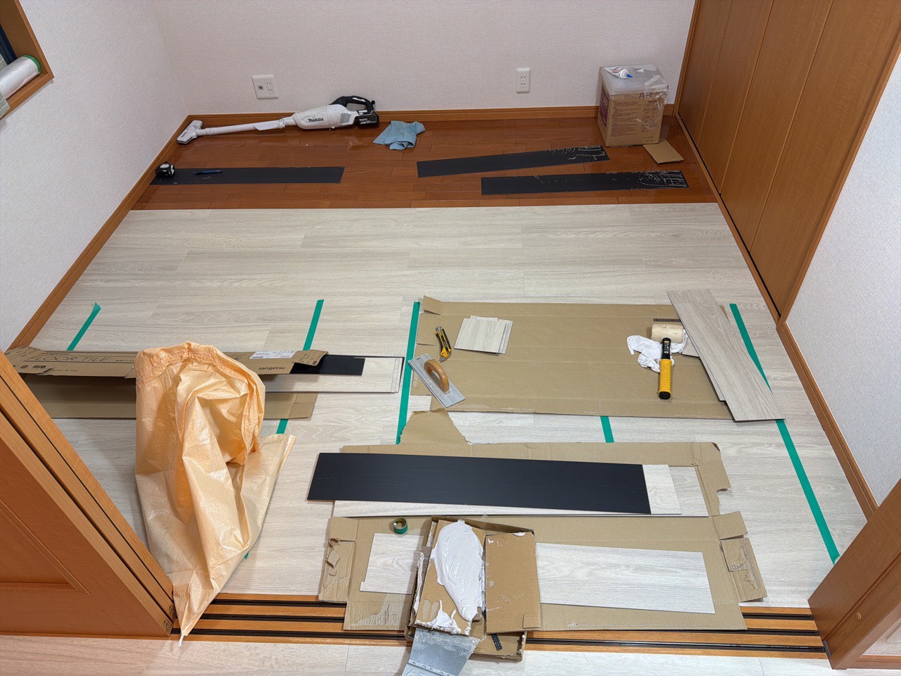 既存の状態も比較的綺麗な状態ではありましたが、リビングスペースの為、クッションフロアではなくフロアタイルを推奨させていただきました!!!
