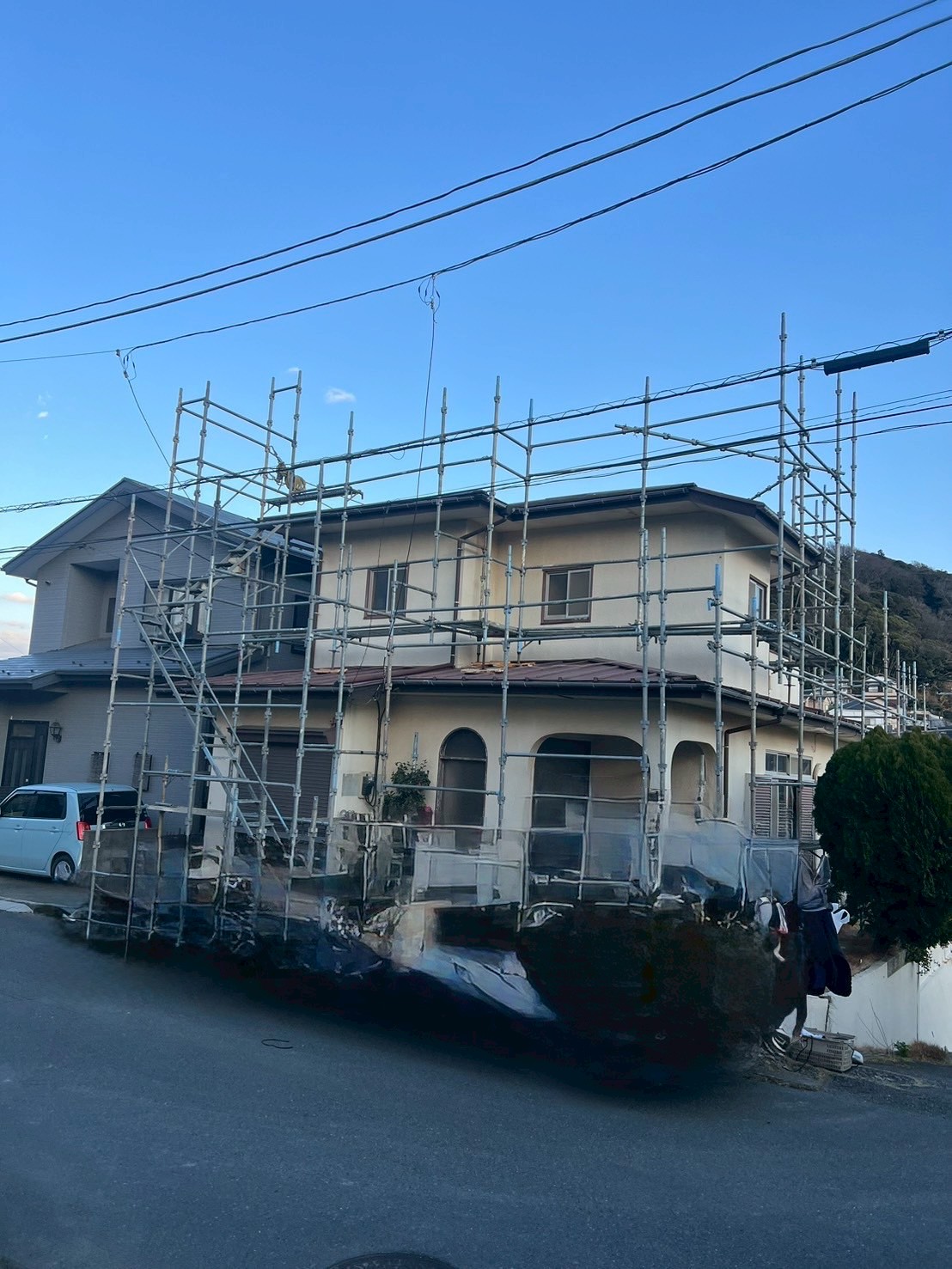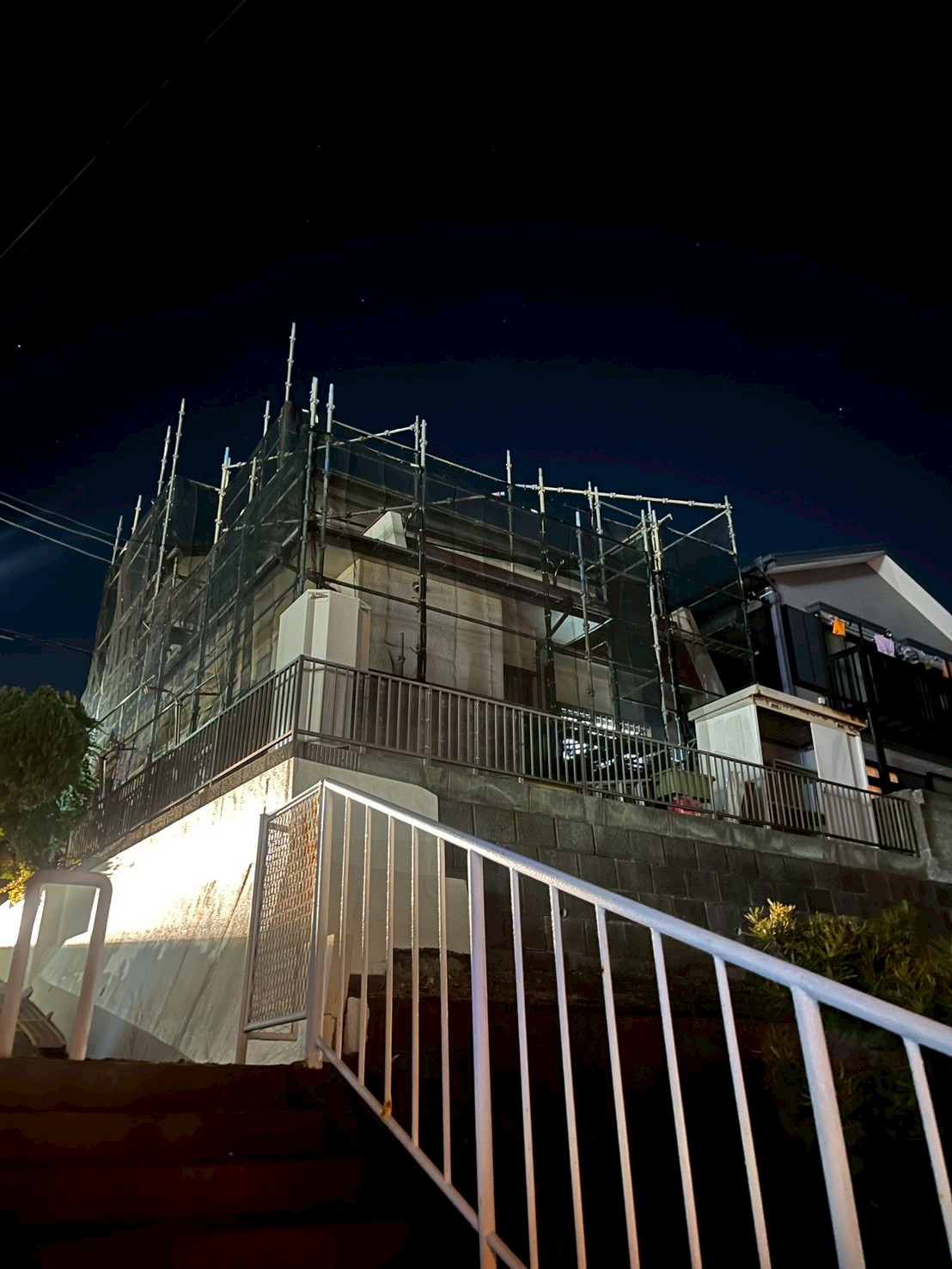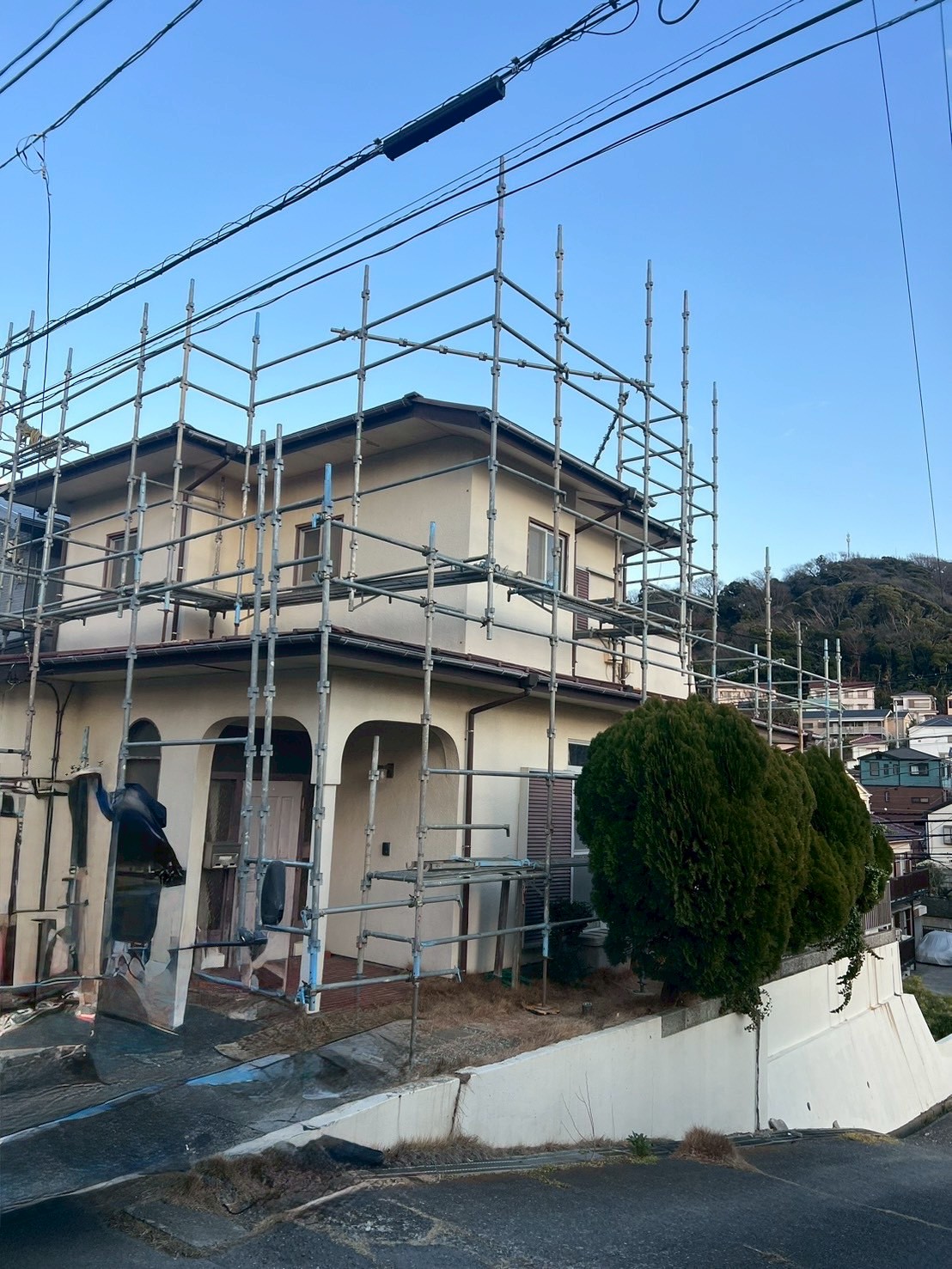 本日は、弊社から近い、横須賀市武のN様邸の【足場仮設工事】を実施させていただきました。