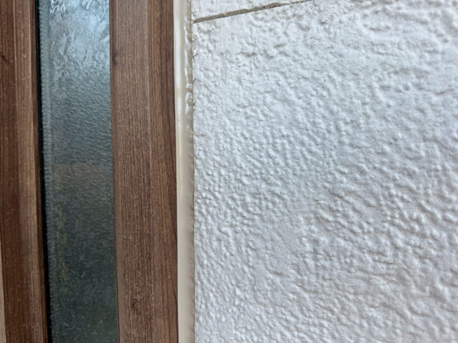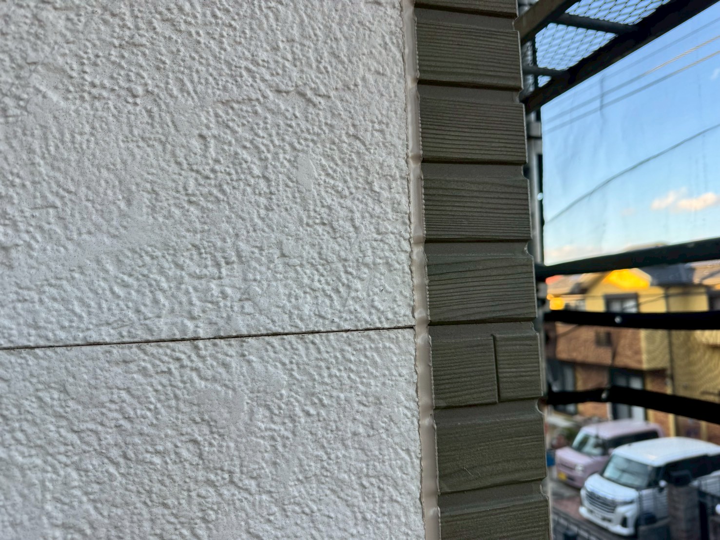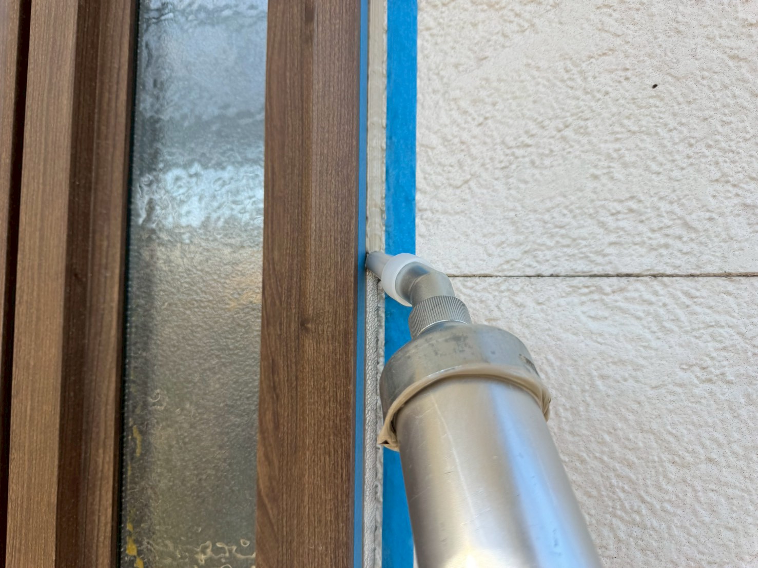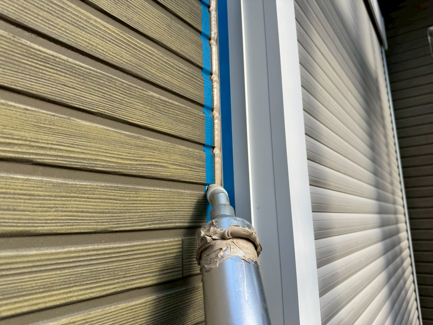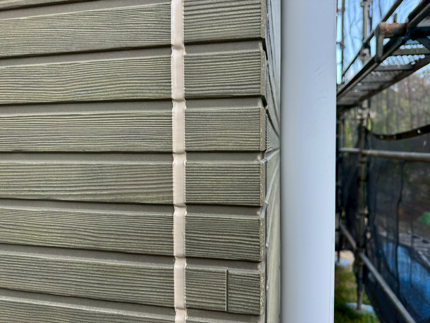 通常、シーリング打設をおこない、しっかりと乾いてから外壁塗装工事をおこない、シーリング上から新規塗装をおこなう事が多いですが、塗装をおこなう前にもしっかりとシーリング施工がないか点検をおこなって、シーリング打ち替え工程の終了です。