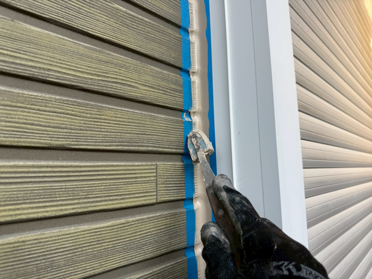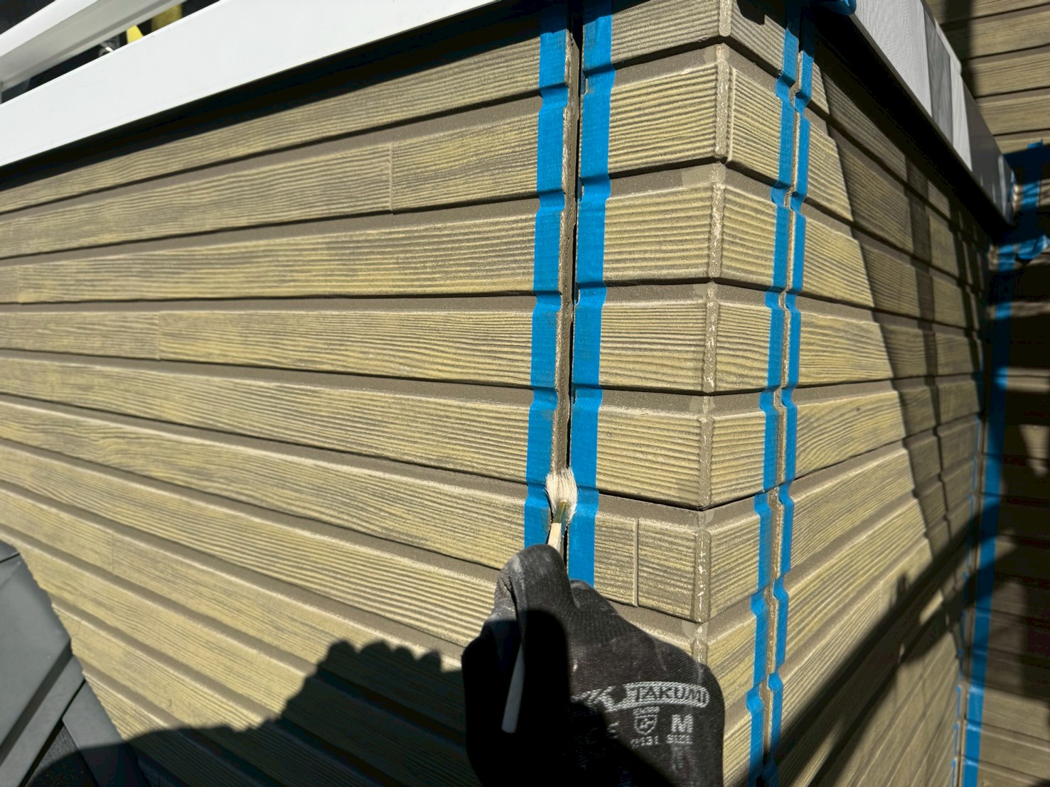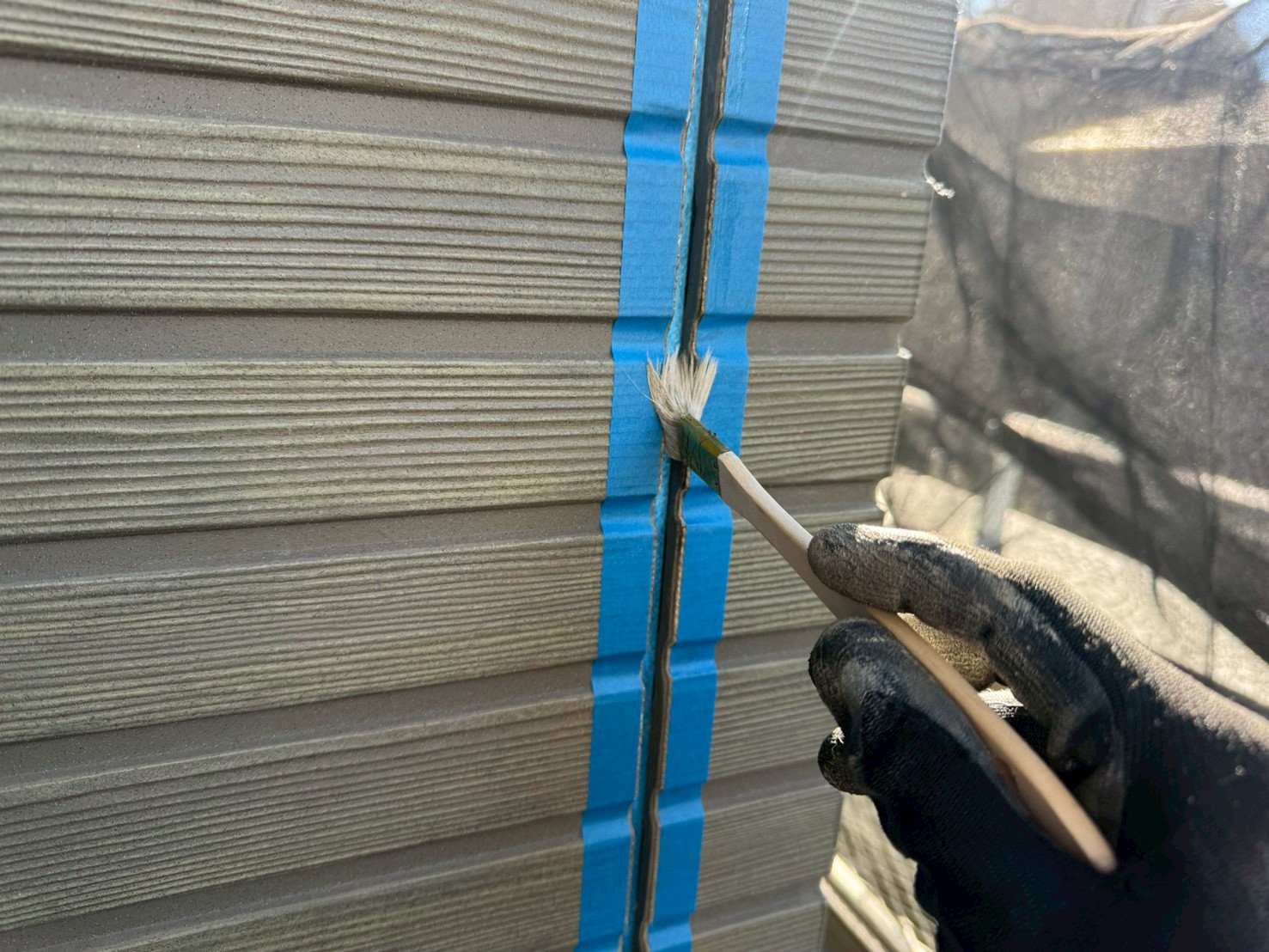シール打ち替え後、しっかりとシールを乾燥させてから(5日間ぐらい目安)外壁塗装の下塗りを実施していきます!!!