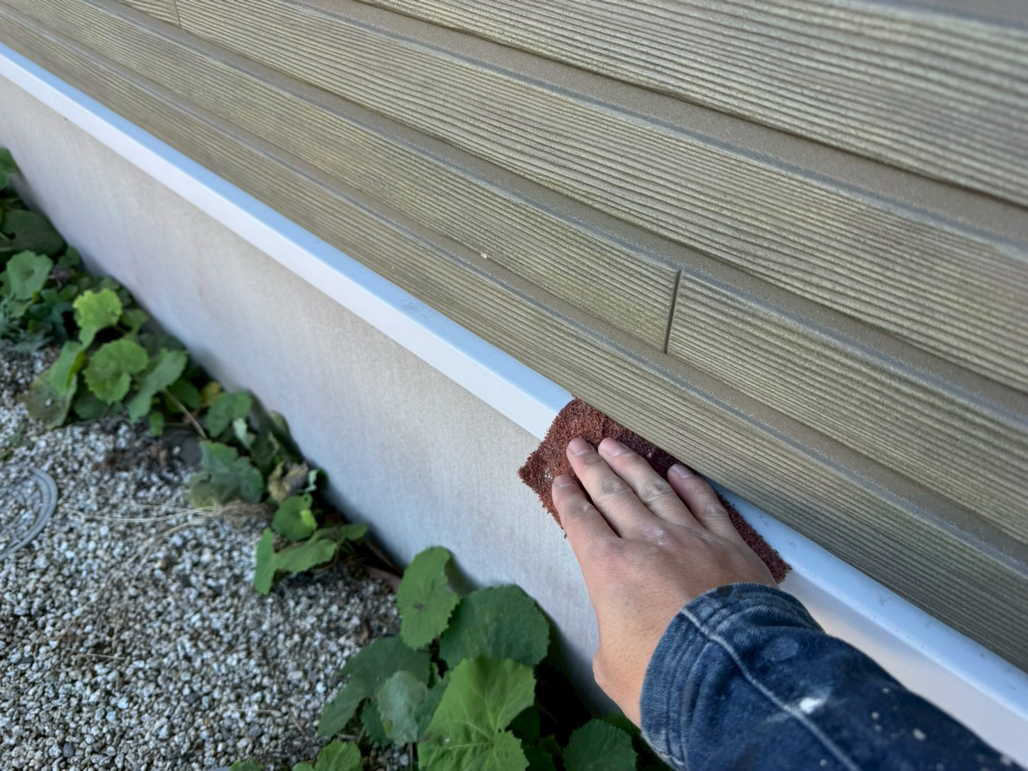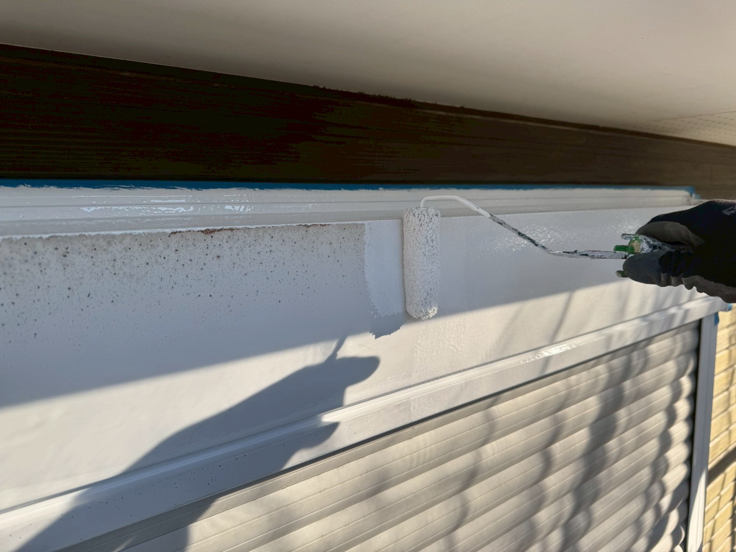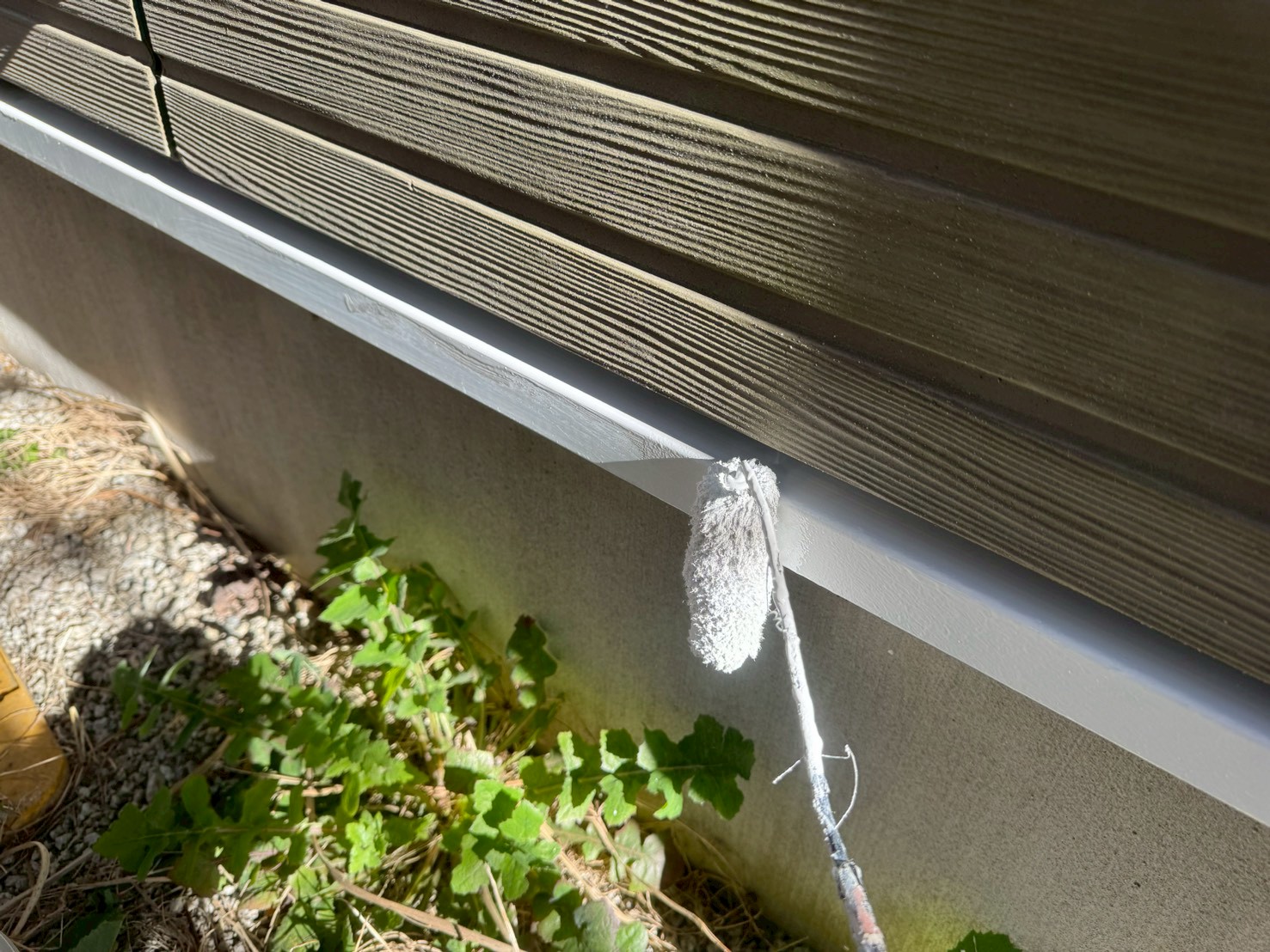 噴射式のスプレーガンではなく、刷毛やローラーを使い丁寧に手塗りにて下塗り施工をおこいました。