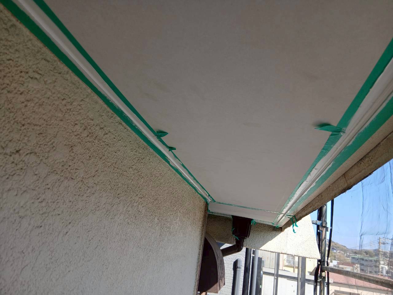 先日ご紹介させていただきました、雨漏れが原因で現在【下屋根葺き替え工事】を実施しておりますN様邸の【軒天井交換】を実施いたしましたので、ご紹介させていただきます。