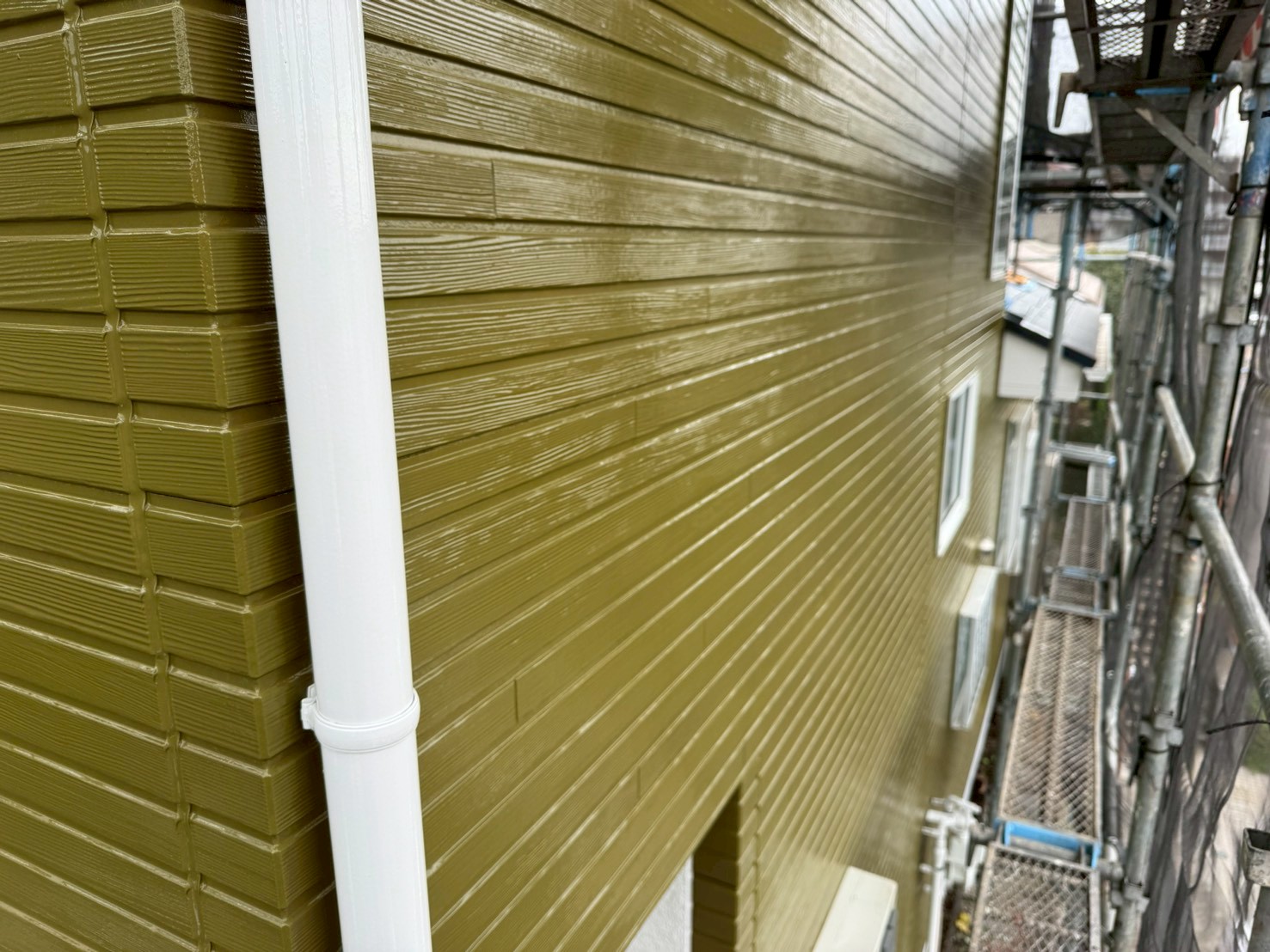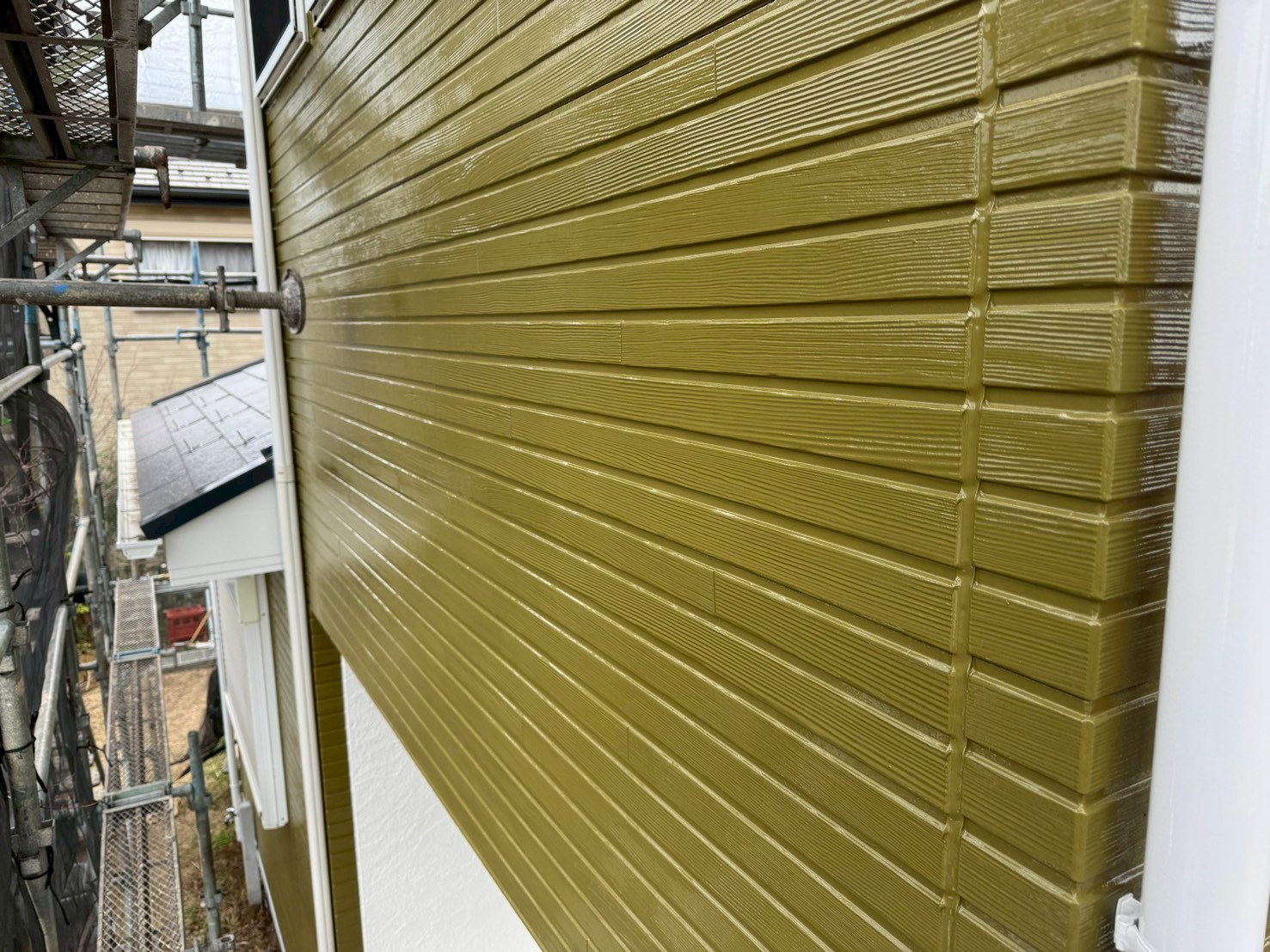 塗り忘れや色ムラ、配線・配管の復旧状況、汚れ、指定した色の違いがないか?を細かくチェックをおこない、足場の解体前に日数に余裕をもって必ずおこなっております。