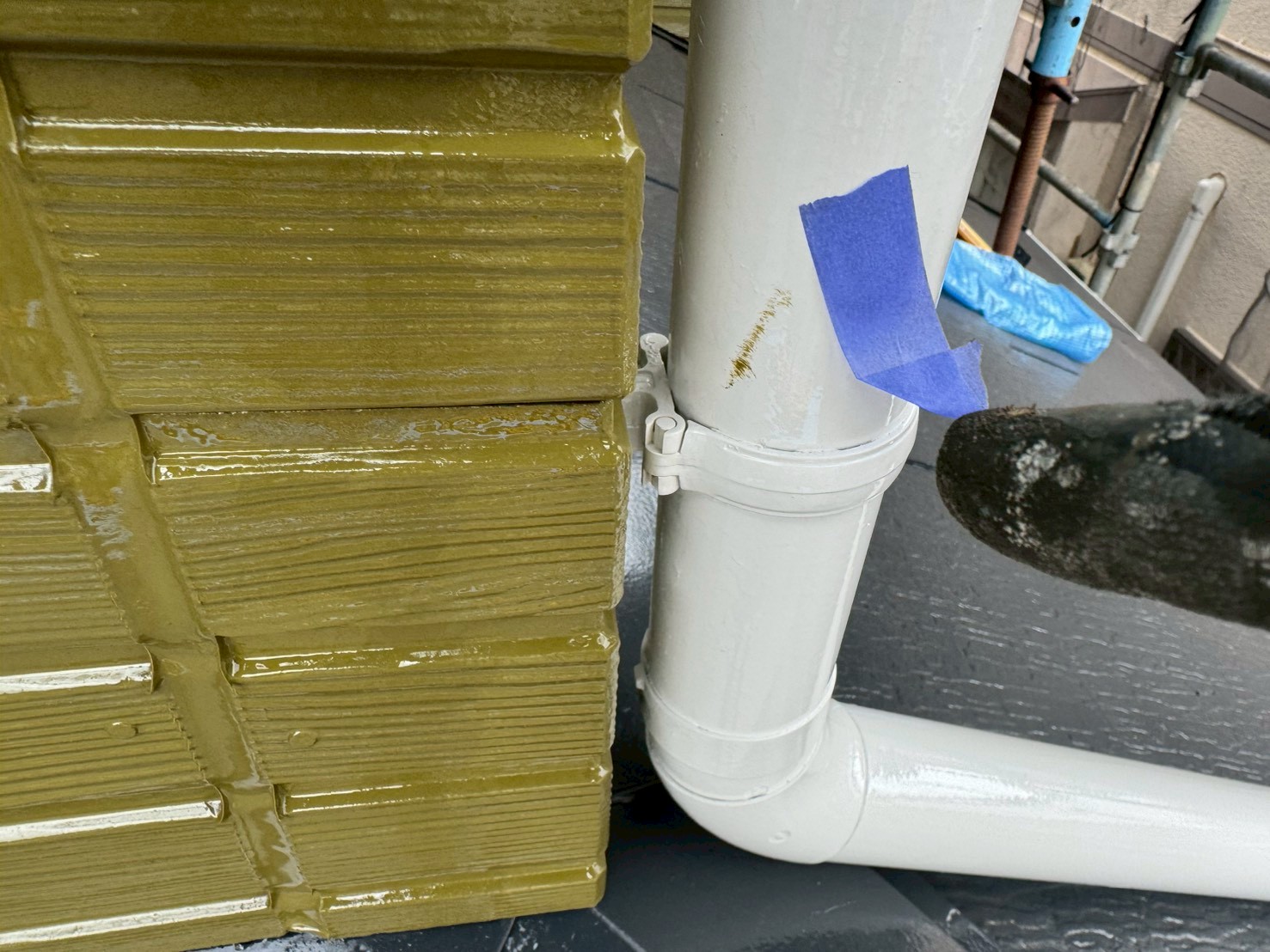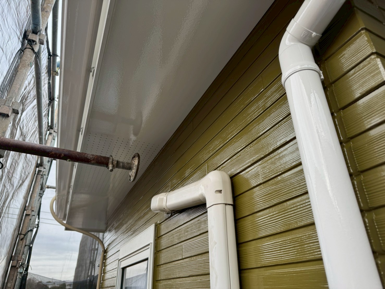 窓枠や給湯器、付帯部などの裏側などを塗り忘れてないかなどを、重点的にチェックします。養生を剥がした箇所に汚れ(ノリ跡)などがないかも確認します。