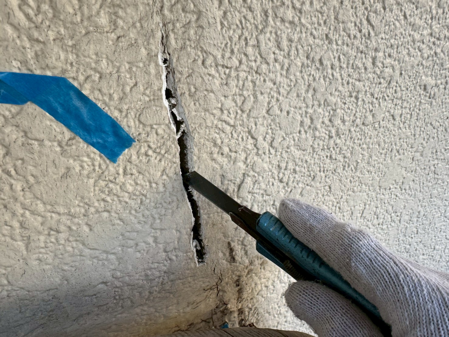 築年数が経過している物件の為、クラックが多く、しっかりとクラック補修を実施してから外壁塗装を実施する事が大変重要となります。