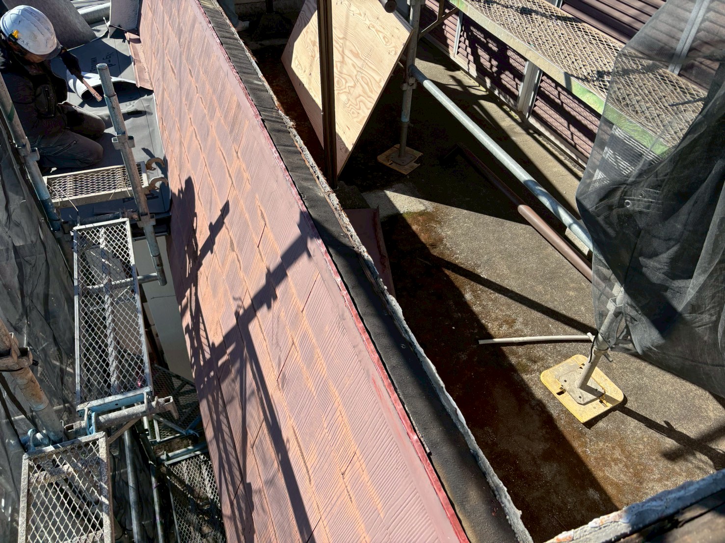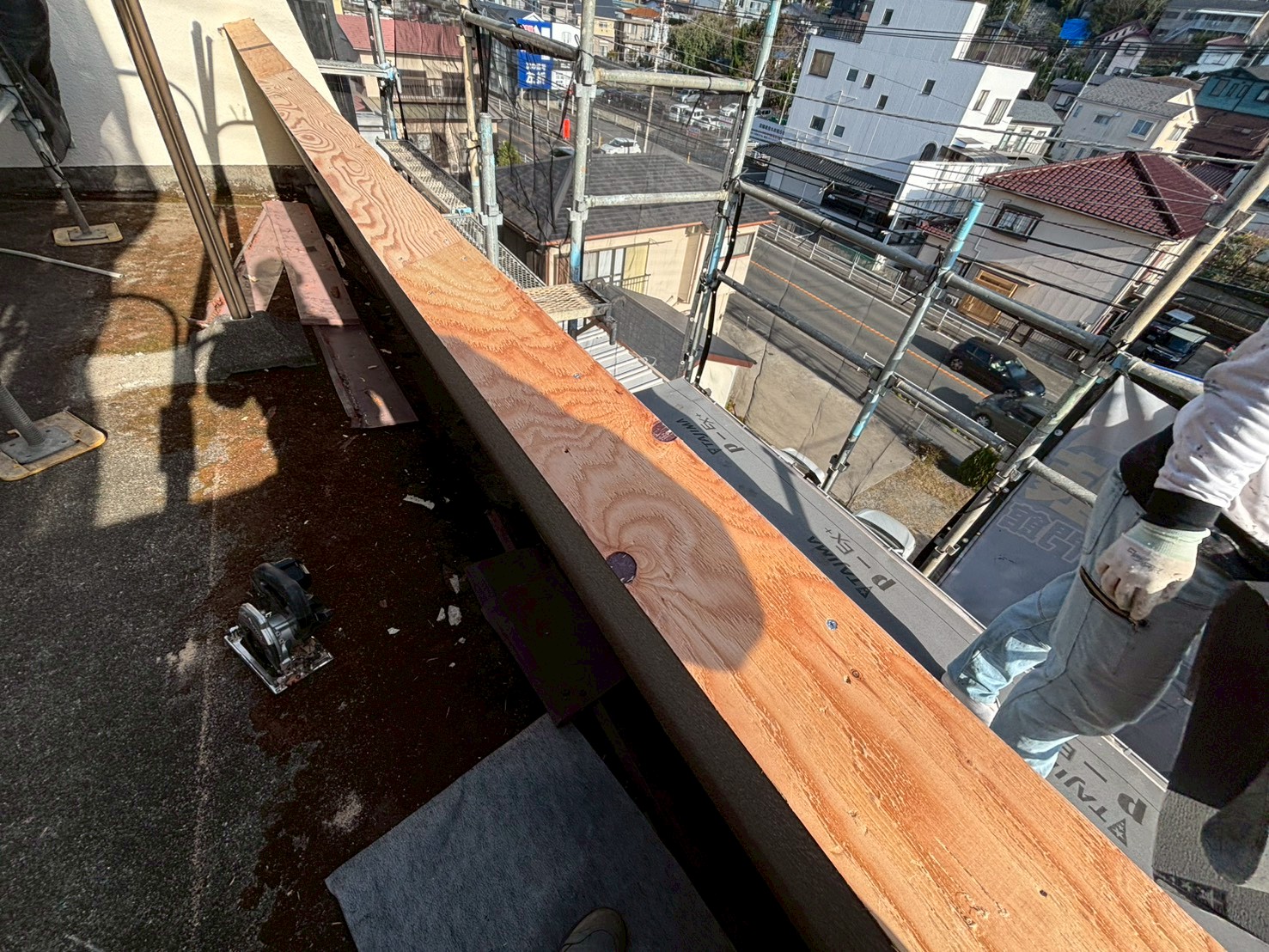木と防水シート(ルーフィング)にて下地を新規で作っていきます。