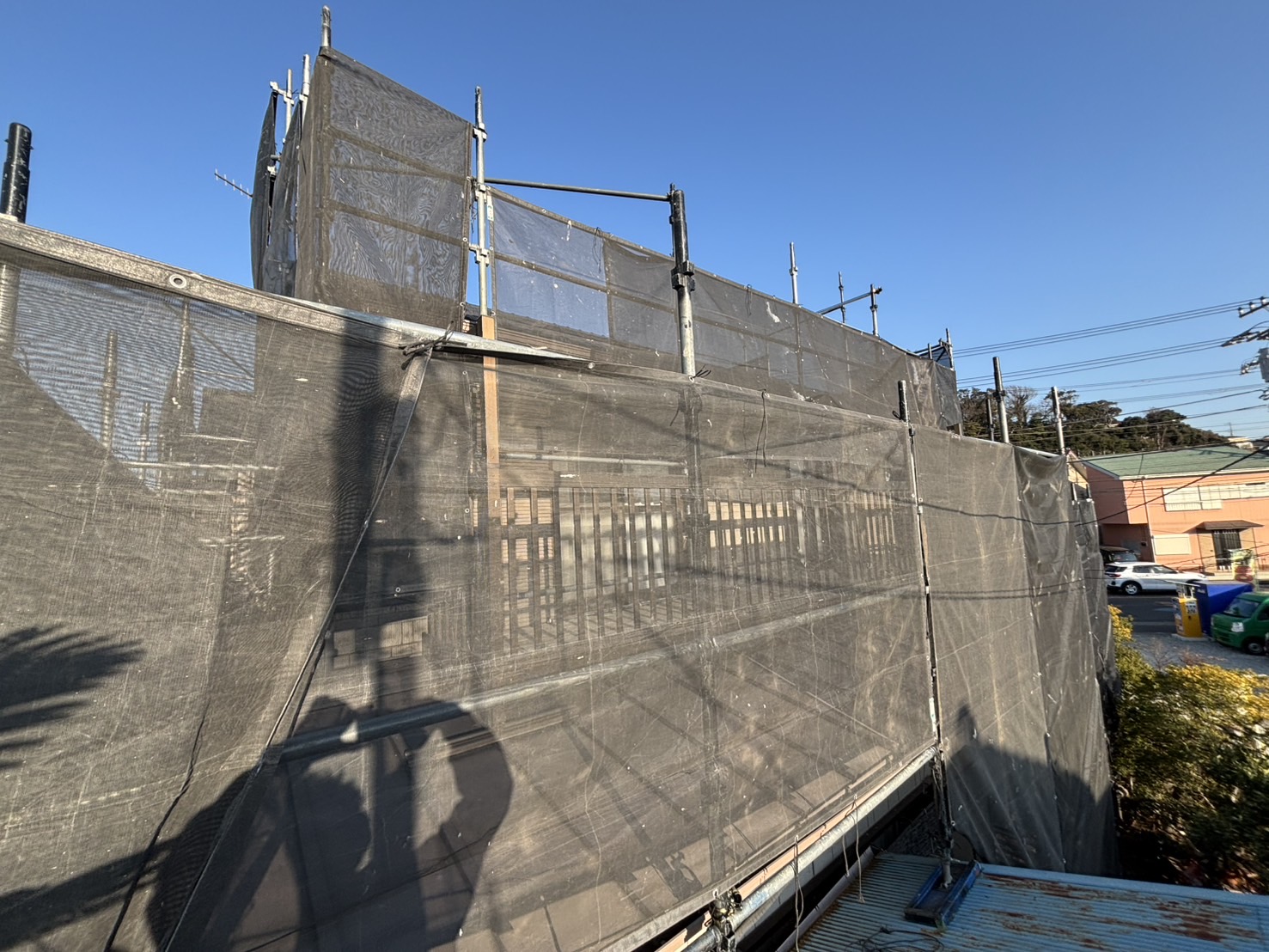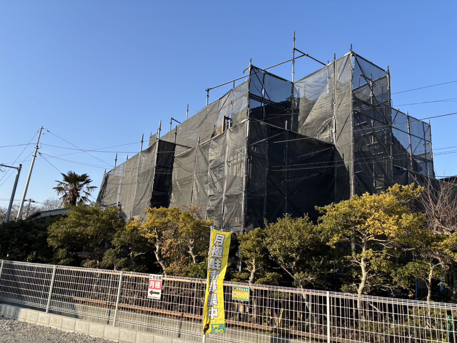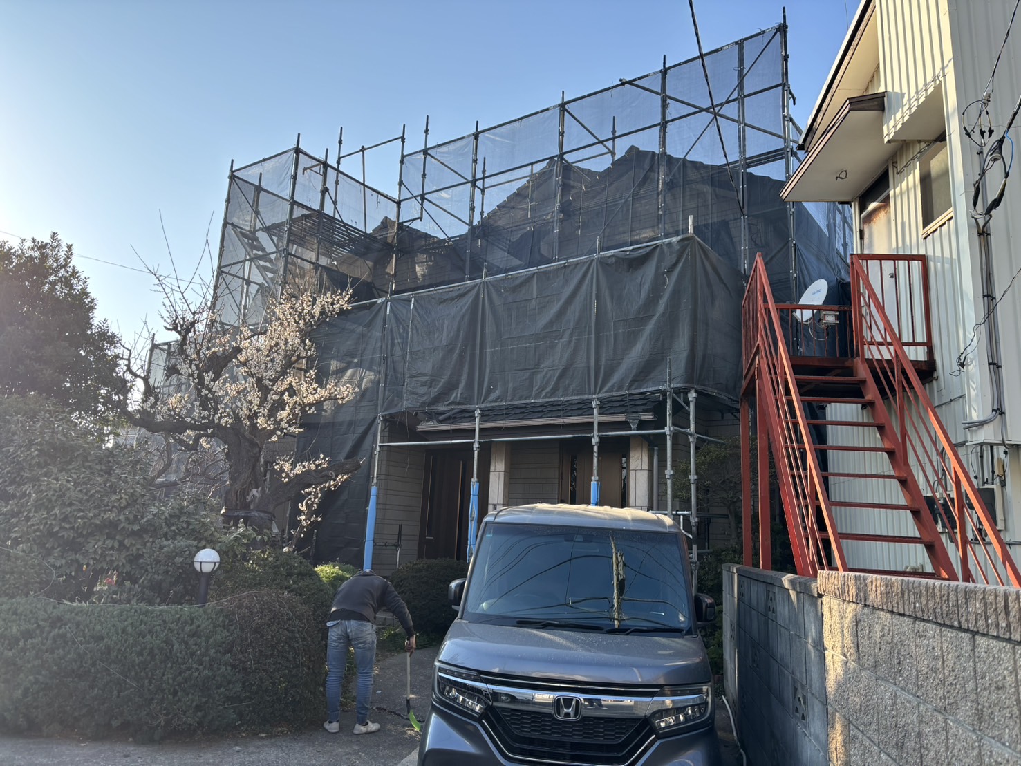 本日は、弊社から近い、横須賀市長井のS様邸の【足場仮設工事】を実施させていただきました。