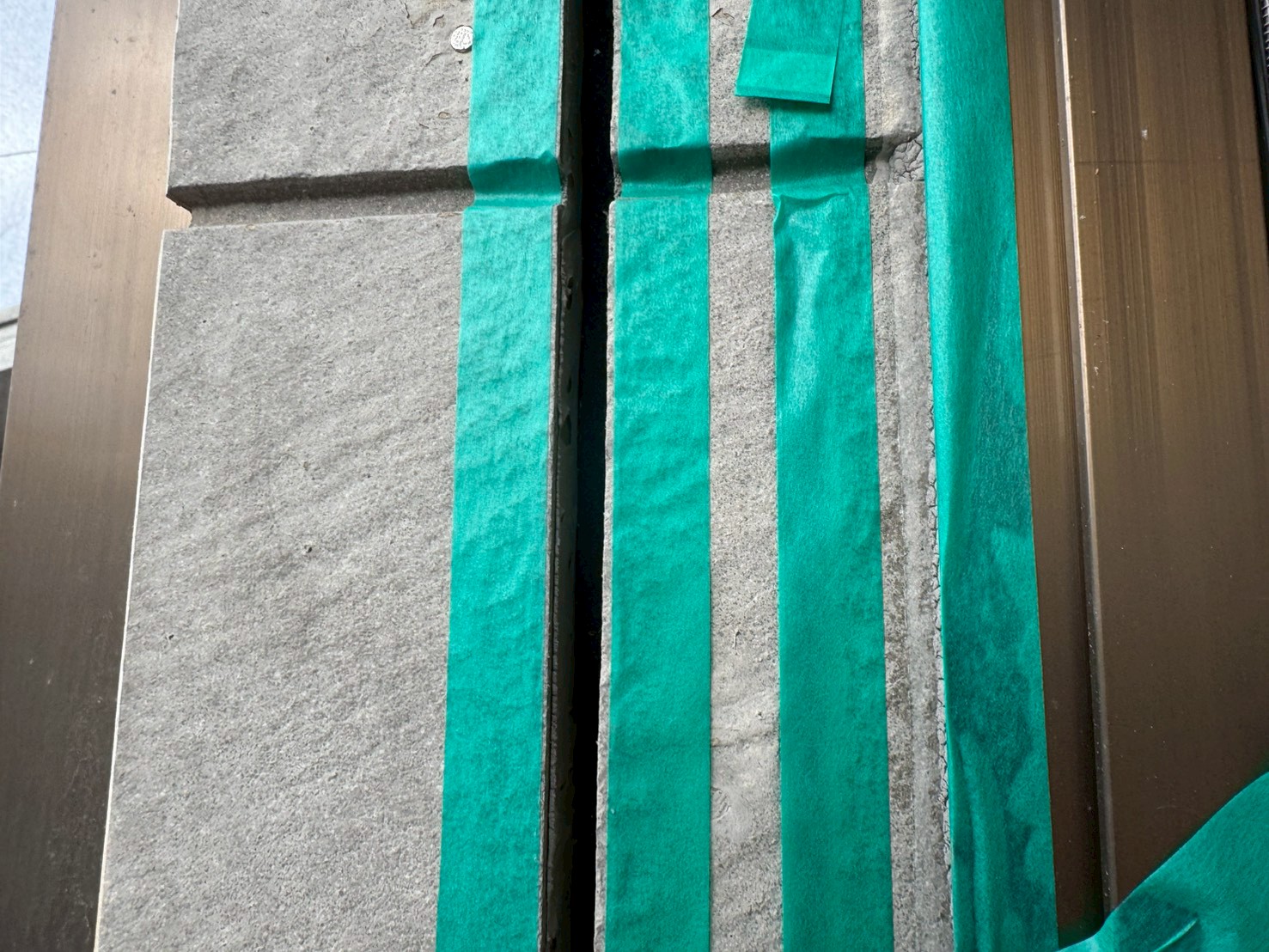 明日も引き続きシーリング撤去、新規シーリング材打設を行っていきます。