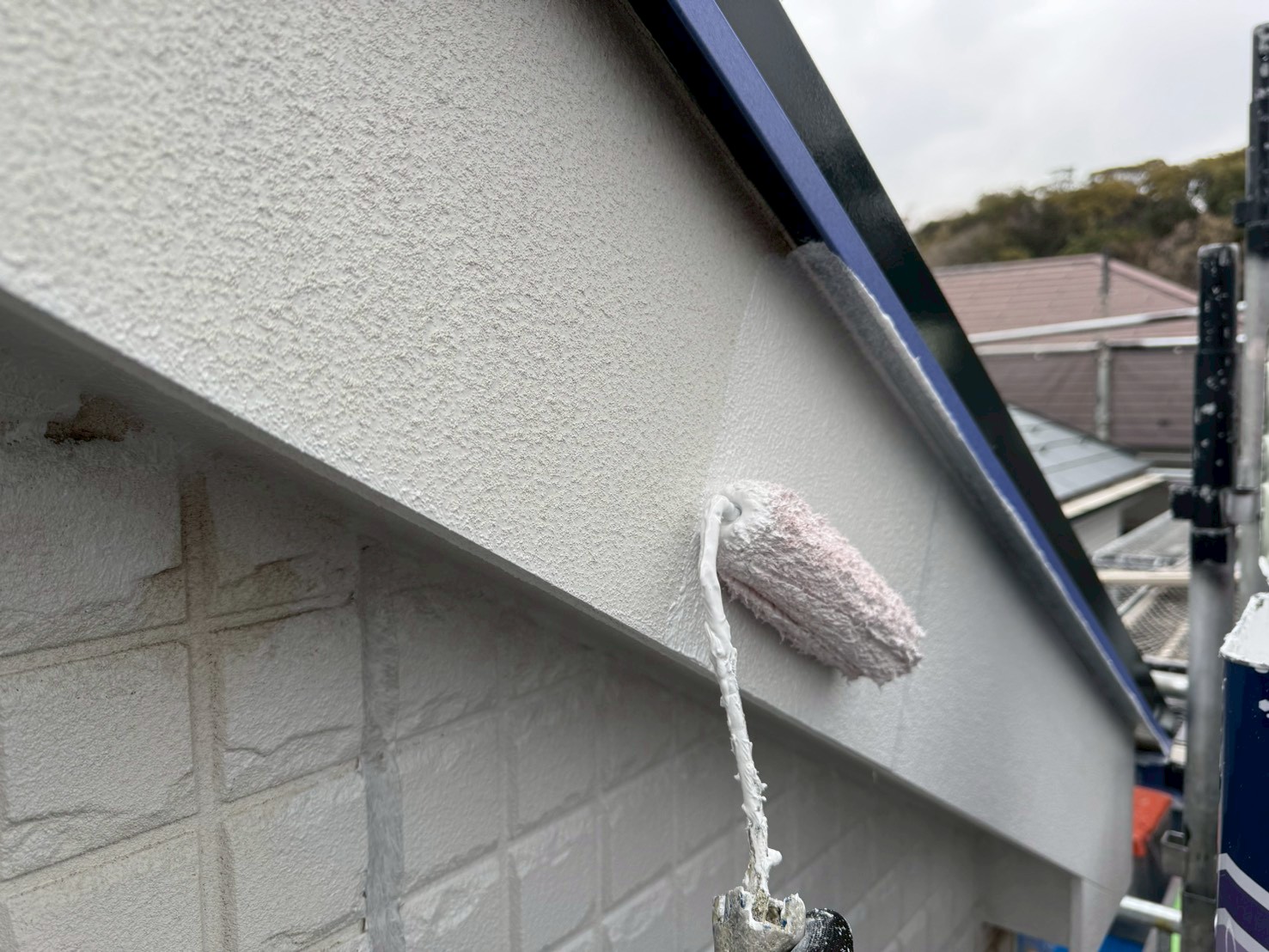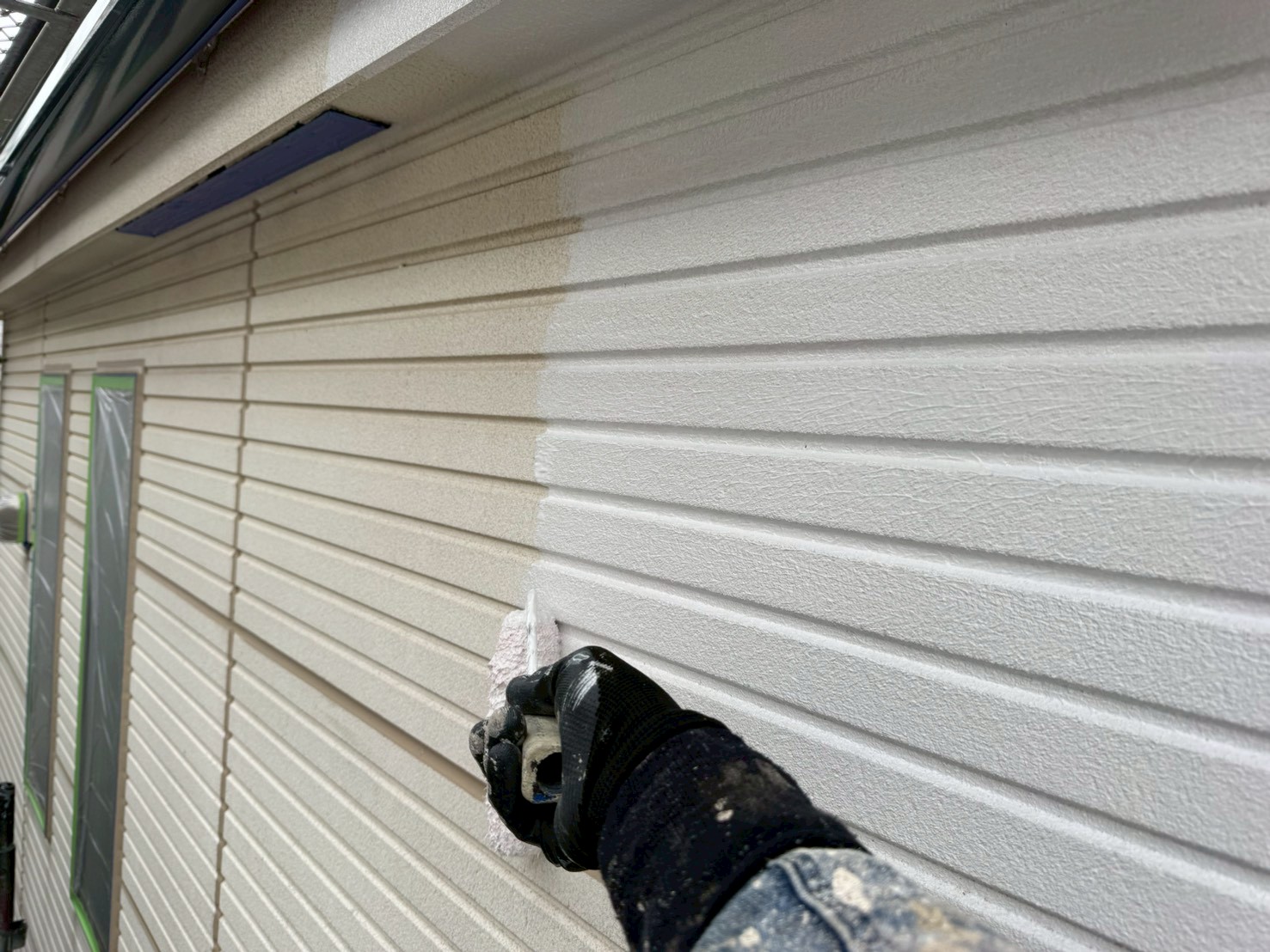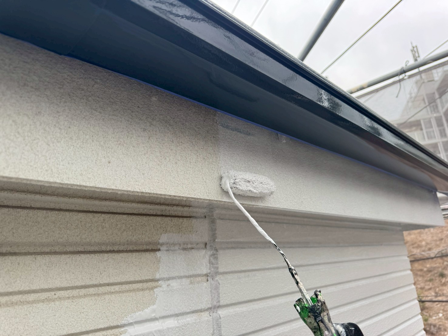 しっかりと下塗り塗料の乾燥が確認出来たら、次は中塗り工程です!