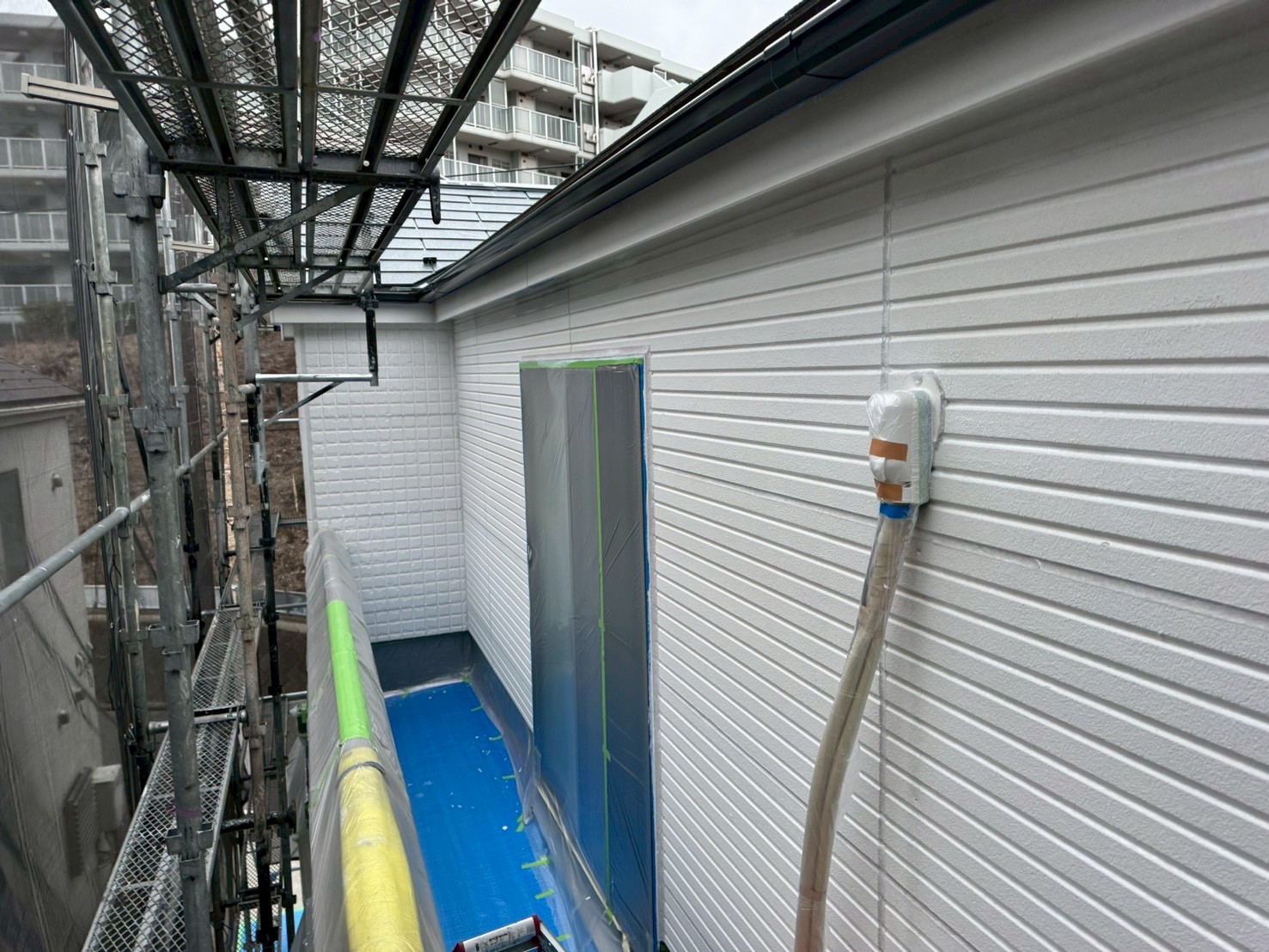 養生作業をしっかりおこなう事により、下塗り以降の工程がスムーズに進み更には施工品質も向上します!