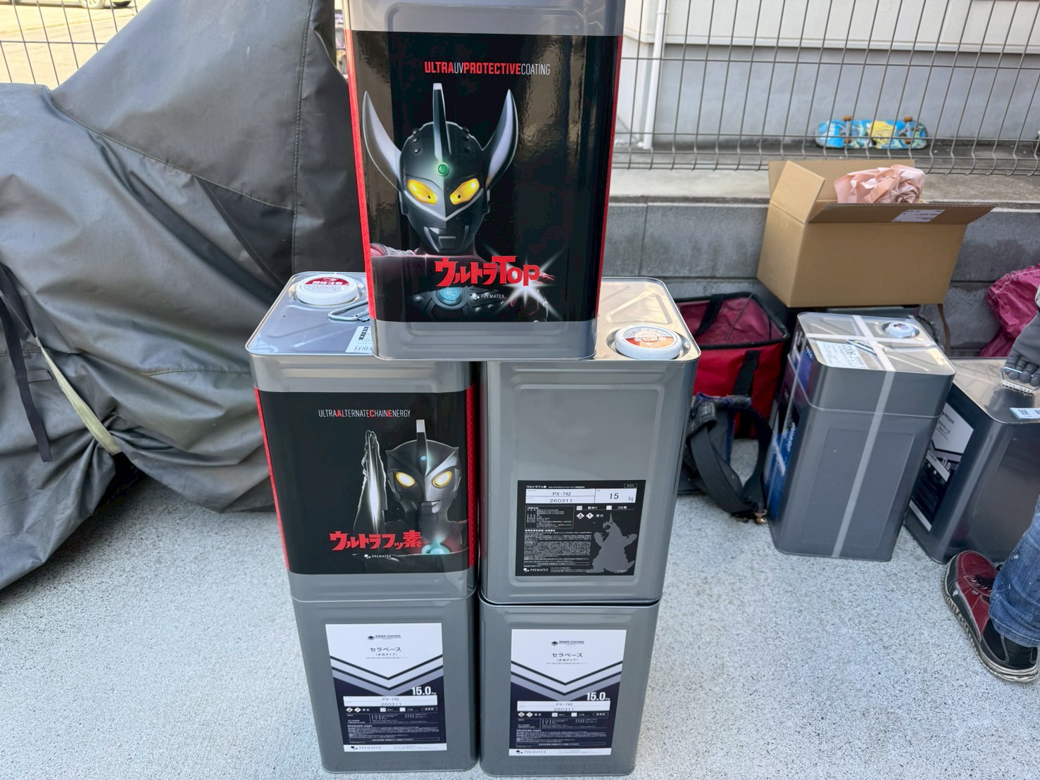 【プレマテックス/ウルトラフッ素】の塗料を使って【中塗り工程】の開始です。