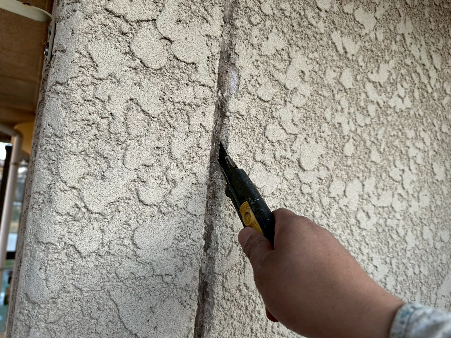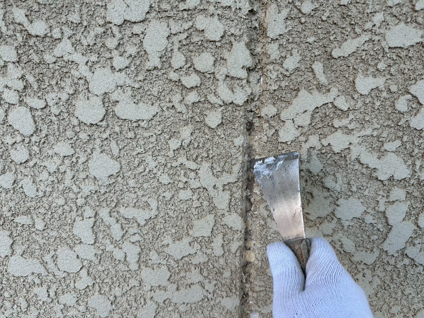 カッターなどを使い既存の古くなったシーリング材を丁寧に剥がします。