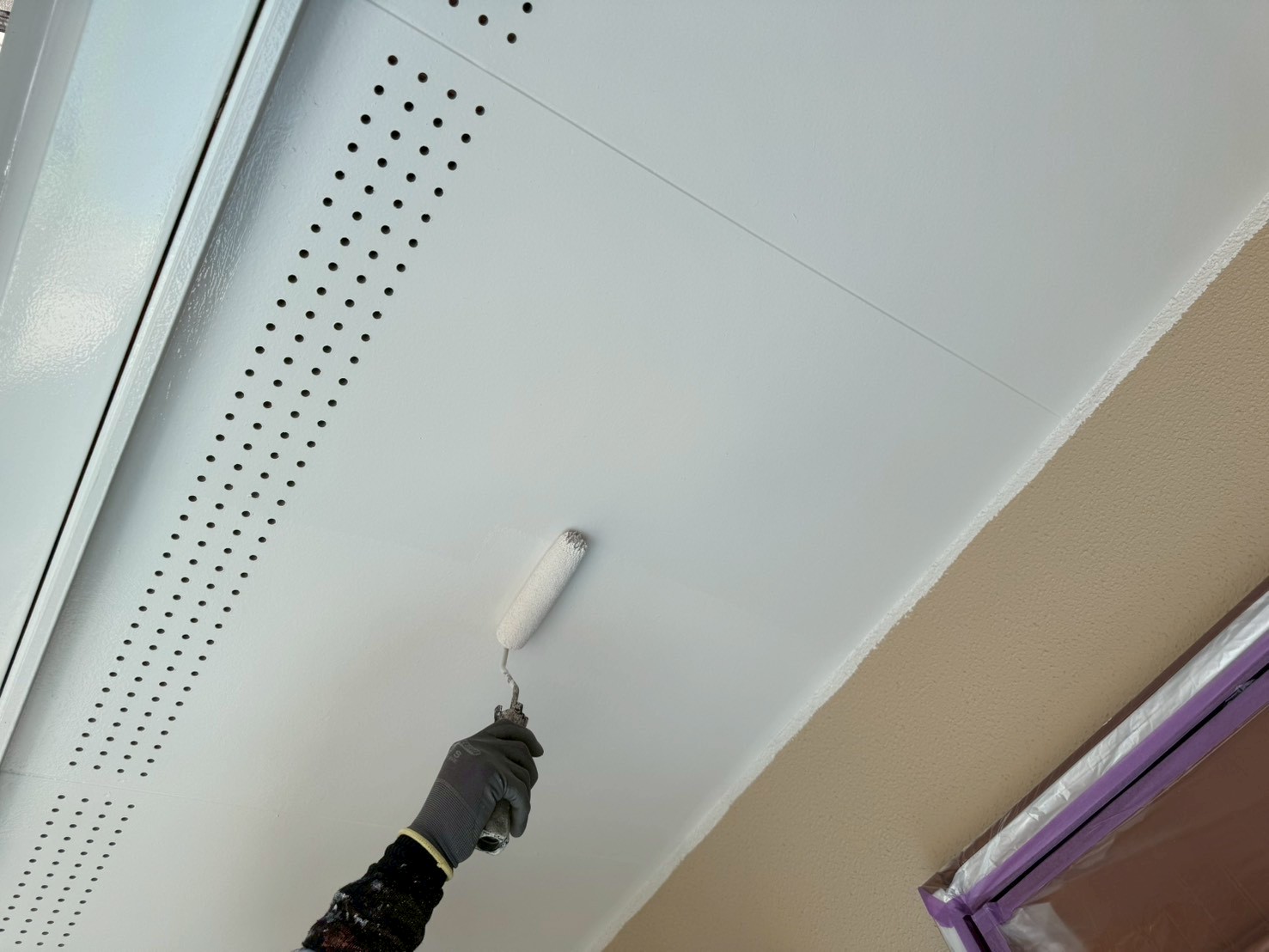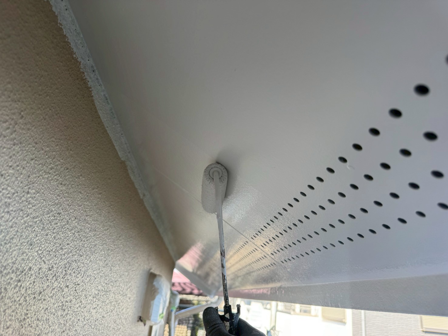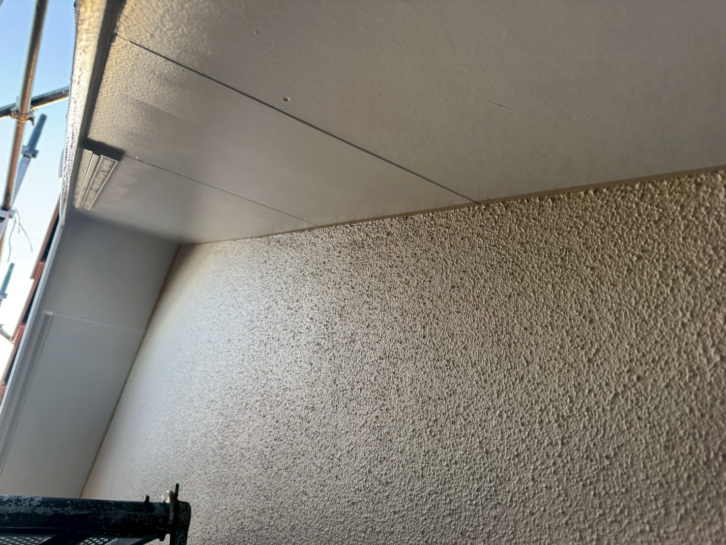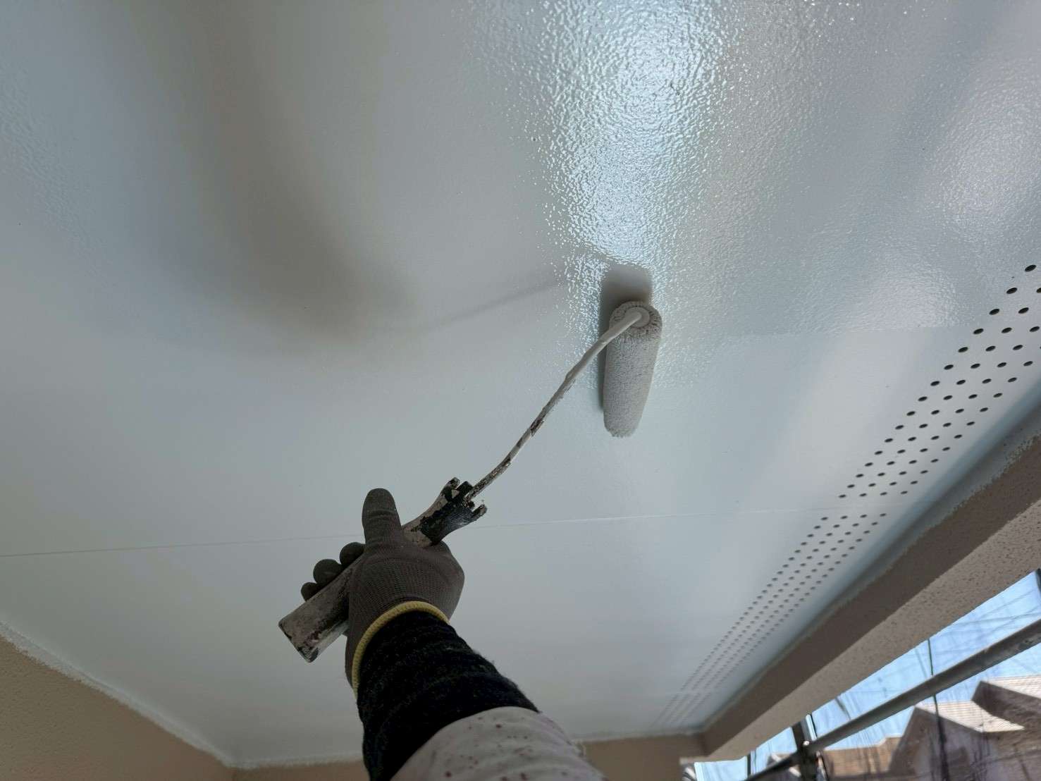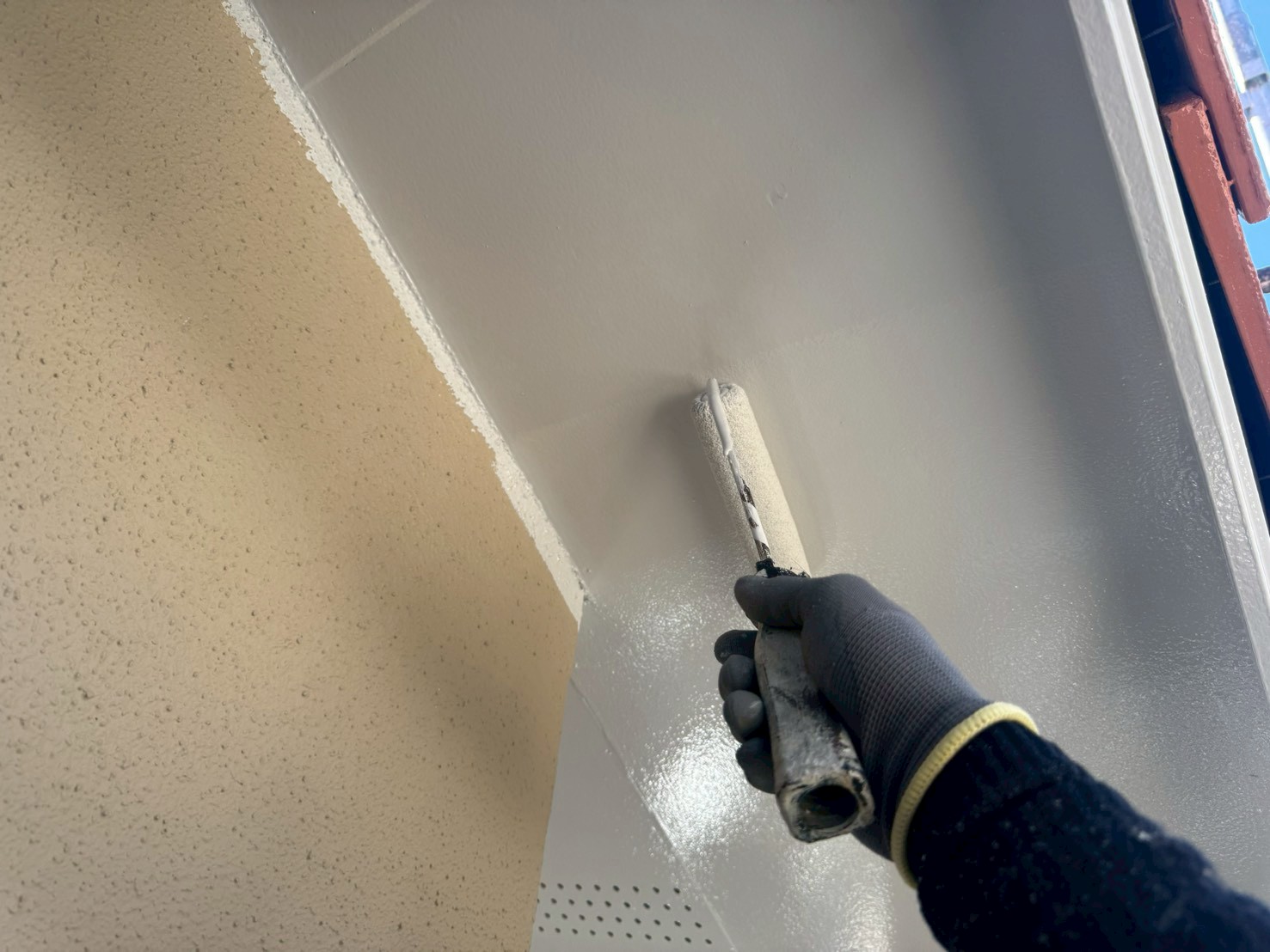 【外壁部】【軒天井】の上塗りを施工いたしました。