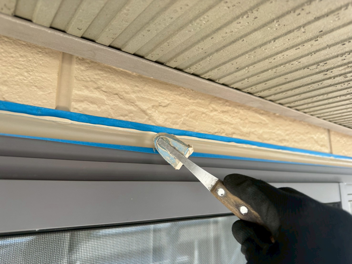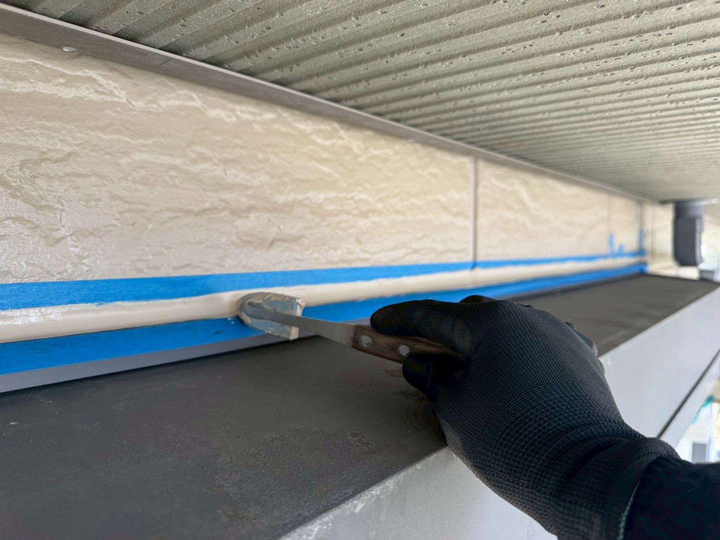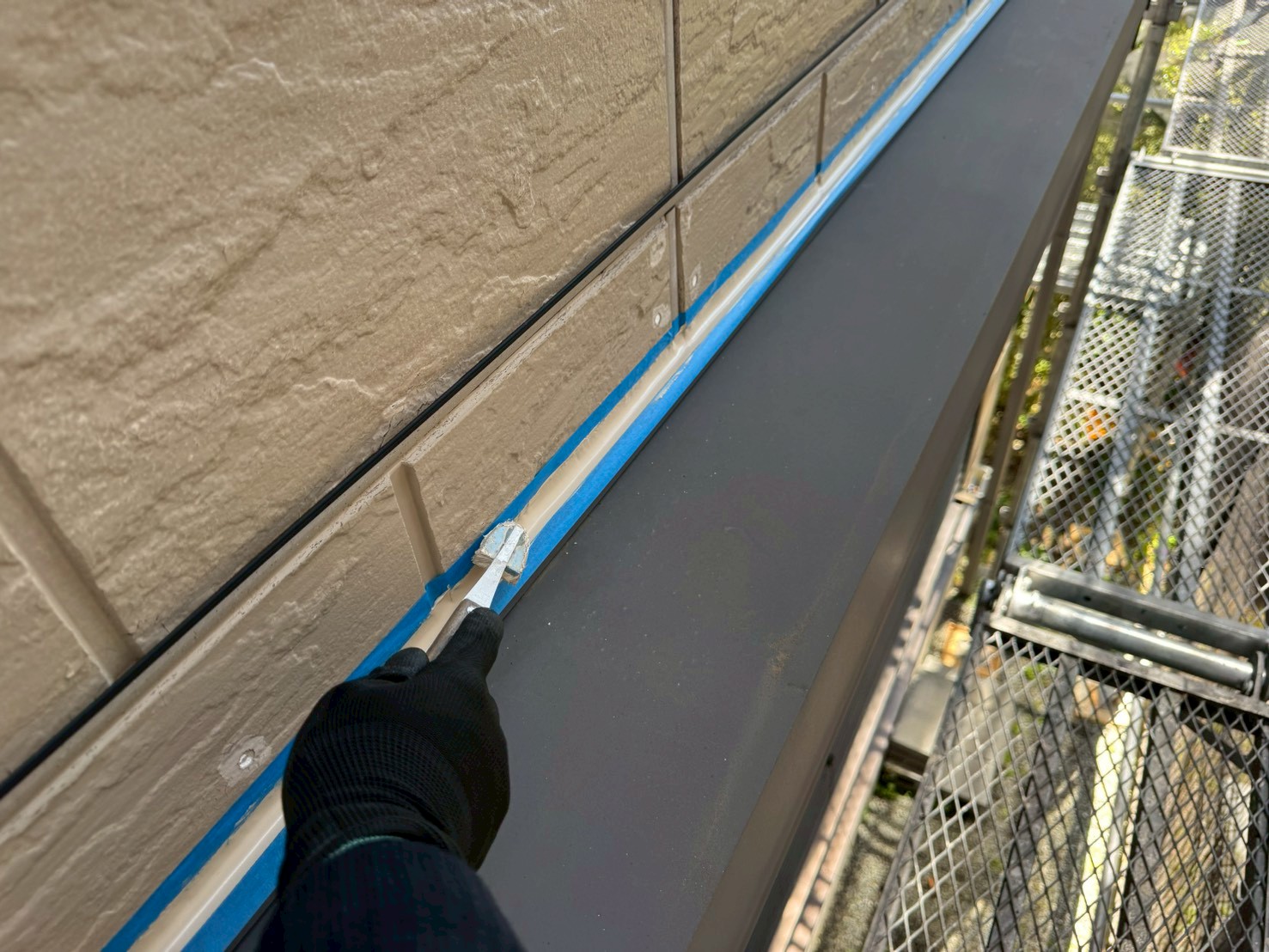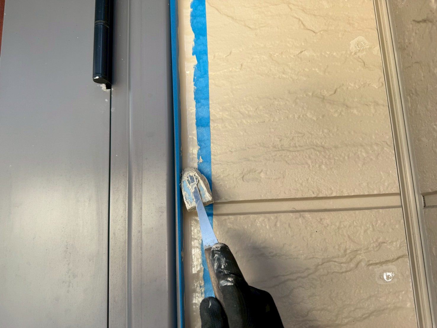 プライマー塗布は完了しましたので、冊子や建具周りがメインで新規シーリング(オートンイクシード)を打設していきます!