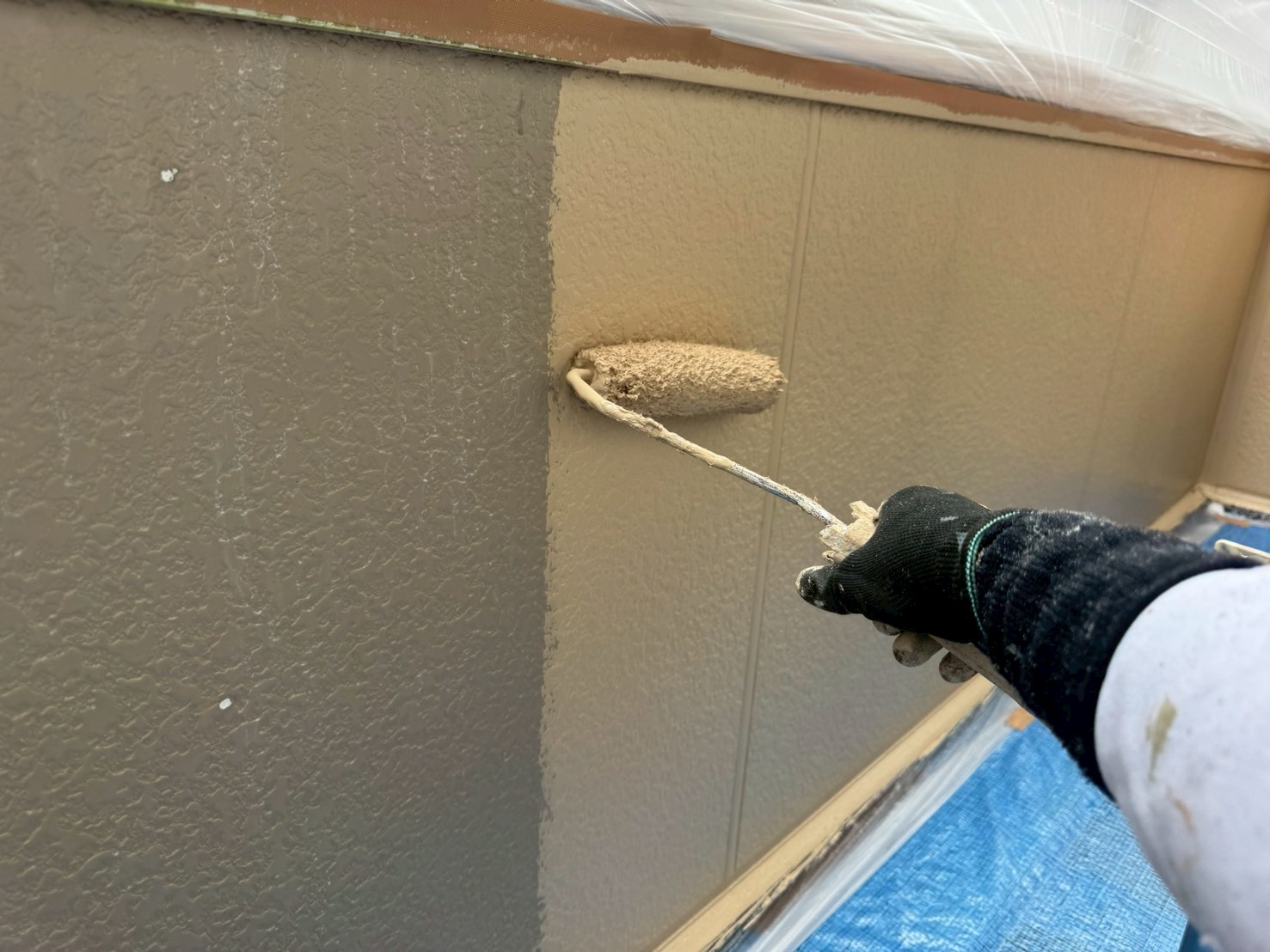 下塗り後に、中塗りをおこなう事により塗膜に厚みが出て、外壁の保護機能が高まります。