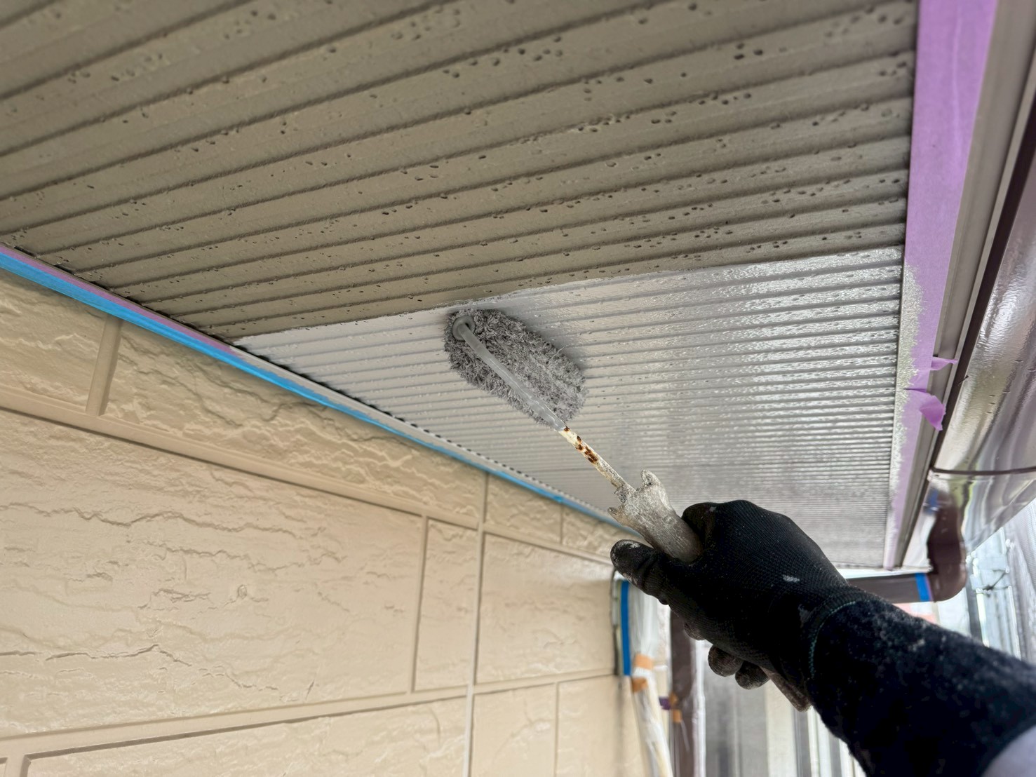本日は【外壁部】【軒天井】の中塗りを実施いたしました。