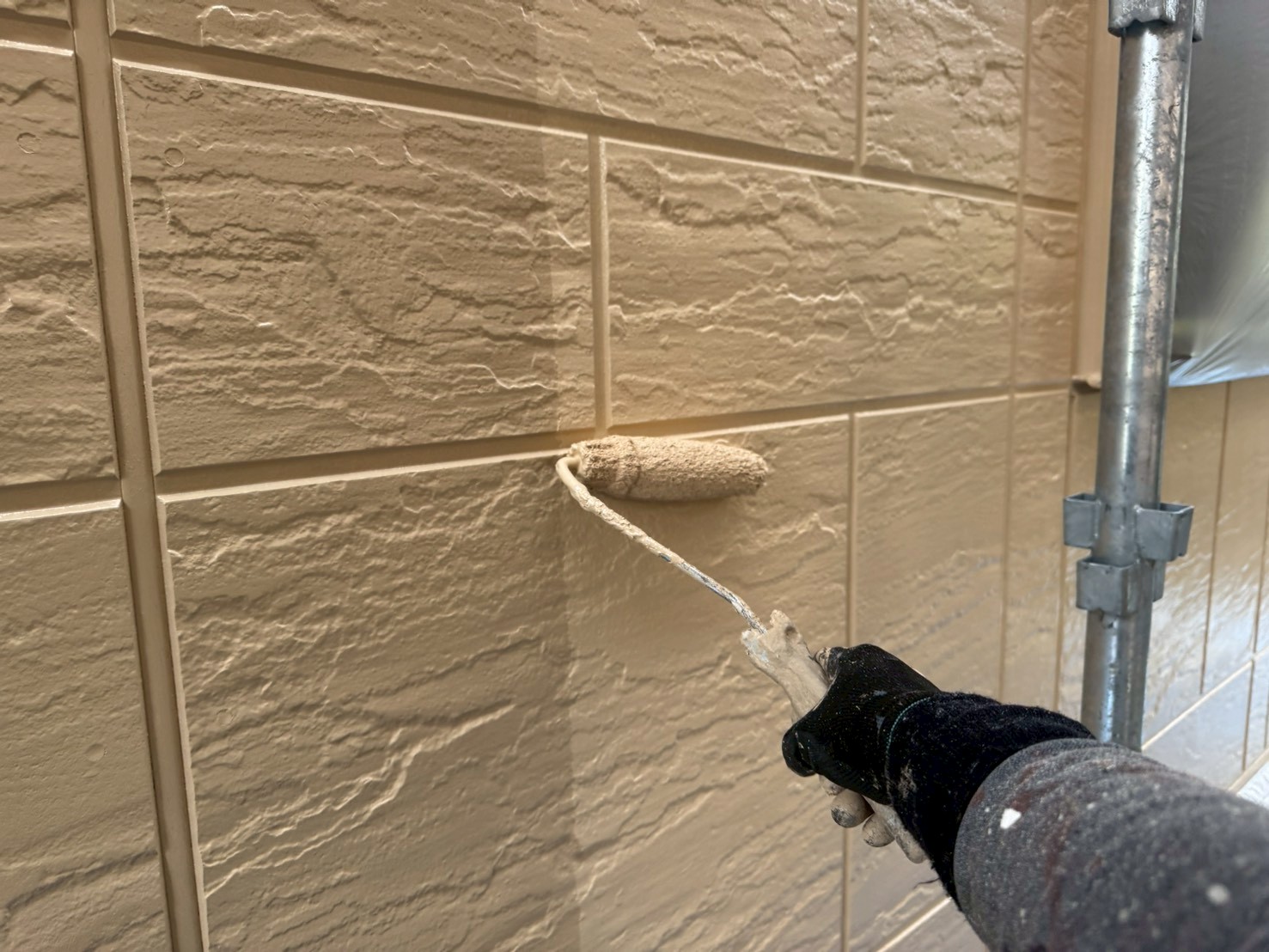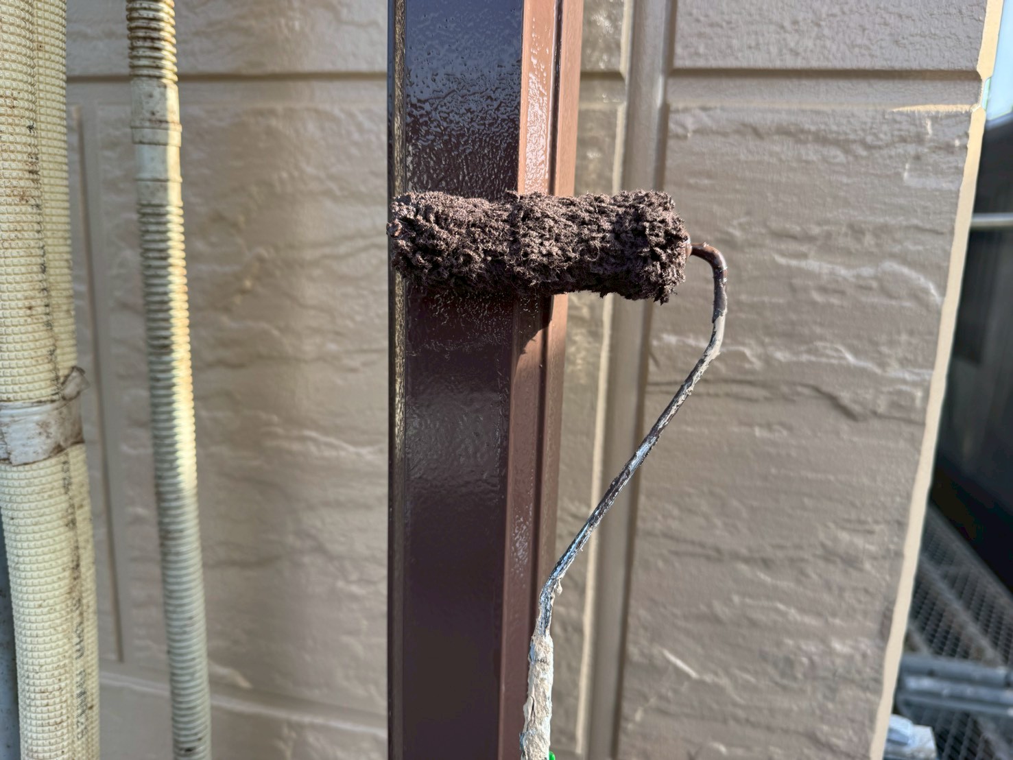 既存外壁と同系色ですが、艶が出て大変綺麗な色見に仕上がってきました!!!